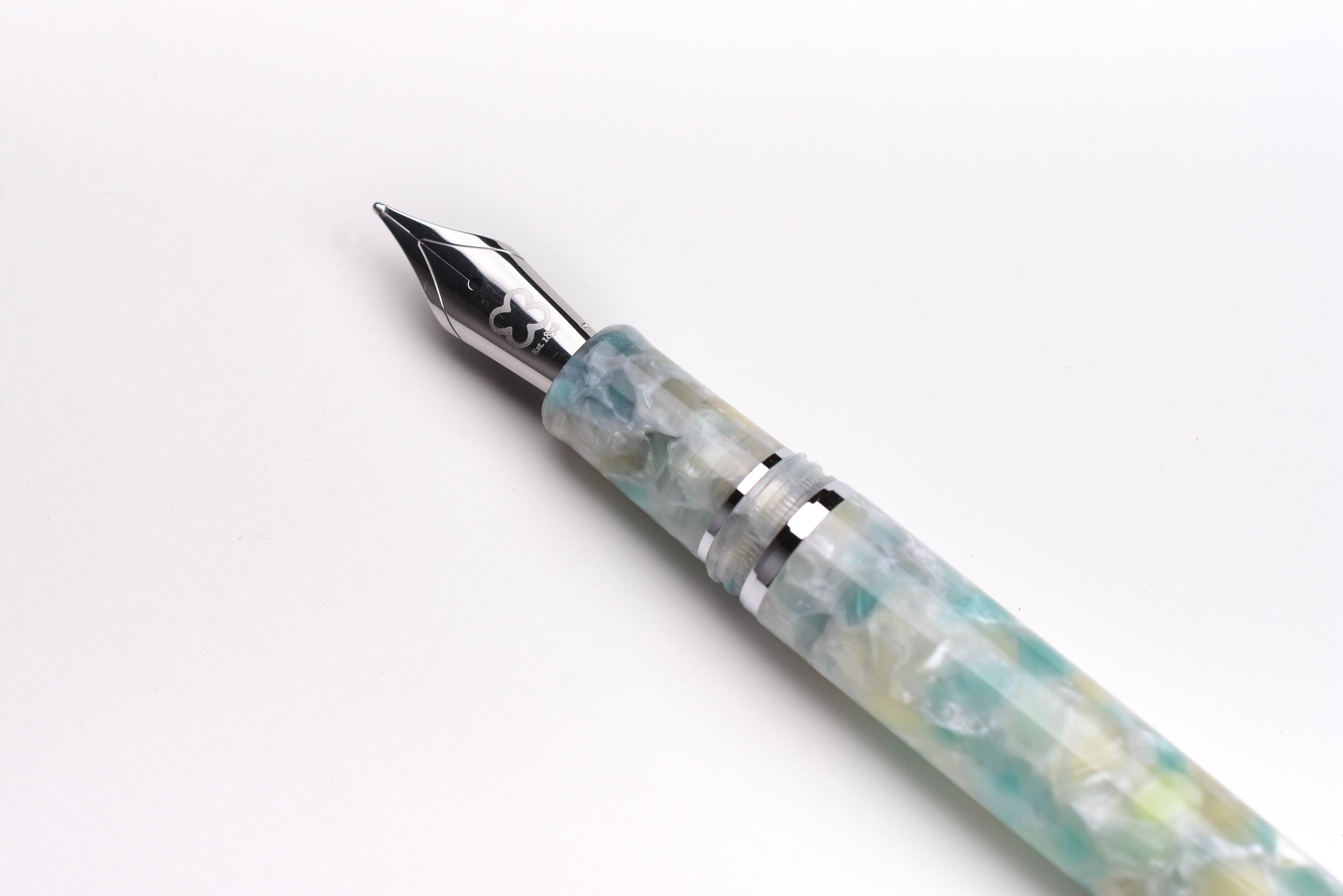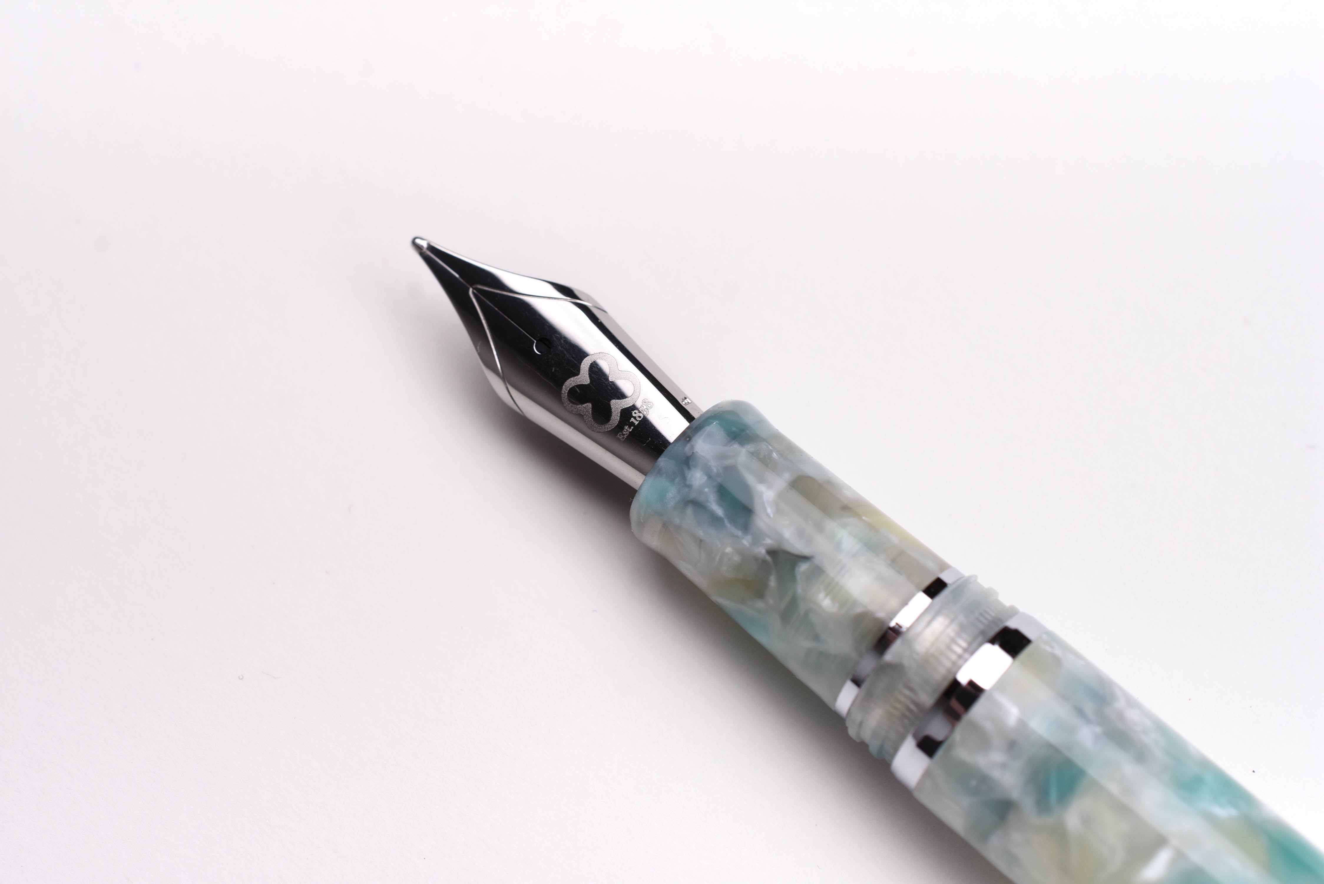• The Needlepoint nib was crafted by nibmeister Kirk Speer. It is a fine nib that has been ground to an ultra-fine point, creating a perfect nib for those with small or intricate handwriting. Since the nib is so thin, it doesn't put down much ink at any given time, making it a more quick-drying fountain pen option but also great for handling wetter inks.
