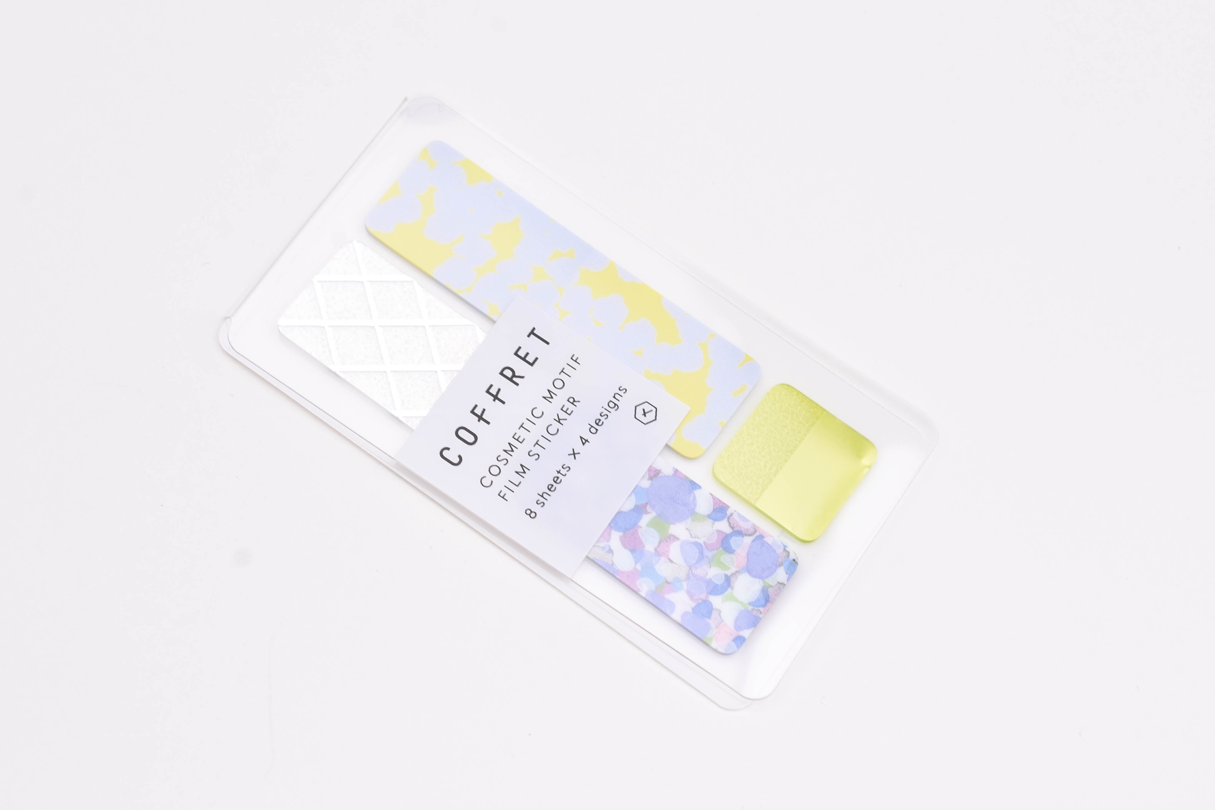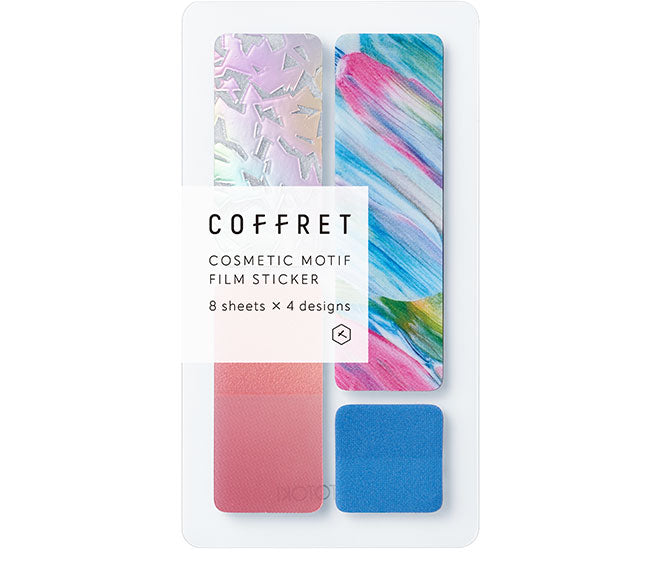 Hitotoki Coffret Cosmetic Motif Film Stickers are inspired by the layout of makeup palettes. Complete with a clear cover, this portable packet of stickers even looks like a classic compact powder. With many different shapes, sizes, and colors, these translucent stickers allow you to layer however you like. The stickers are of small and large sizes, making them perfect for planners or journals, but also laptops and glass jars!