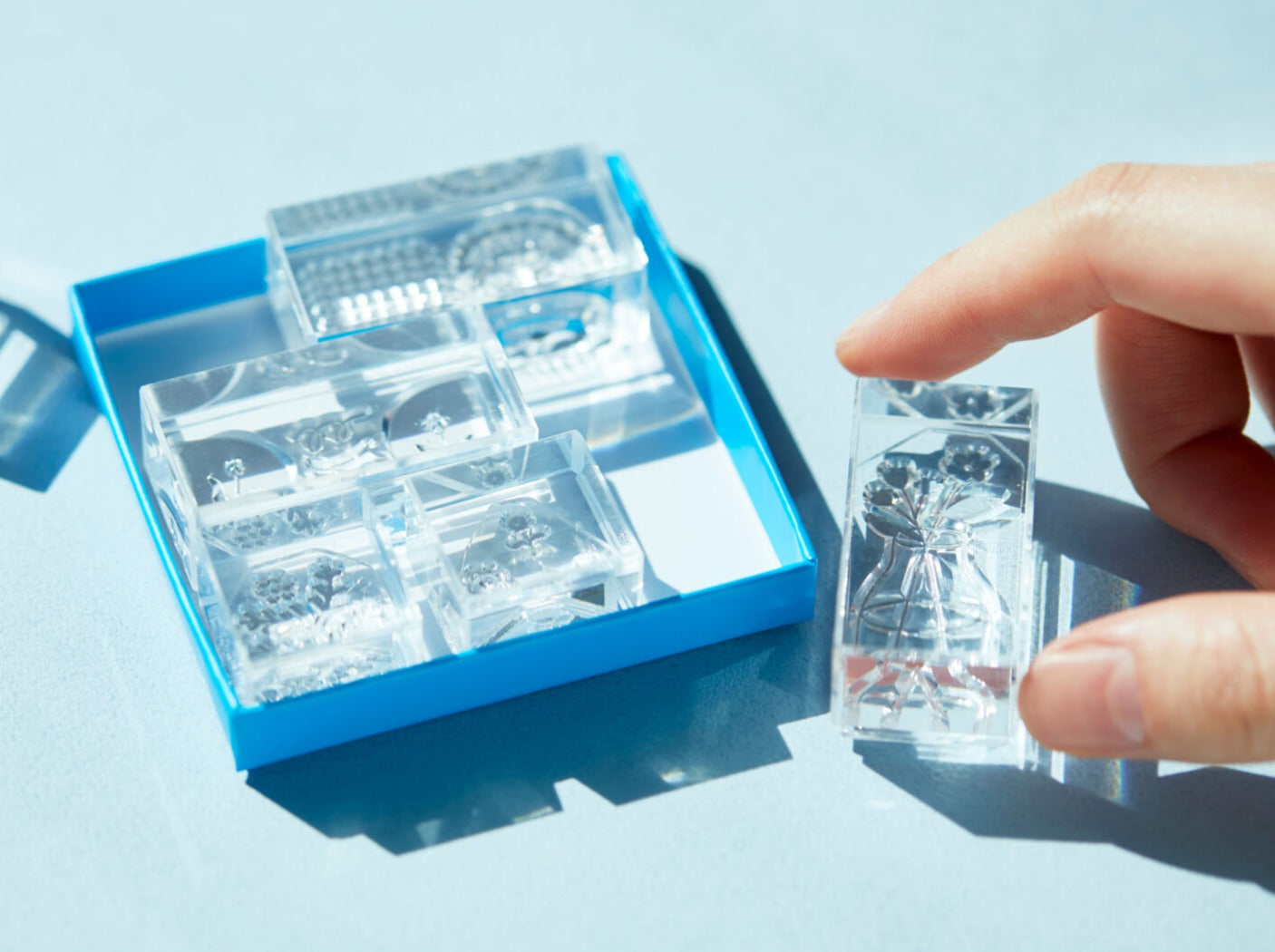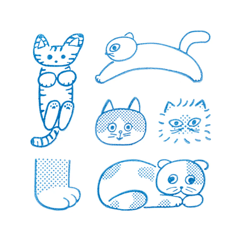 These new stamp sets from Hitotoki are called Kori-Jirushi, which means "ice prints" in Japanese. Each set comes with three big stamps and three small stamps. Resembling ice cubes and perfect for the summer season, these crystal stamps are made out of acrylic resin and transparent rubber stamp surface. Just like clear stamps, the see-through feature will allow you to better locate your anticipated stamping area. These stamp designs also feature popular artists that collaborated with Hitotoki in the past, so you may find some of your favorite artists' illustrations in Small Stamps, Large Stamps or Stamp Sets - Set of 6.