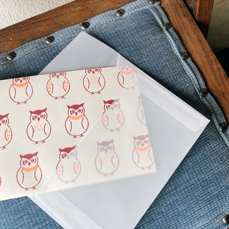 Mizushima collaborated with Japanese illustrator, Matsuo Miyuki to create these charming lettersets. Each letterset combines patterned straw paper, grey kraft paper, and translucent envelopes. You're meant to write your letter on the grey kraft paper, wrap it in the patterned straw paper and tuck the package inside the envelope. The straw paper comes in 3 different whimsical designs using similar motifs from the matching Mizushima x Matsuo Miyuki Jizai Clear Stamp series.