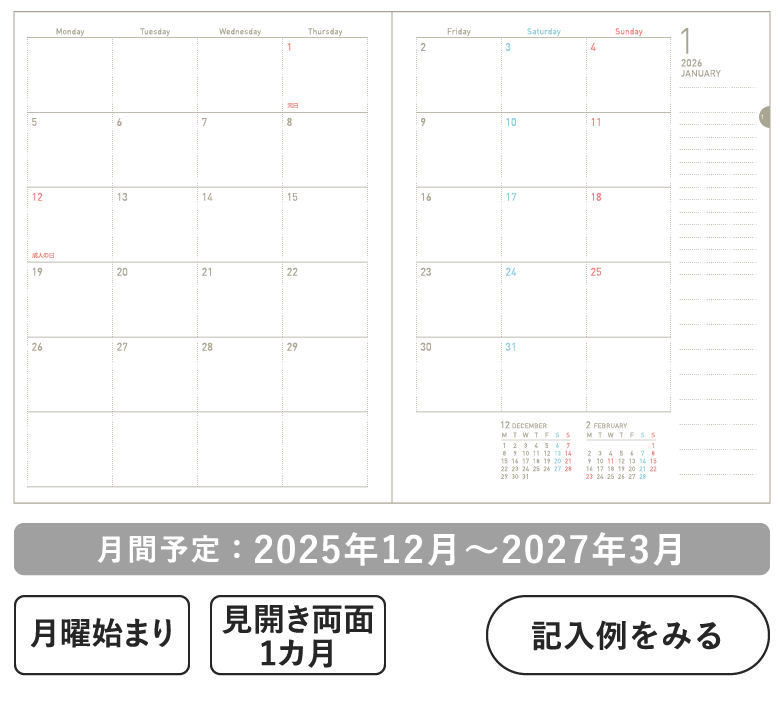 Mark's 2026 Notebook Calendar - Vertical - Monthly Block - B6