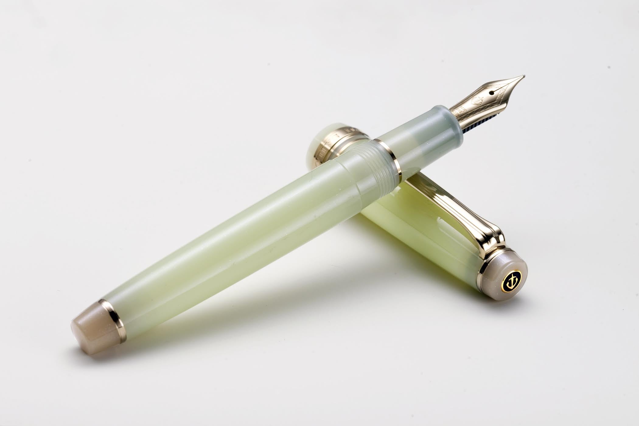 Fuki is a soft green pen with khaki finials that represent the vernal equinox when plants start to bud.