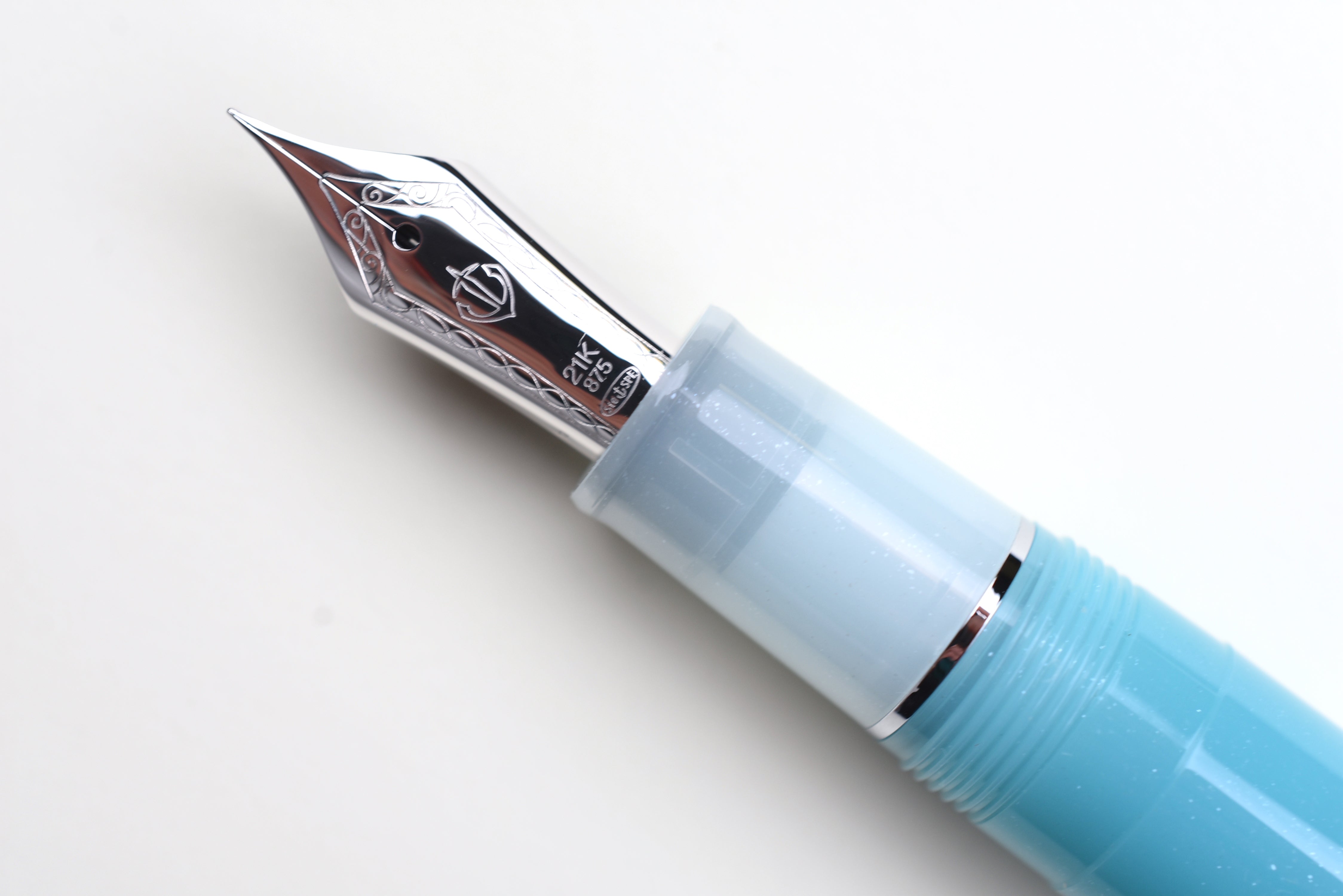 Sailor Smoothie Series Pro Gear Fountain Pen - Ocean Water. As a continuation of Sailor's Limited Edition of its Cocktail Series, the Smoothie Series is back with a variety of vibrant and luscious colors. Each pen is inspired by smoothie drinks crafted with fruit and vegetable colors from the nature. These themes including Wild Berry, Blue Moon, Passion Fruit, Ocean Water and Cantaloupe, all come in pastel pen barrels and semi-translucent grip sections. Each of these pens is tipped with a 21K gold nib that guarantees a luxurious writing experience.