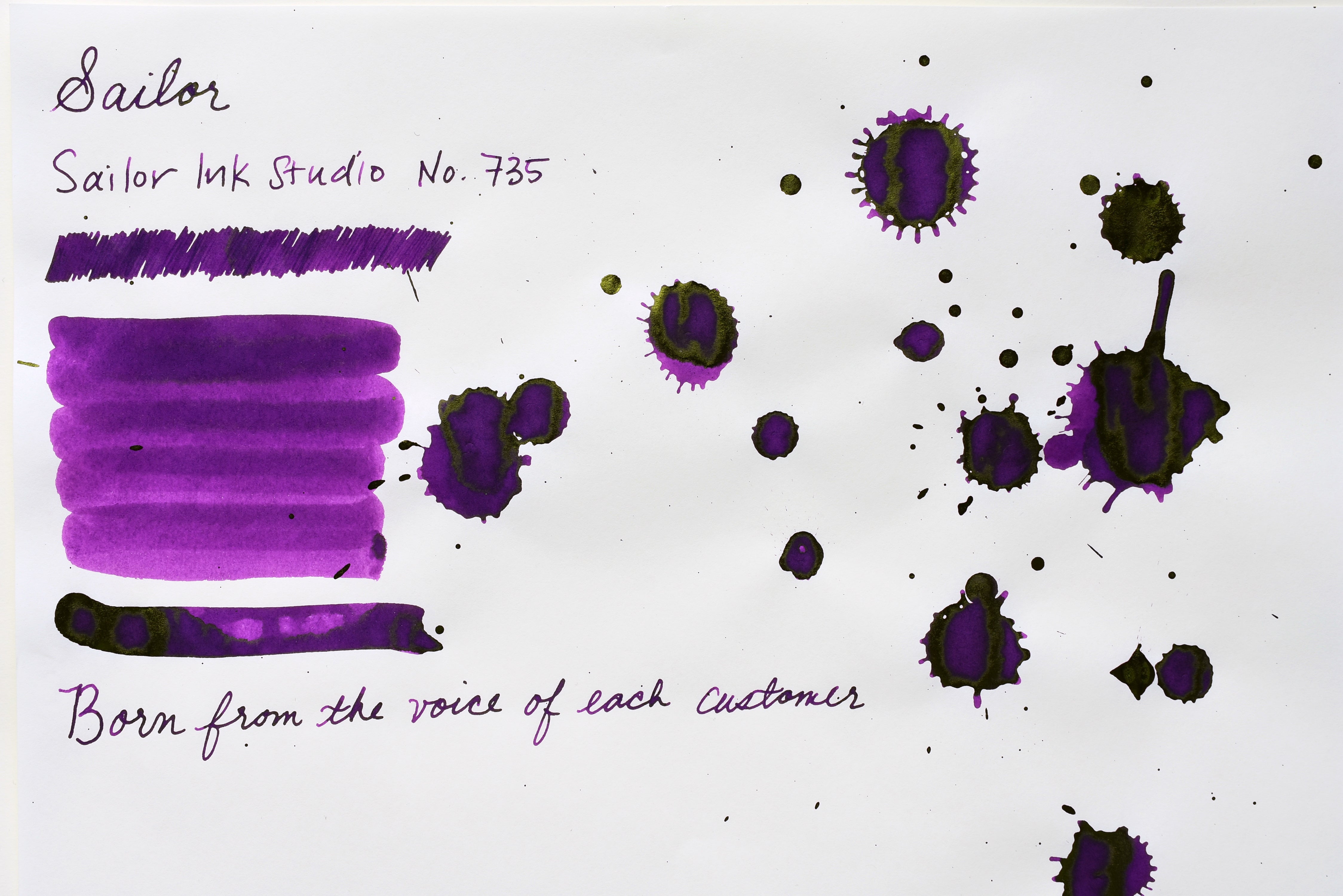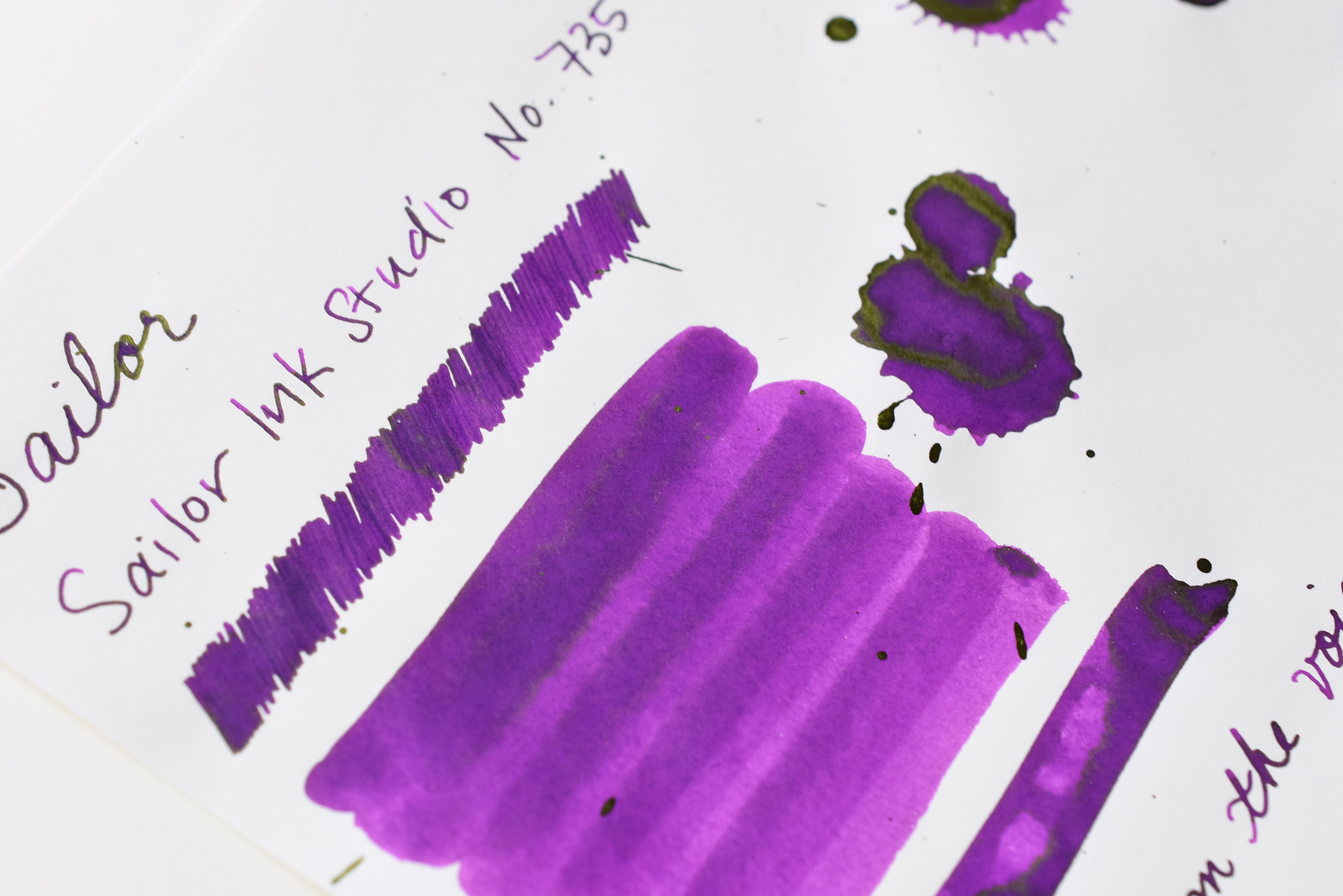 A beautiful and lush color from Sailor Ink Studio. The usual excellent Sailor quality with this ink - the color is deep and beautiful - no problem using this across a variety of fountain pens! It also washes really well for watercolor!