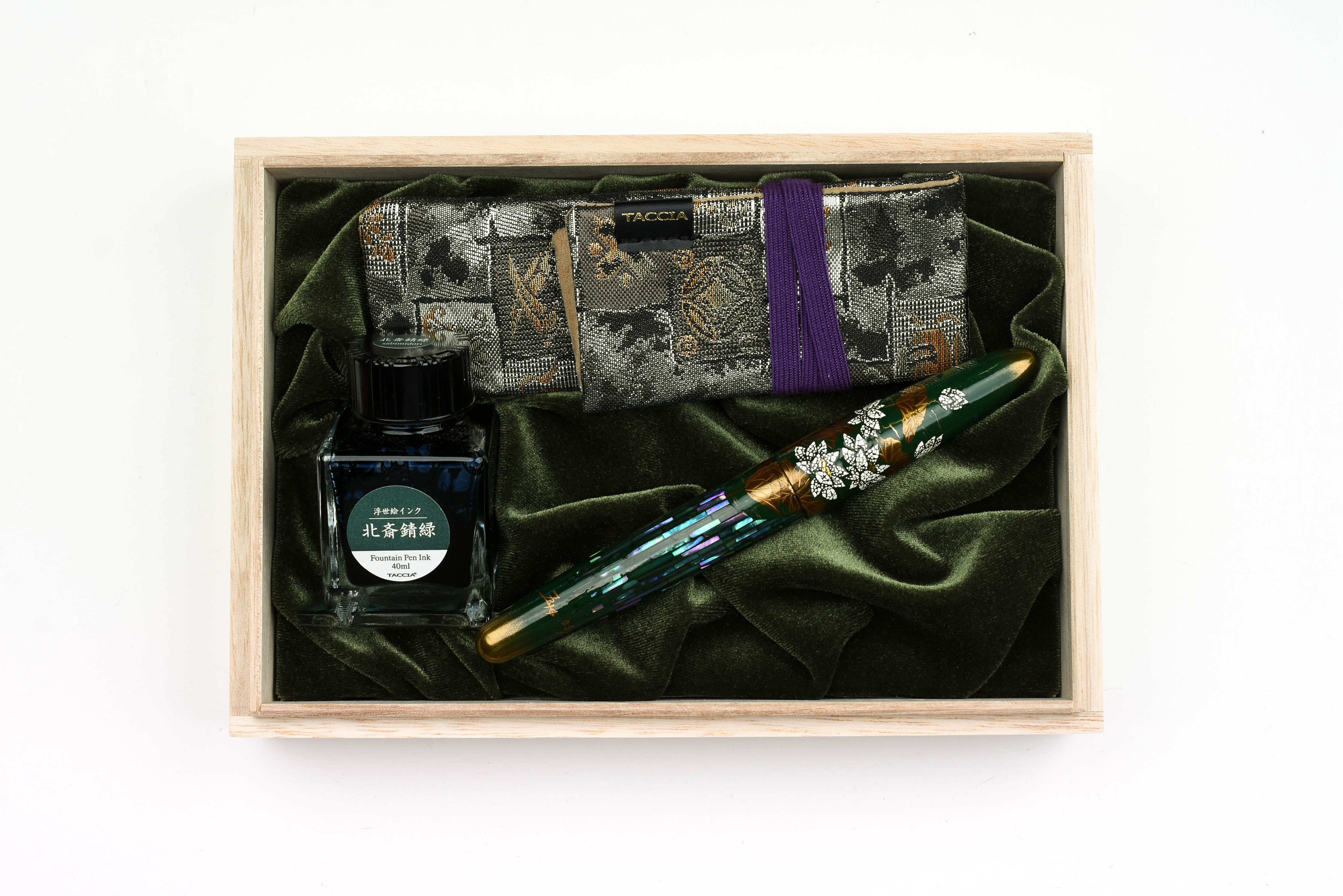 • Sailor converter, two ink cartridges, and a 40ml bottle of Taccia Ukiyo-e Sabimidori (Rust Green) included