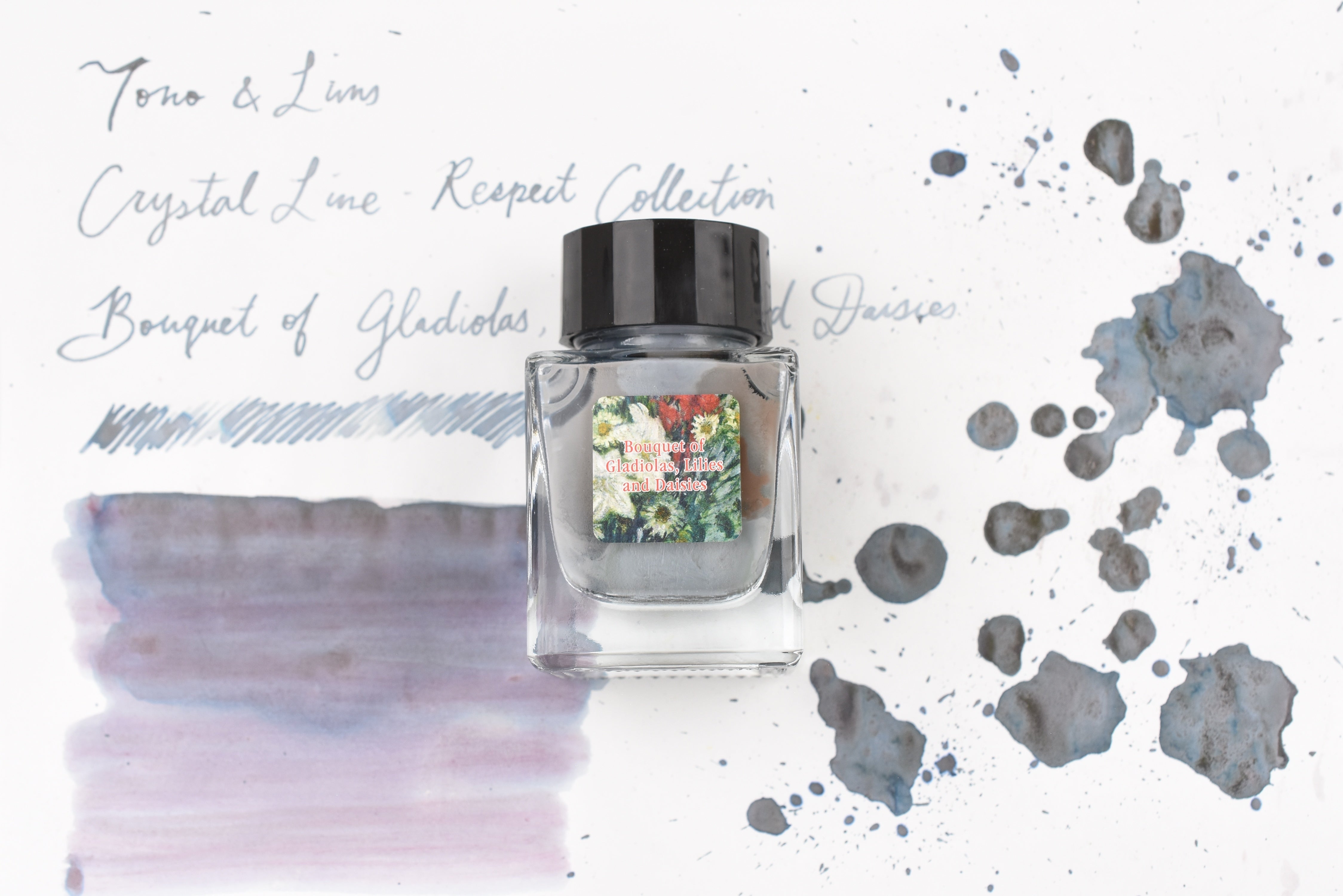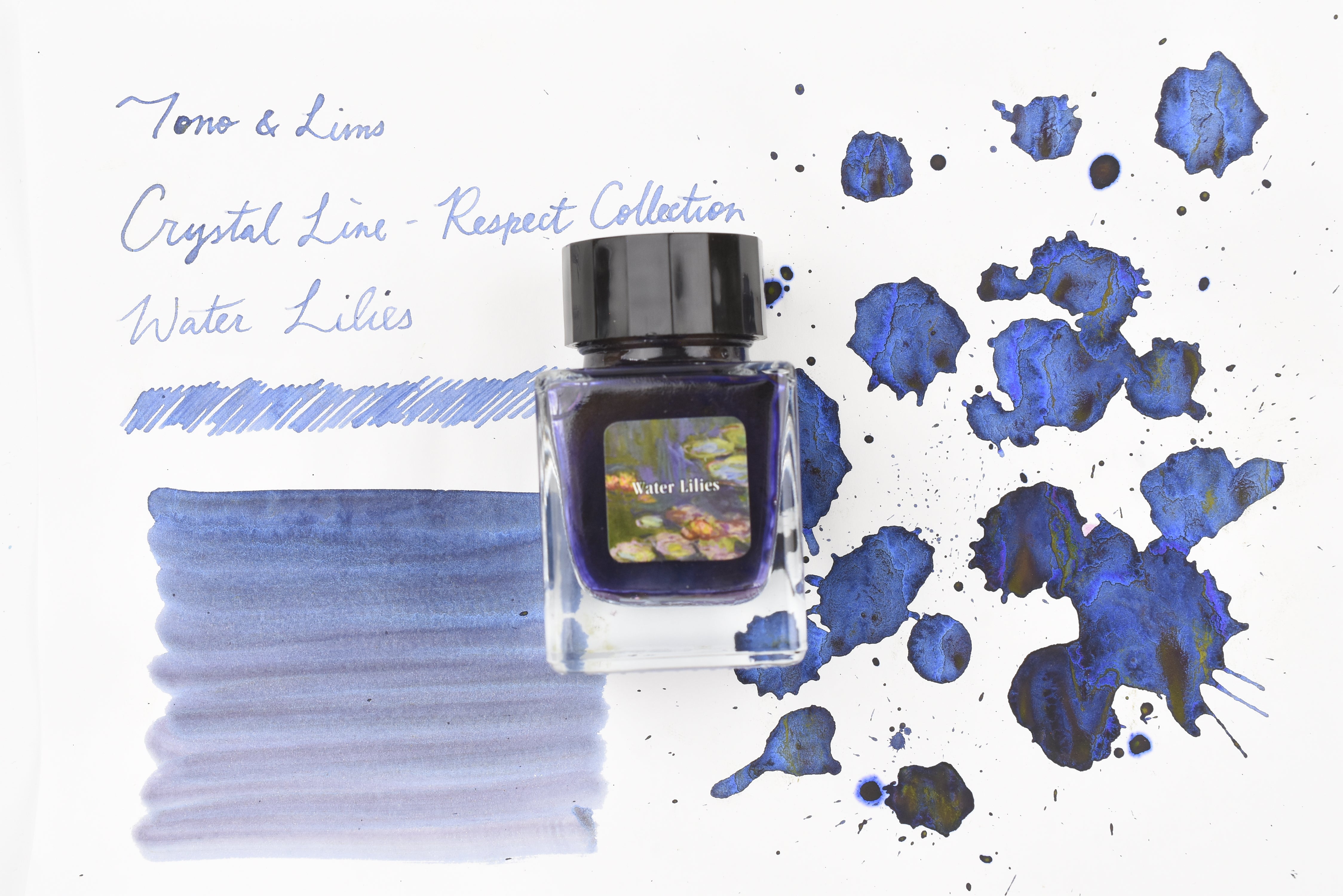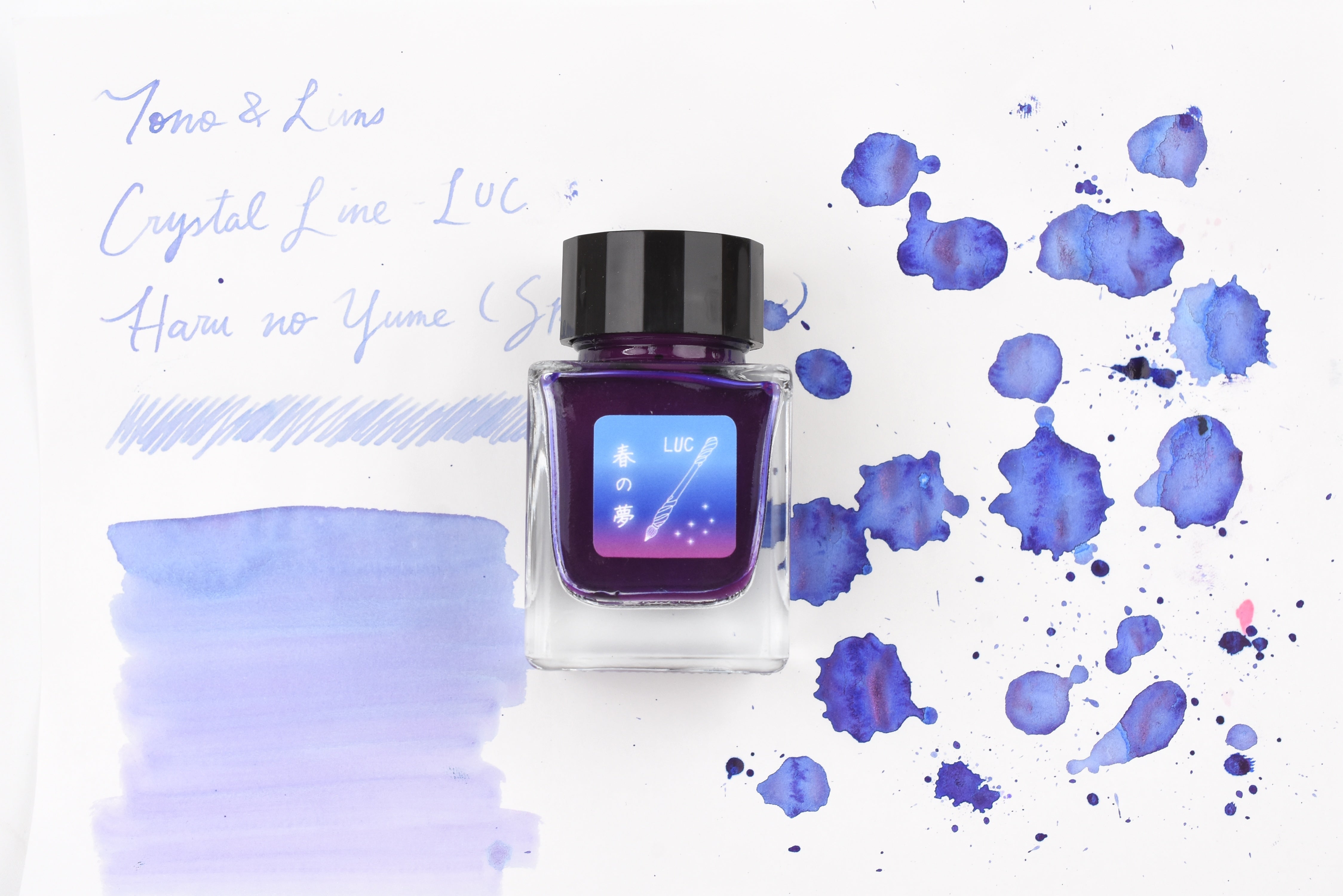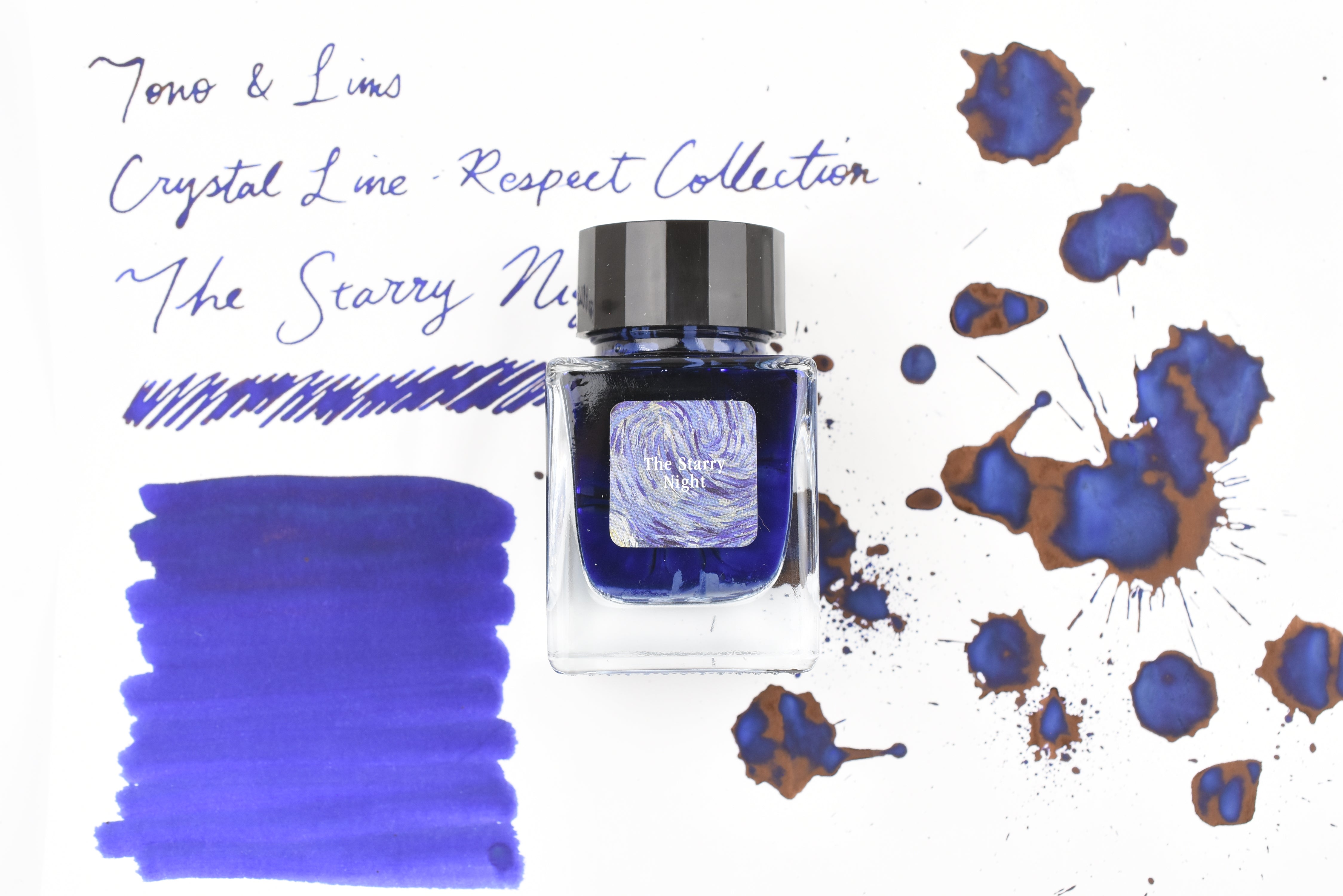 The Crystal Line by Tono & Lims is produced especially for glass pens. In this collection, you may find experimental components added to the ink colors to create interesting properties, such as multi-colored pigment powder or metallic powder. It is highly recommended to use the ink with dip pen or glass pen only.