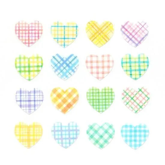 Checkered heart stickers in sweet colors with a slightly transparent masking tape finish. Perfect for pairing with pastels and adding a cheerful, love-filled touch.
