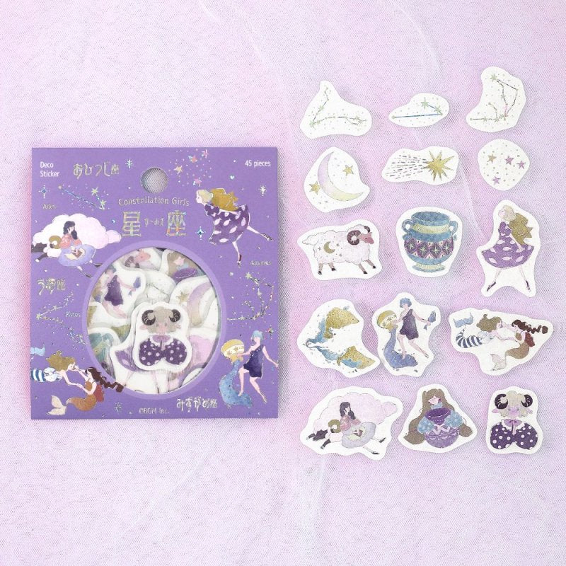 Inspired by the 12 constellations, these flake stickers feature constellation girls and celestial motifs with an elegant foil-stamped finish. Perfect for adding a touch of starlit magic to your crafts, planners, or journals!