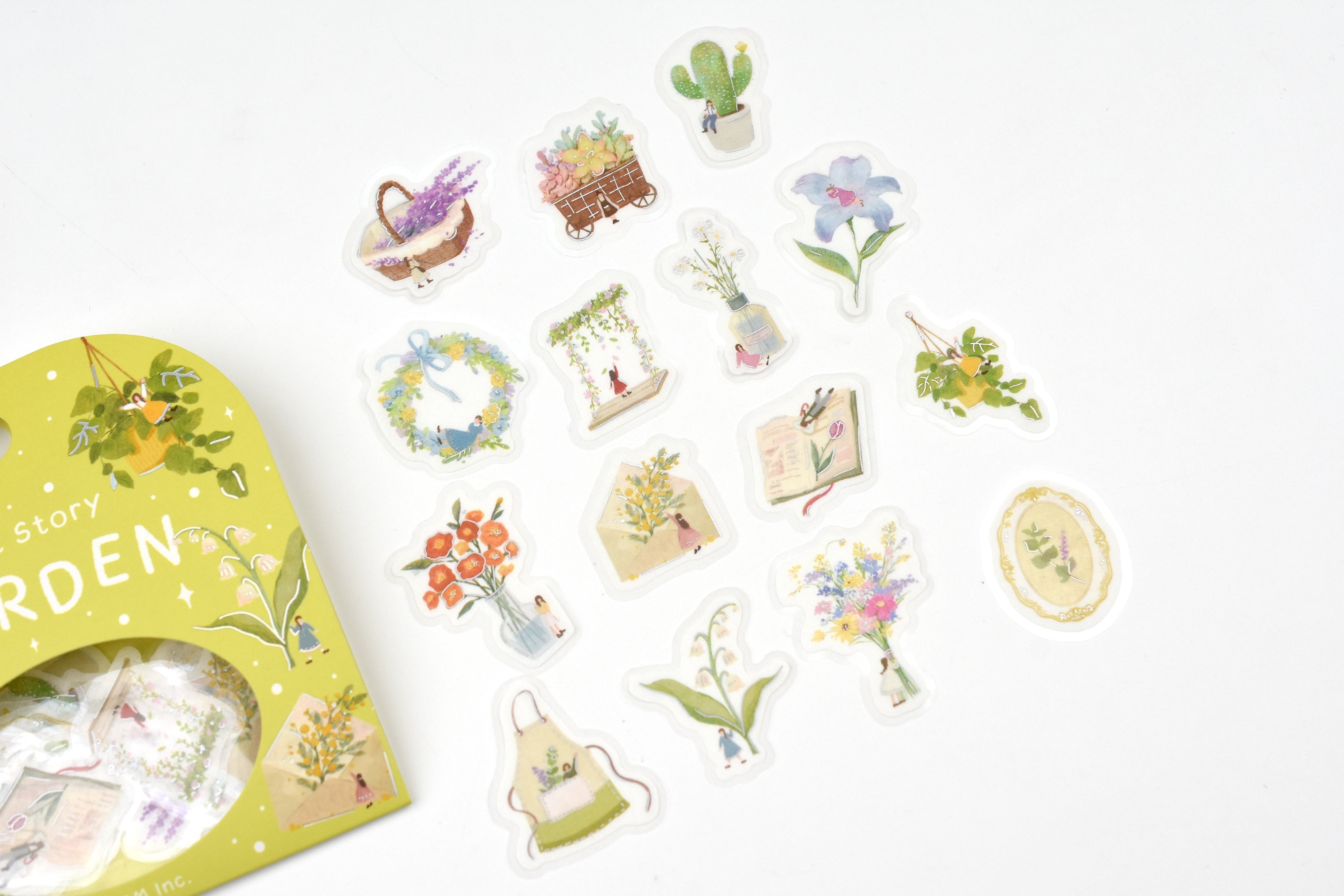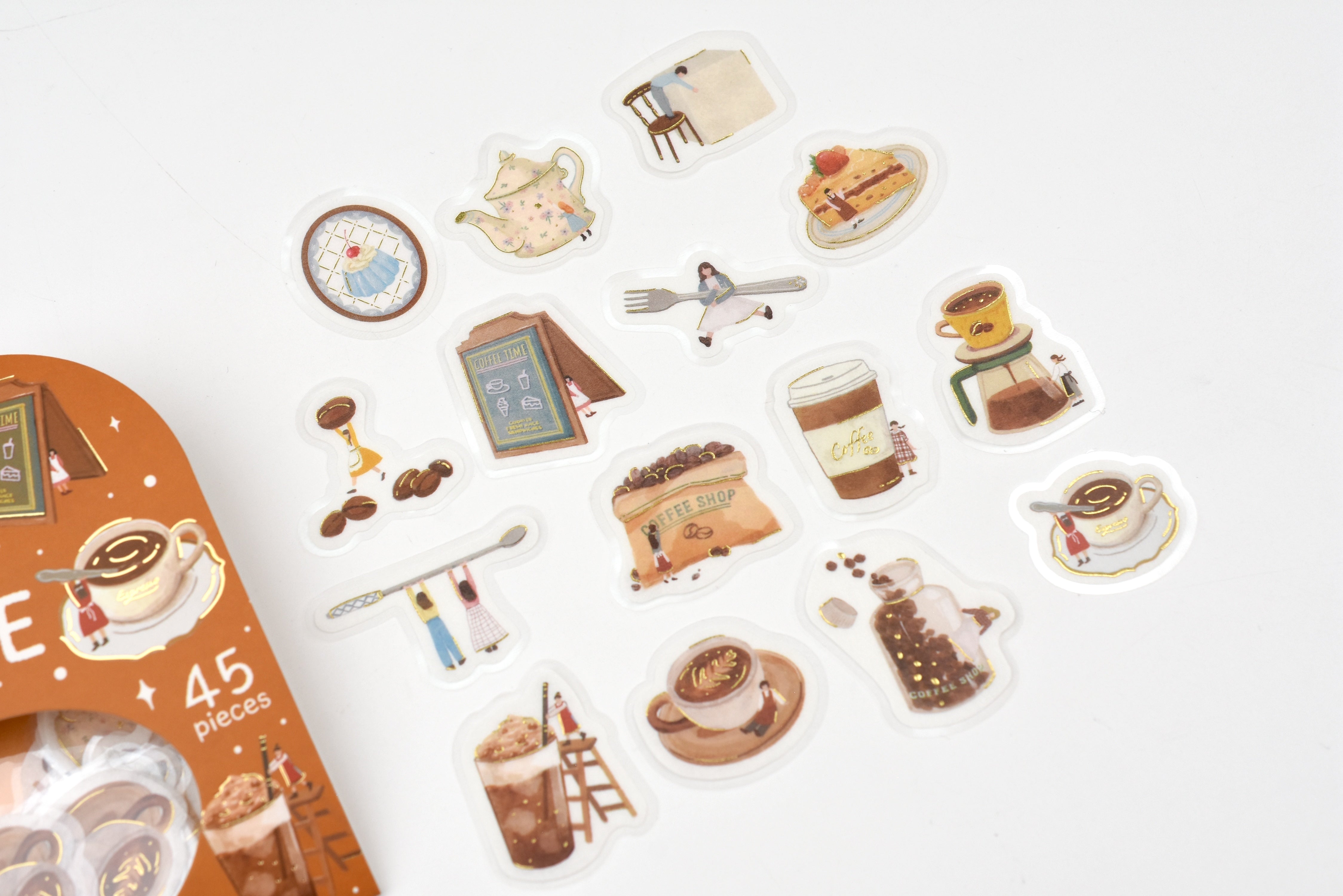 A foil-stamped flake sticker series that imagines tiny people living alongside full-sized everyday objects—pouring coffee, climbing cups, tending flowers, and enjoying their favorite hobbies. Each sticker offers a warm, storybook-style illustration that feels like a glimpse into a hidden miniature world. Perfect for planners, journals, cards, and letters, these stickers give your notes and layouts a playful visual highlight that makes every page more engaging to look at.