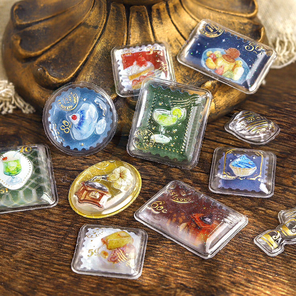 Named after the Japanese onomatopoeia word for something that is glittering and cute, BGM’s Kyururun Stickers are slightly larger 3D stickers that feature gold-foil accents and a glossy finish. Much like their namesake, these adorably designed stickers are incredibly charming and whimsical, adding dimension to your planners, journals, letters, and gifts. They can also be used to decorate clear cases, trading cards, and smartphone cases, or combined with other materials to create your own original charms. This design from the Café à la Mode theme features postage stamp-style illustrations inspired by café treats and vintage postal motifs.