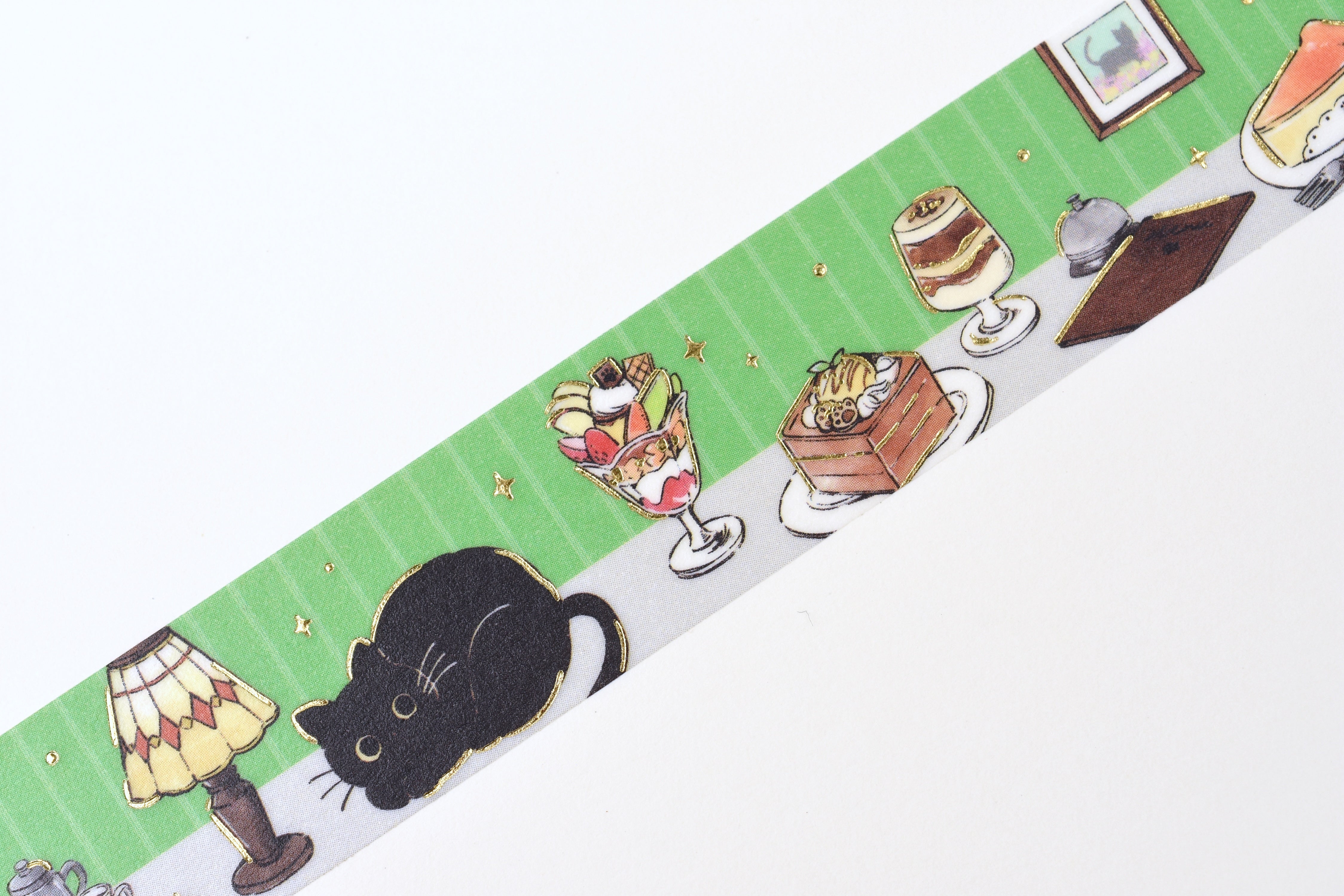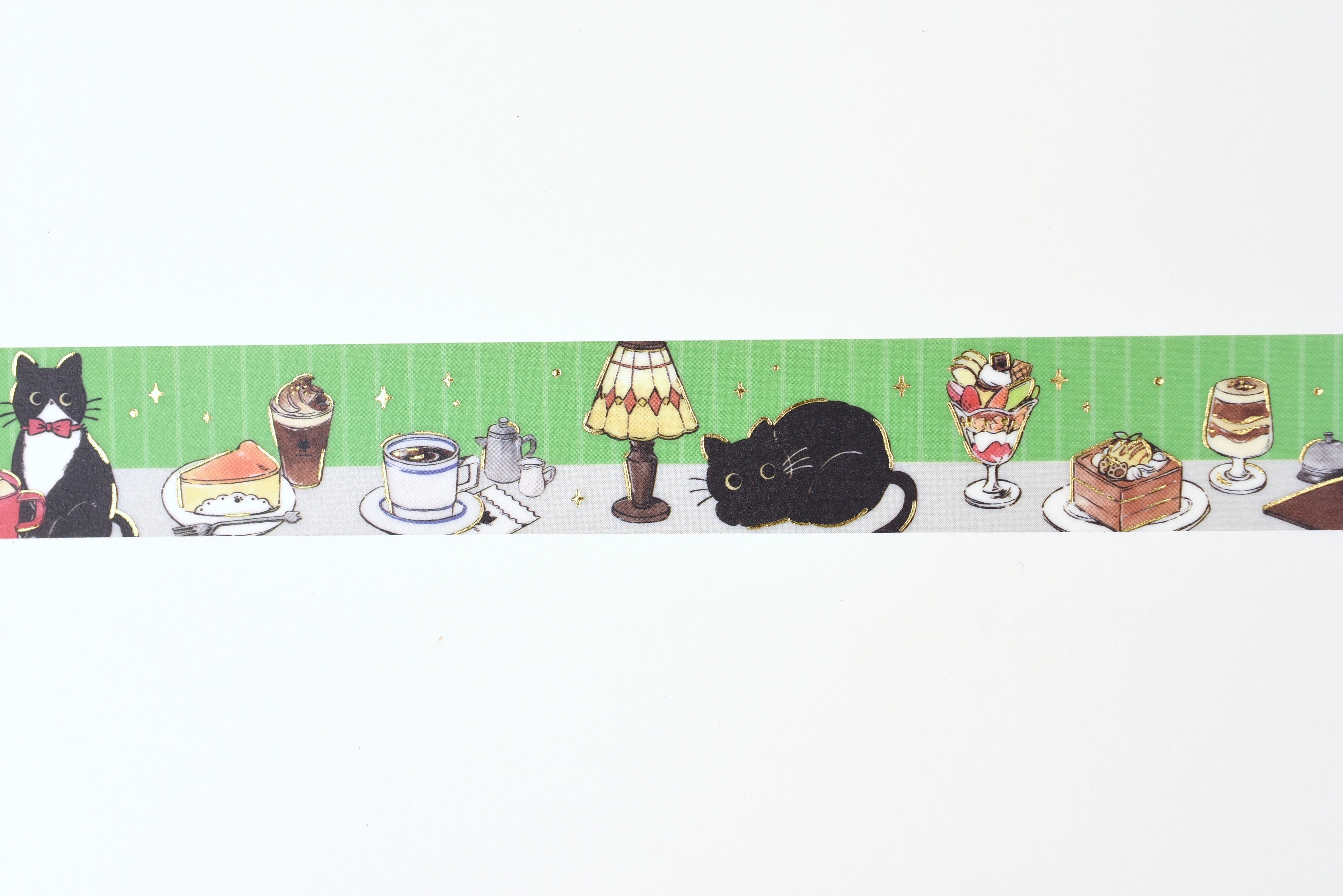 BGM Washi Tape - Foil Stamping - Cafe Black Cat - Cafe Table