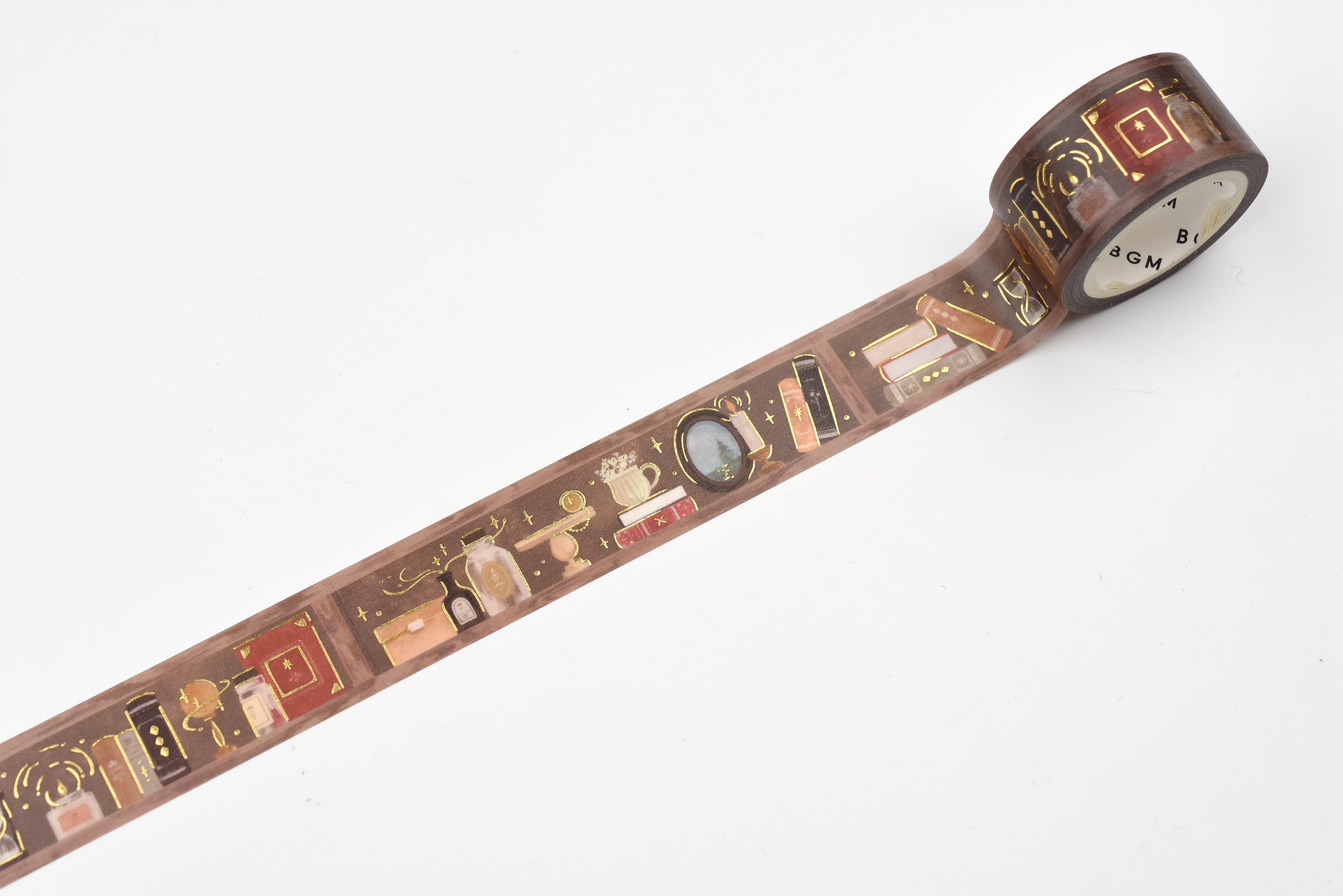 This washi tape series features shelves filled with spellbooks, potions, globes, and other items you might find in a magical study or library. Each design has its own theme with astrology, stars, and fantasy-inspired details. Subtle foil accents add a soft shimmer, making it a great choice for journals, planners, scrapbooks, and any page that could use a little touch of magic.