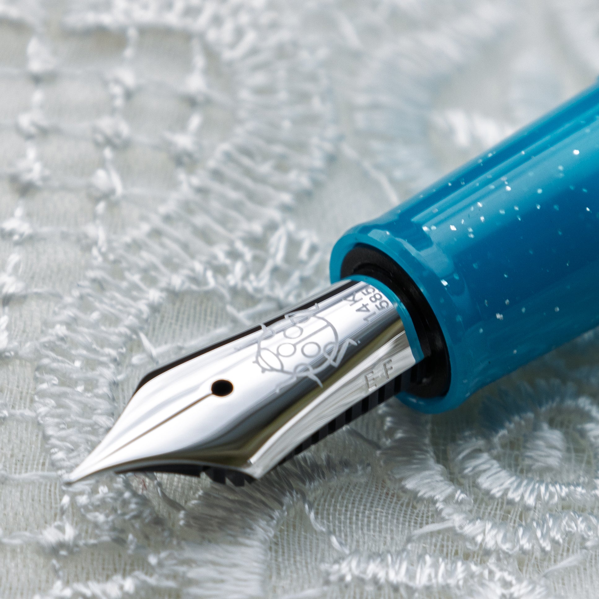 Inspired by the “June Bride Something Blue” ink, released on May 28, 2010, this fountain pen features a soft, clear blue color that remains a favorite 15 years later.