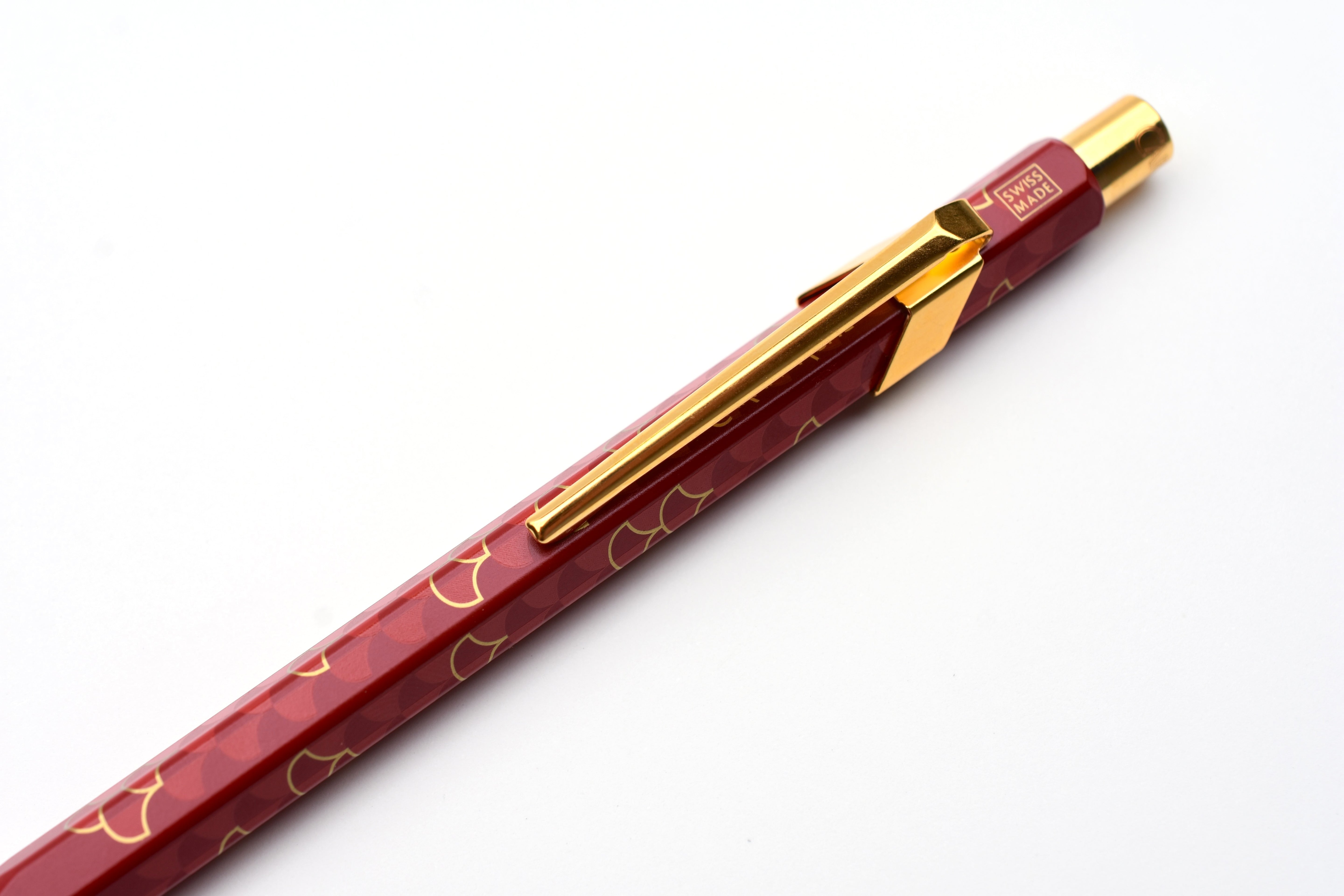 In order to commemorate the year of the Dragon in 2024, Caran d'Ache released this special edition of their iconic 849 Ballpoint Pen. This burgundy pen comes in a elegant dragon scale pattern accented with gold trims. The pattern is polished with gold and red prints on the matte aluminum body, showcasing Caran d'Ache's outstanding quality in their designs.