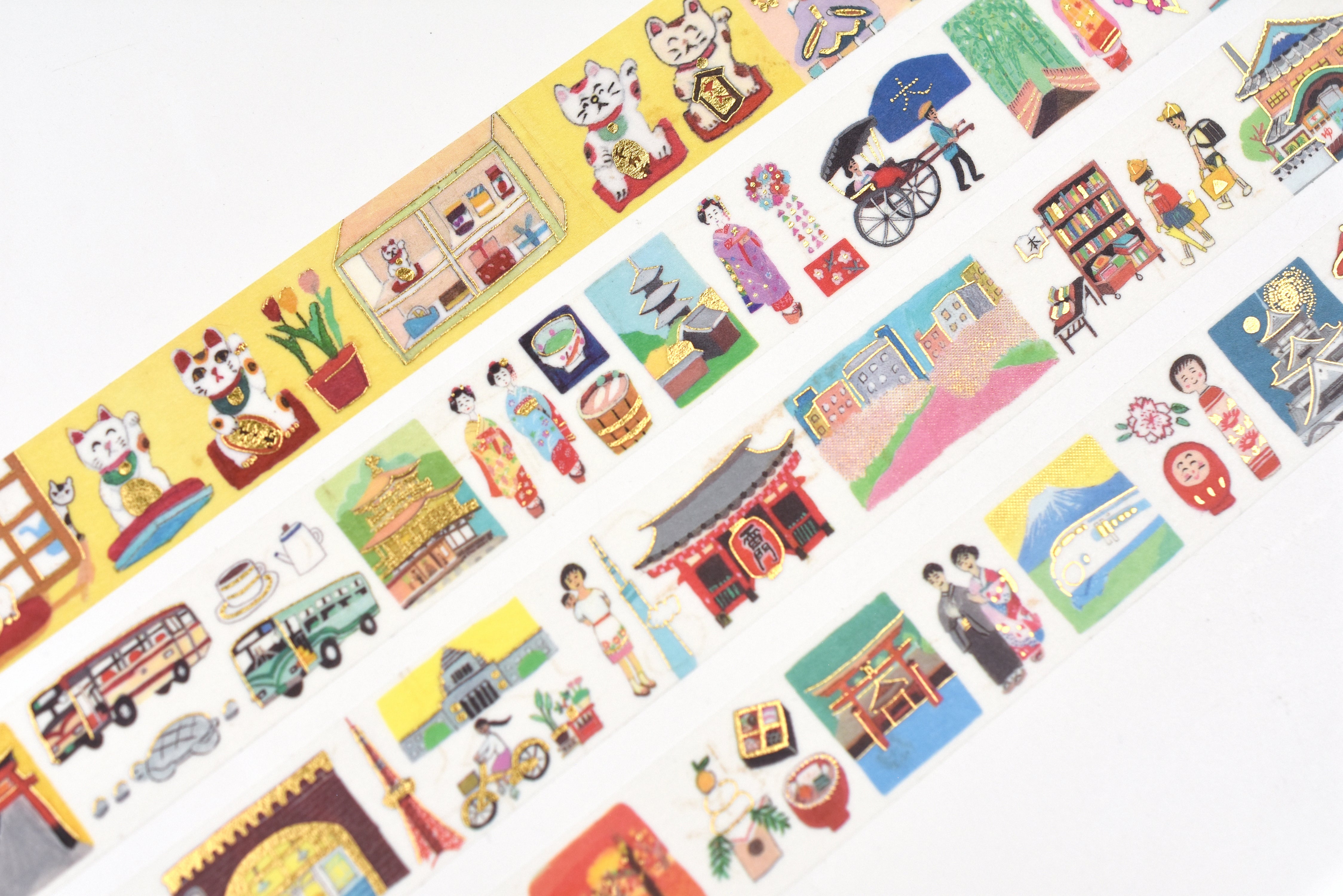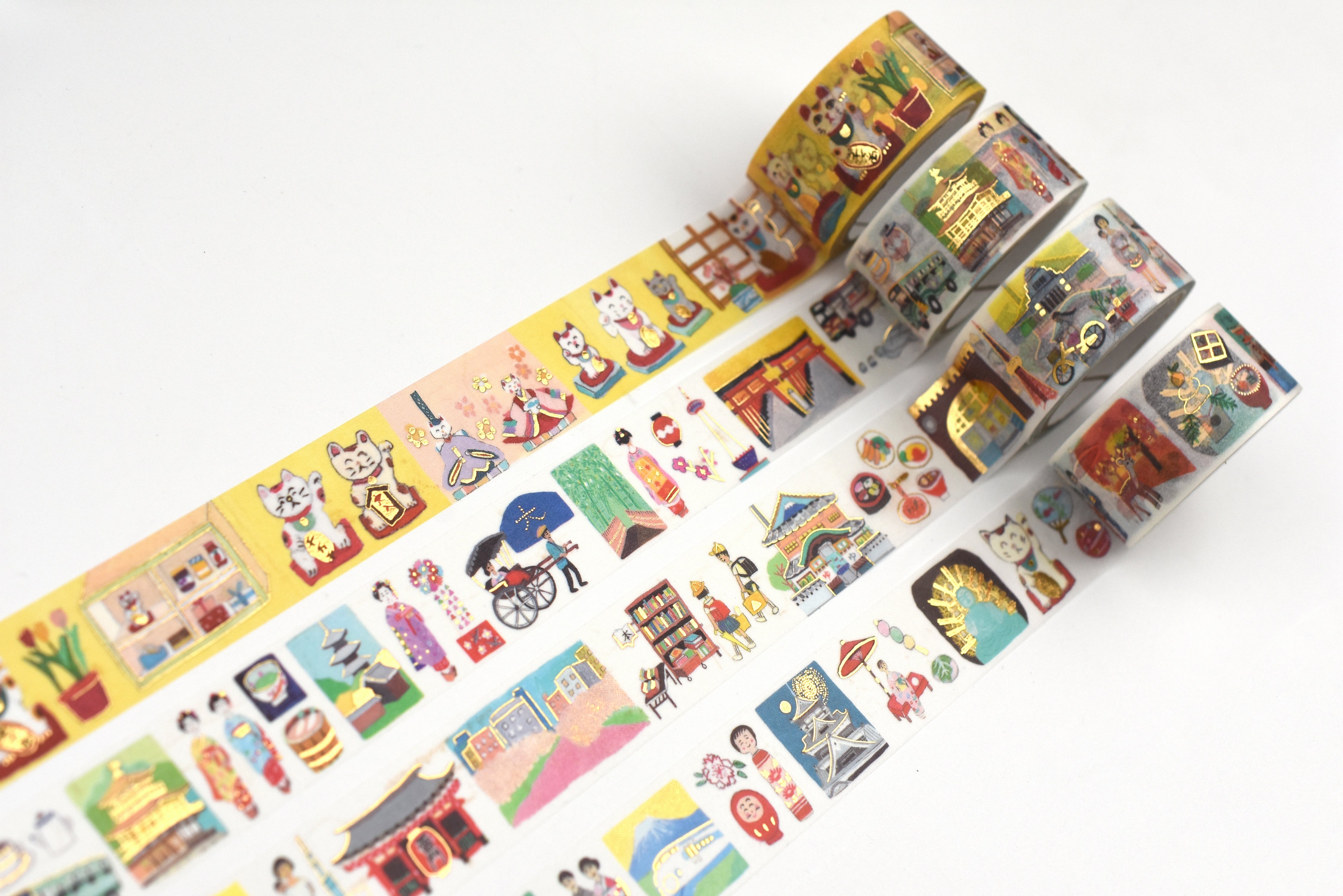 Ai Okino is a Japanese illustrator whose work features cute and detailed illustrations of famous places and cultural elements in Japan, particularly Kyoto and Osaka, often used in products like memo blocks, washi tapes, and masking tapes.
