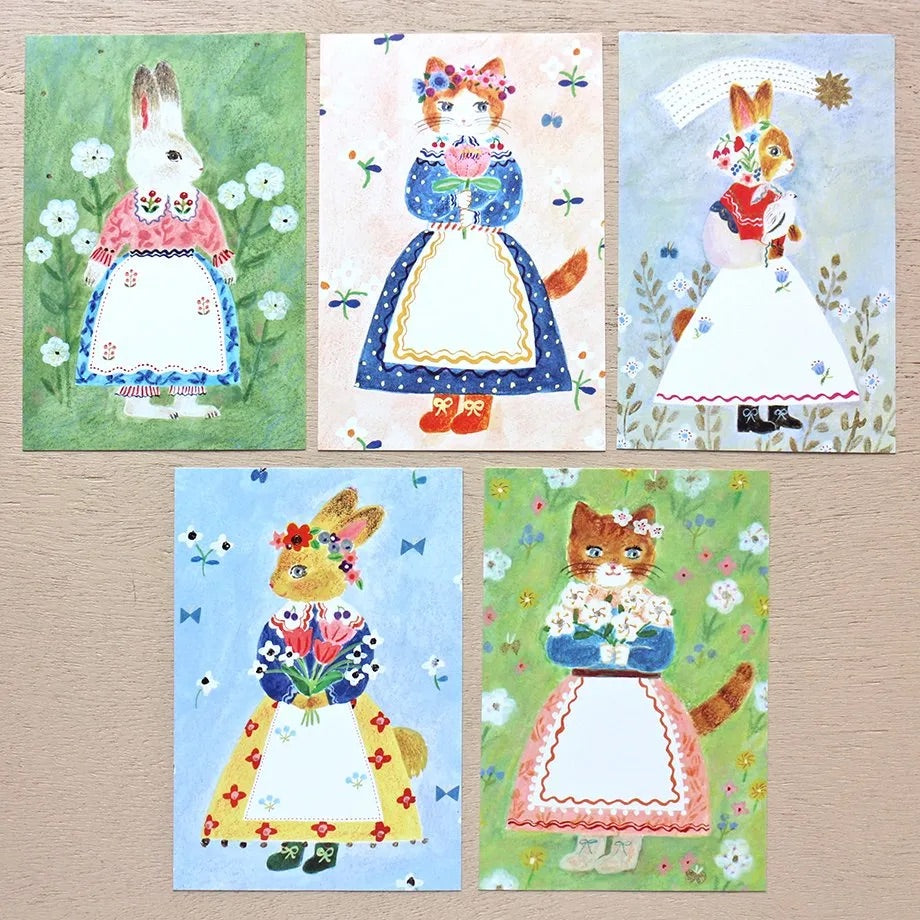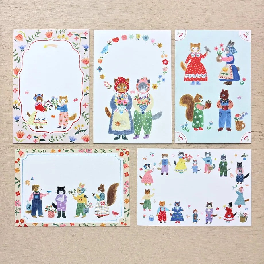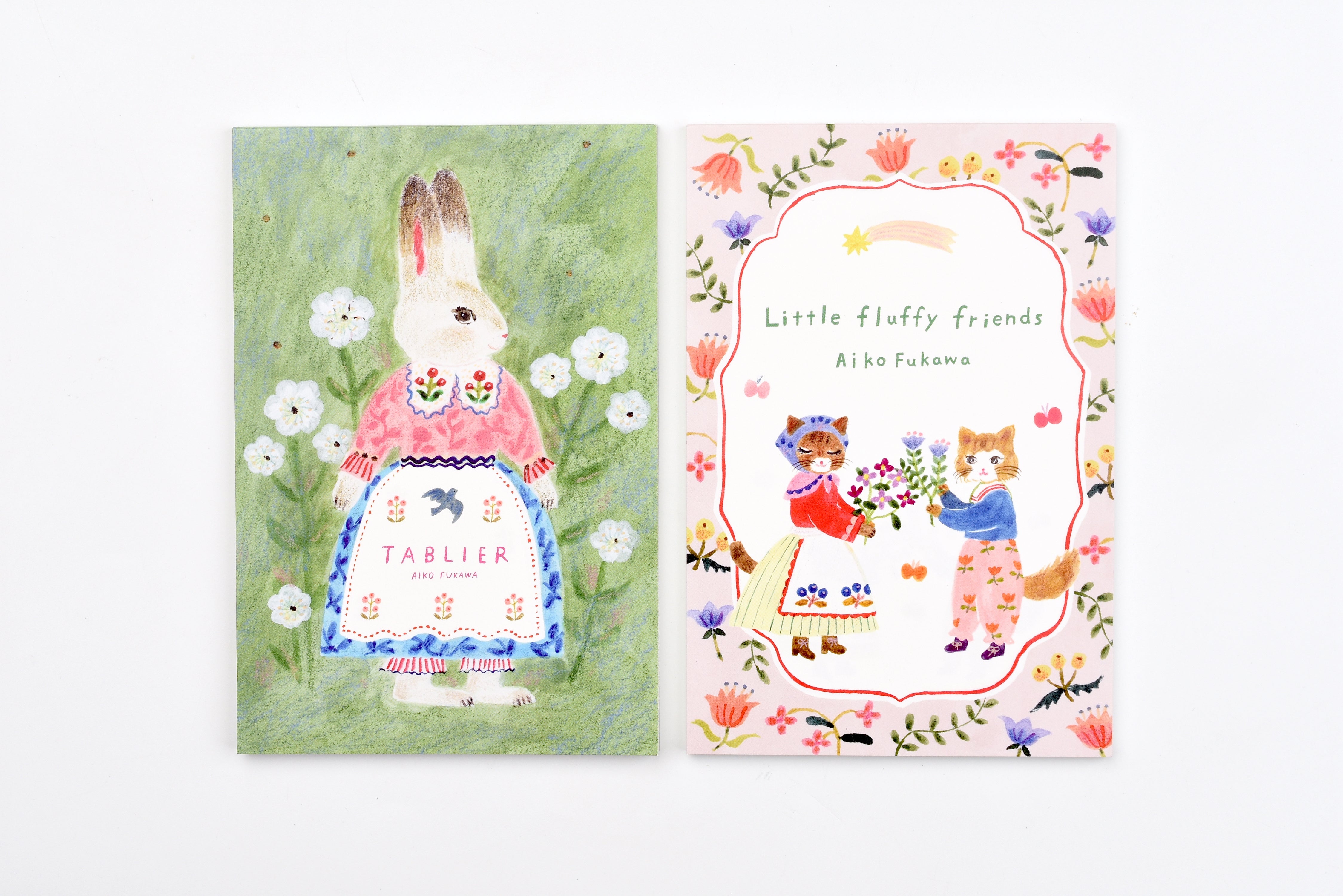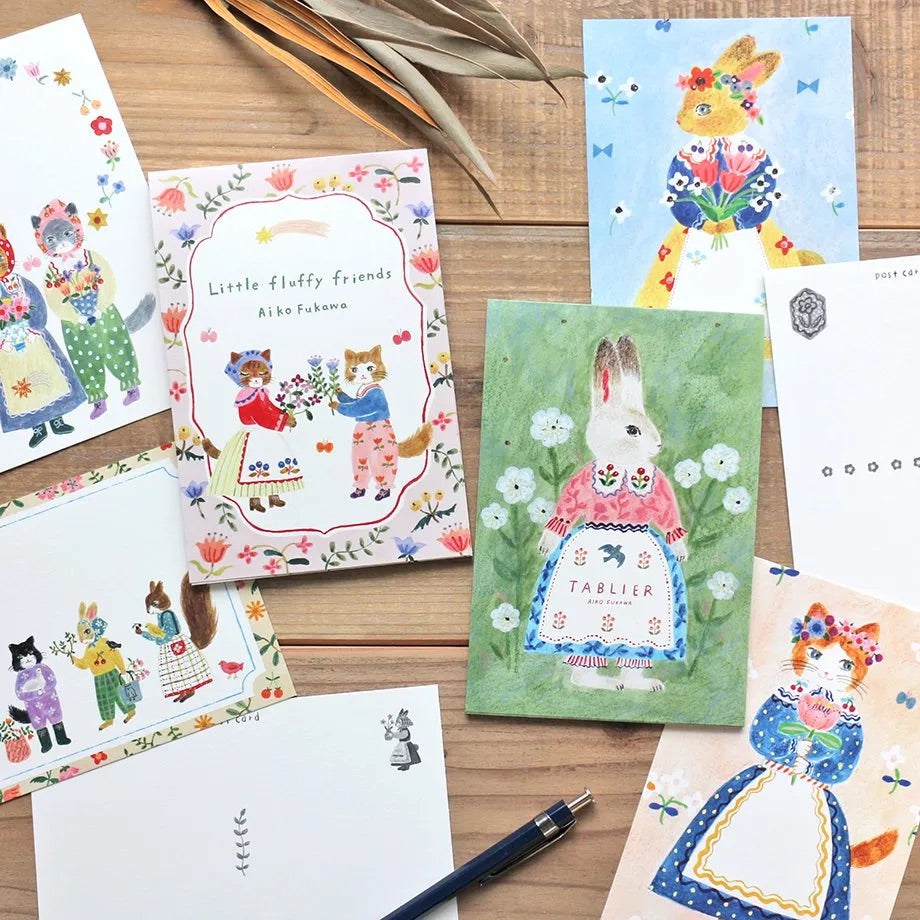 Aiko Fukawa is an illustrator who creates art used for advertisements, book covers, stationery, magazines, children's picture books and more. She has published an art book called Holiday Art Works and a coloring book entitled Four Seasons. We love her playful illustrations and can see why they would be the perfect choice for children's picture books. Her Instagram bio reads "ILLUSTRATOR. I LOVE CAT" and her love of cats is clearly evident in many of her fun works. This postcard set, designed in collaboration with Aiko Fukawa, feature her fun illustrations, which often include personified animals in natural settings.