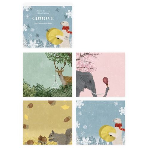 Akira Kusaka is an illustrator and graphic designer from Osaka. Using only photoshop, he illustrates and produces images with a grainy texture and feel. He is also a trombone player in a two-man band called "Repair." Many of his illustrations feature music and moonlight in his signature grainy/dusty style. This memo pad is adorable and depicts animals playing various instruments.