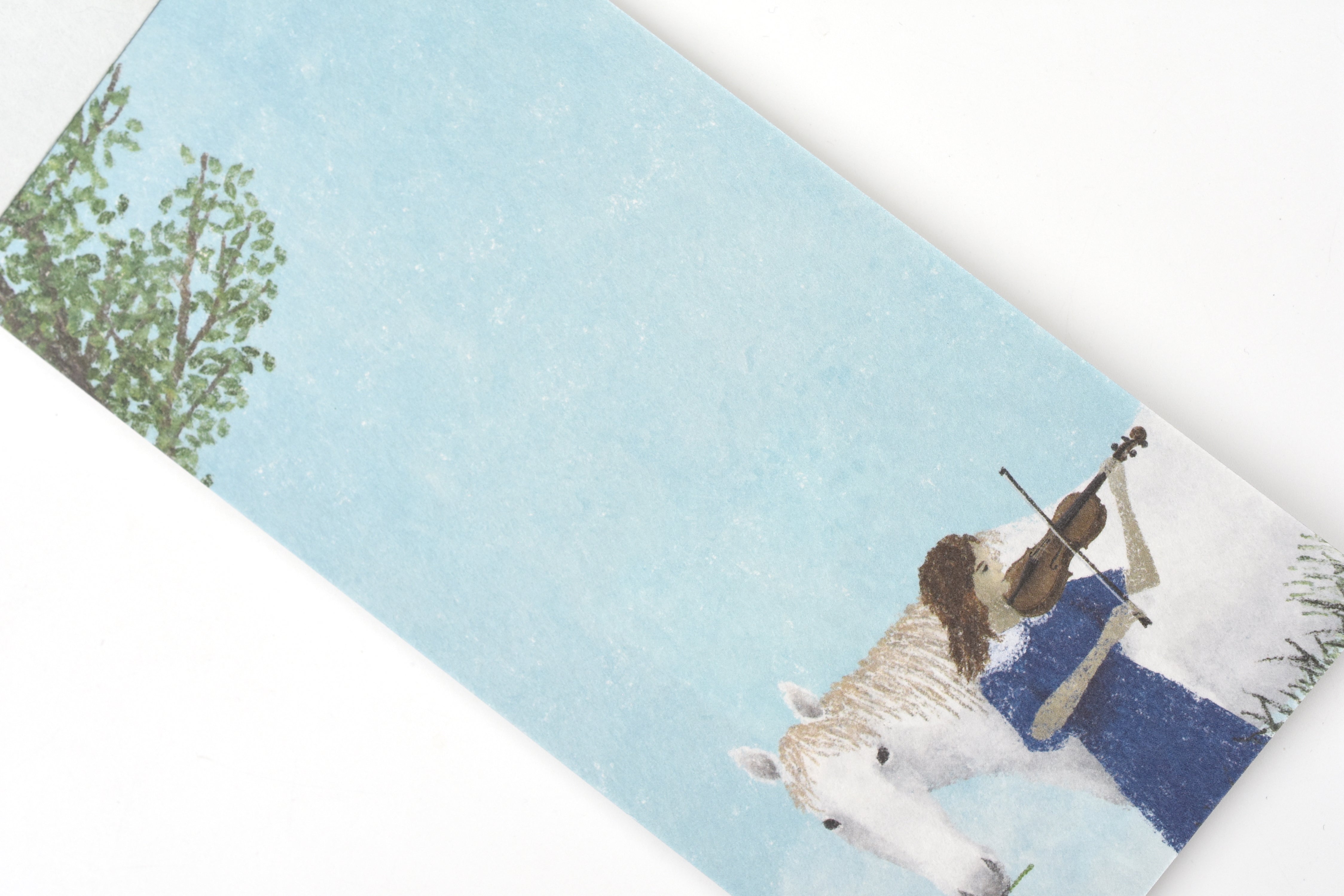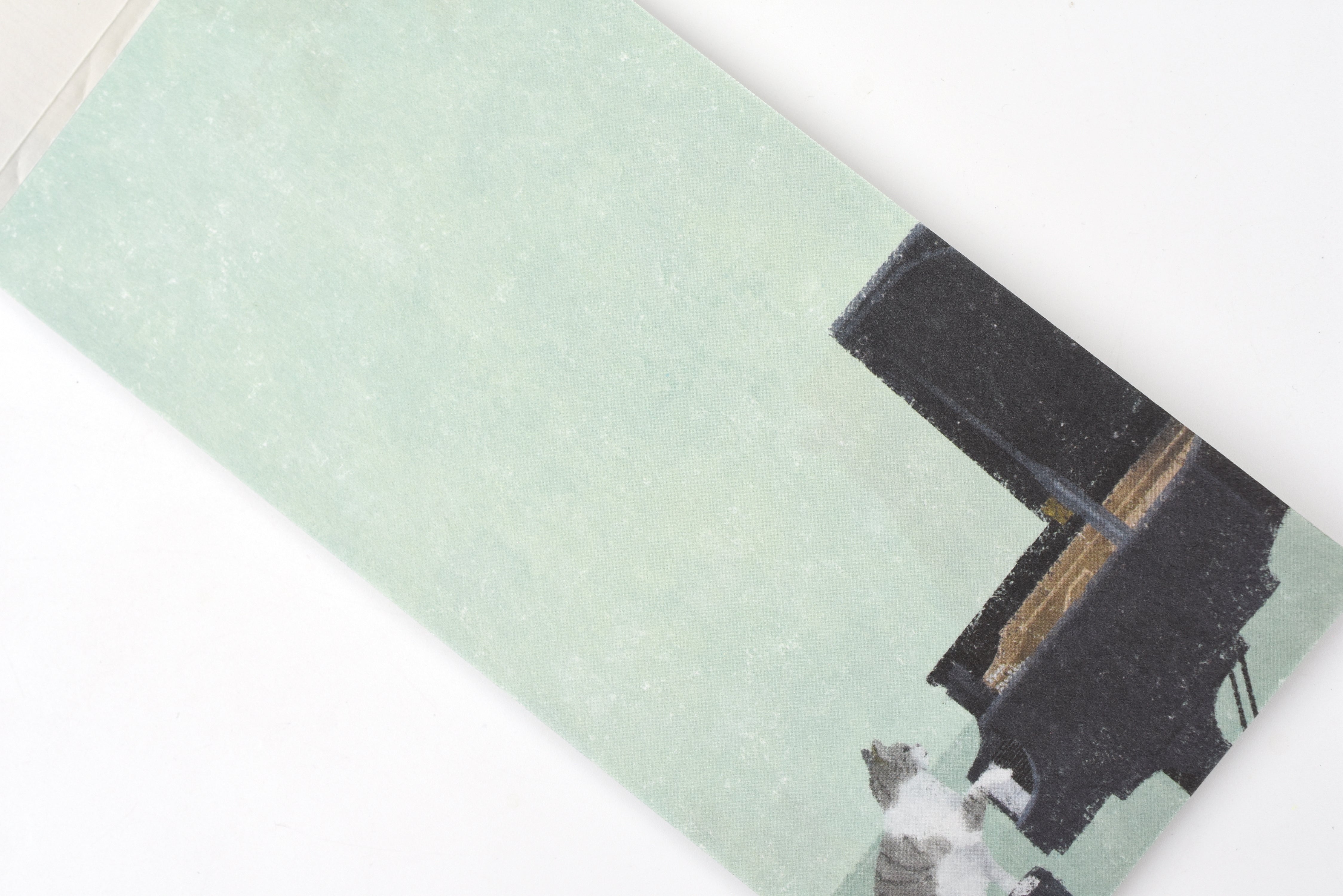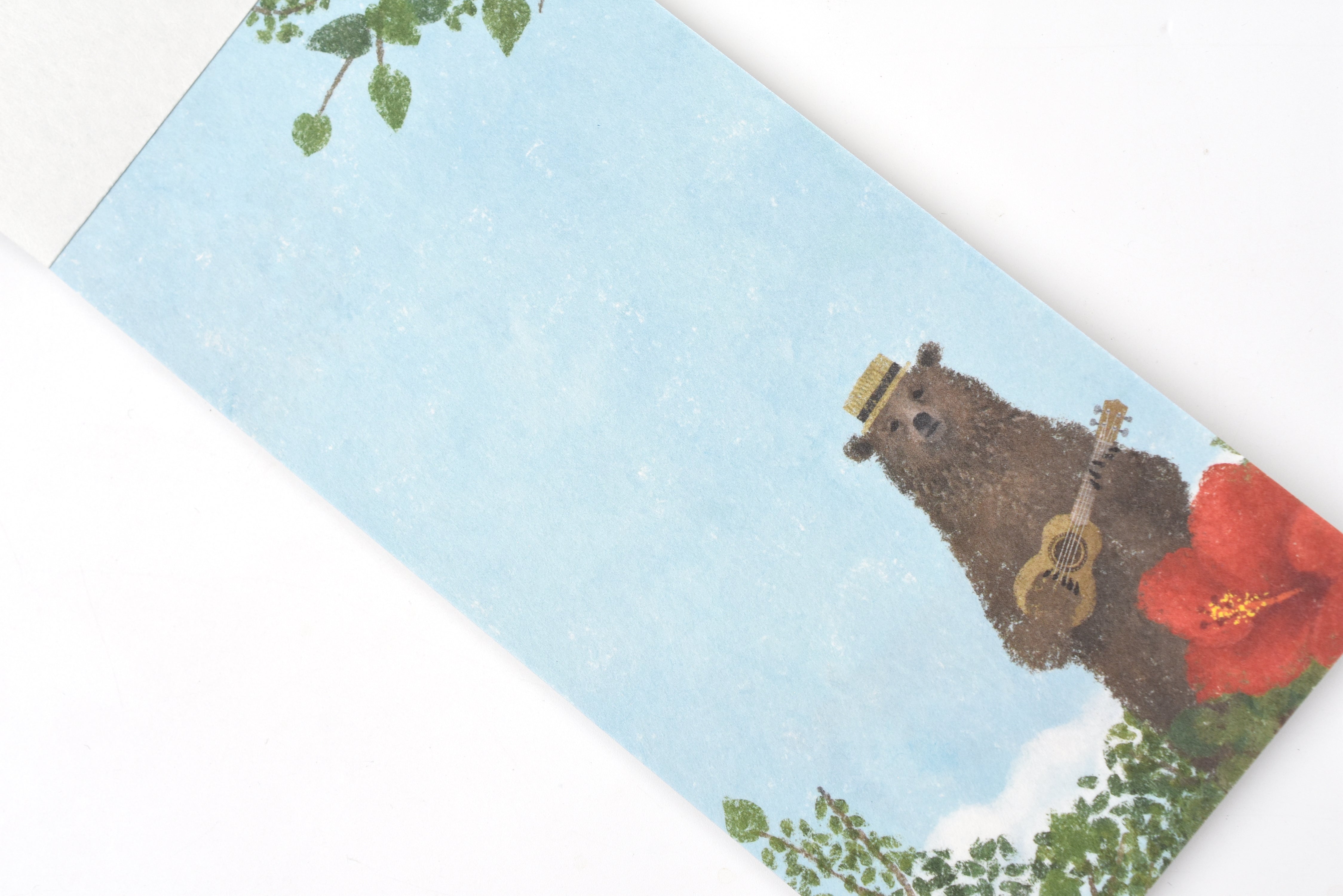 Akira Kusaka is an illustrator and graphic designer from Osaka. Using only photoshop, he illustrates and produces images with a grainy texture and feel. He is also a trombone player in a two-man band called "Repair." Many of his illustrations feature music and moonlight in his signature grainy/dusty style. This "rhythm" memo pad is adorable and depicts animals playing various instruments.