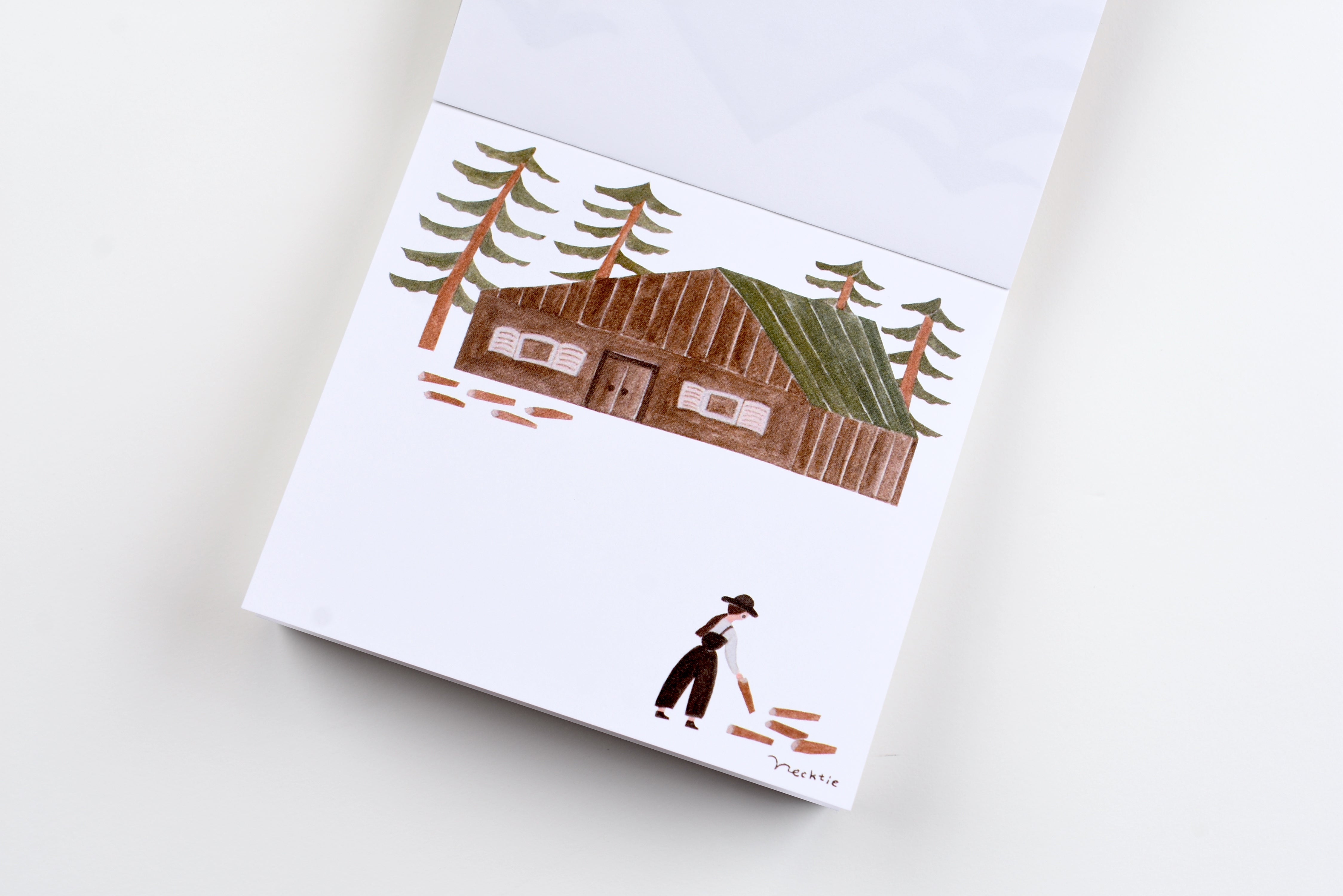 Necktie is the name of the duo made up of illustrators Norio and Asami. Their main work is illustration but they also do various designs works, run an atelier shop, make paper goods and picture books, run workshops for children and make bread. We love the reflection of the passage of time in their in their artwork and the beautiful palette of colors they work with. These memo pads, designed in collaboration with Necktie, feature their illustrations of people and nature as time passes.