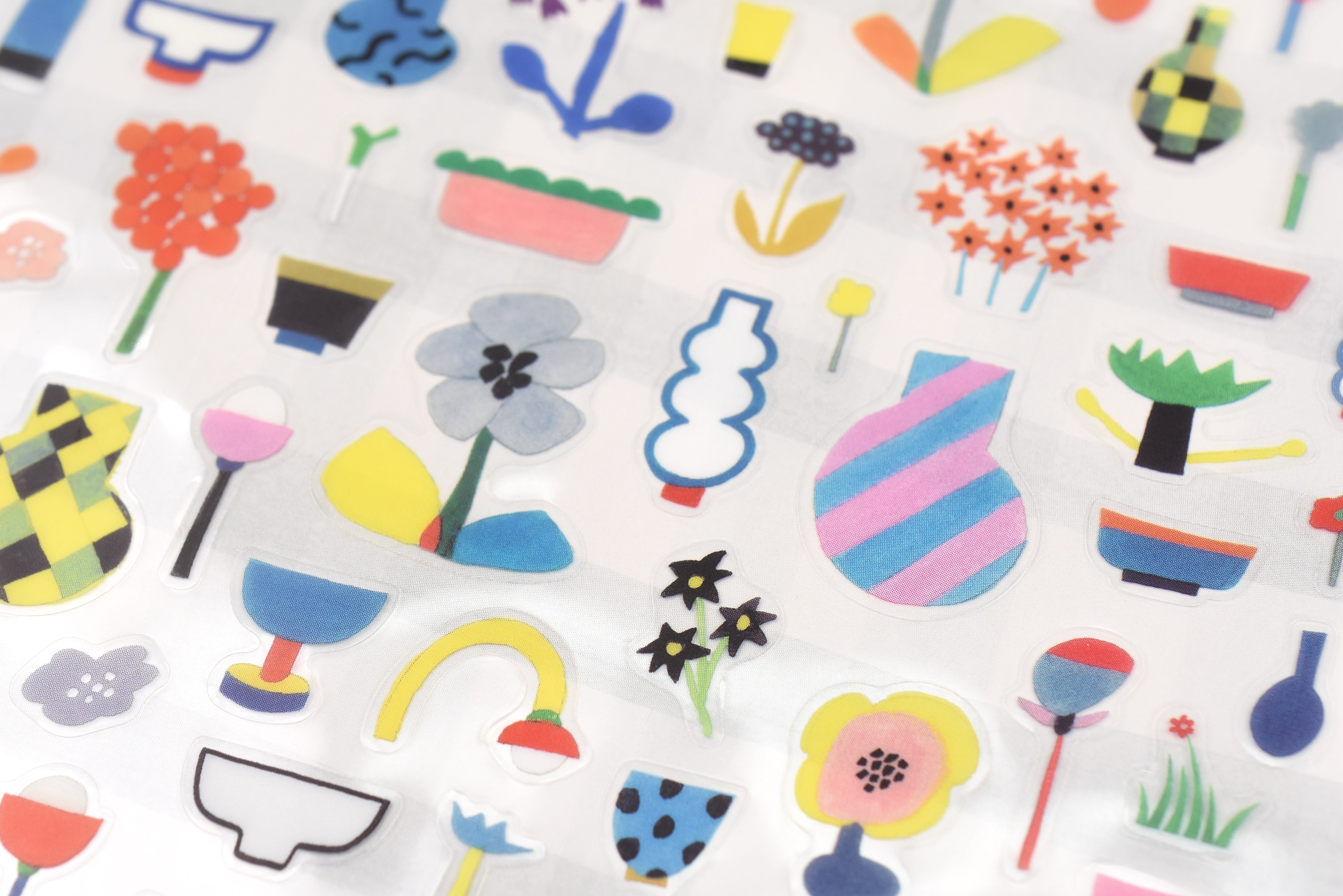 Subikiawa is an artist most well-known for his paintings on glassware and tableware which he started in 2005. His use of bright colors and quirky shapes combined with the transparent glass creates a beautiful effect on the wine glasses and other glassware. This notepad, made with translucent tracing paper and designed in collaboration with Subikiawa, features his artistic style translated on paper, creating a very interesting and unique sticky note pad.