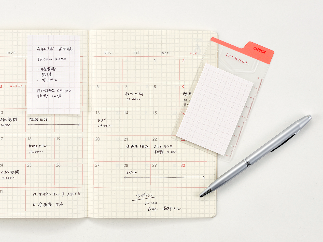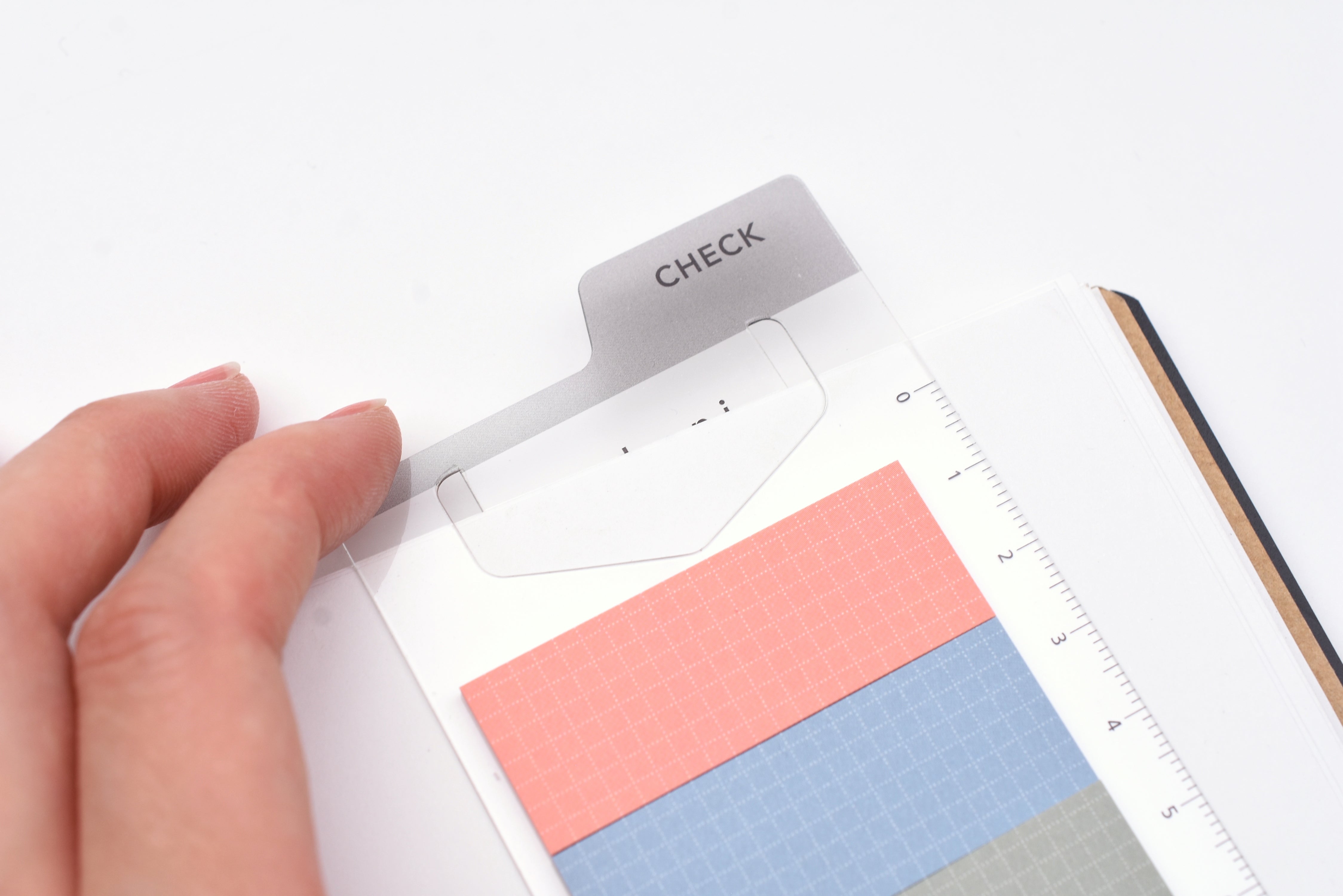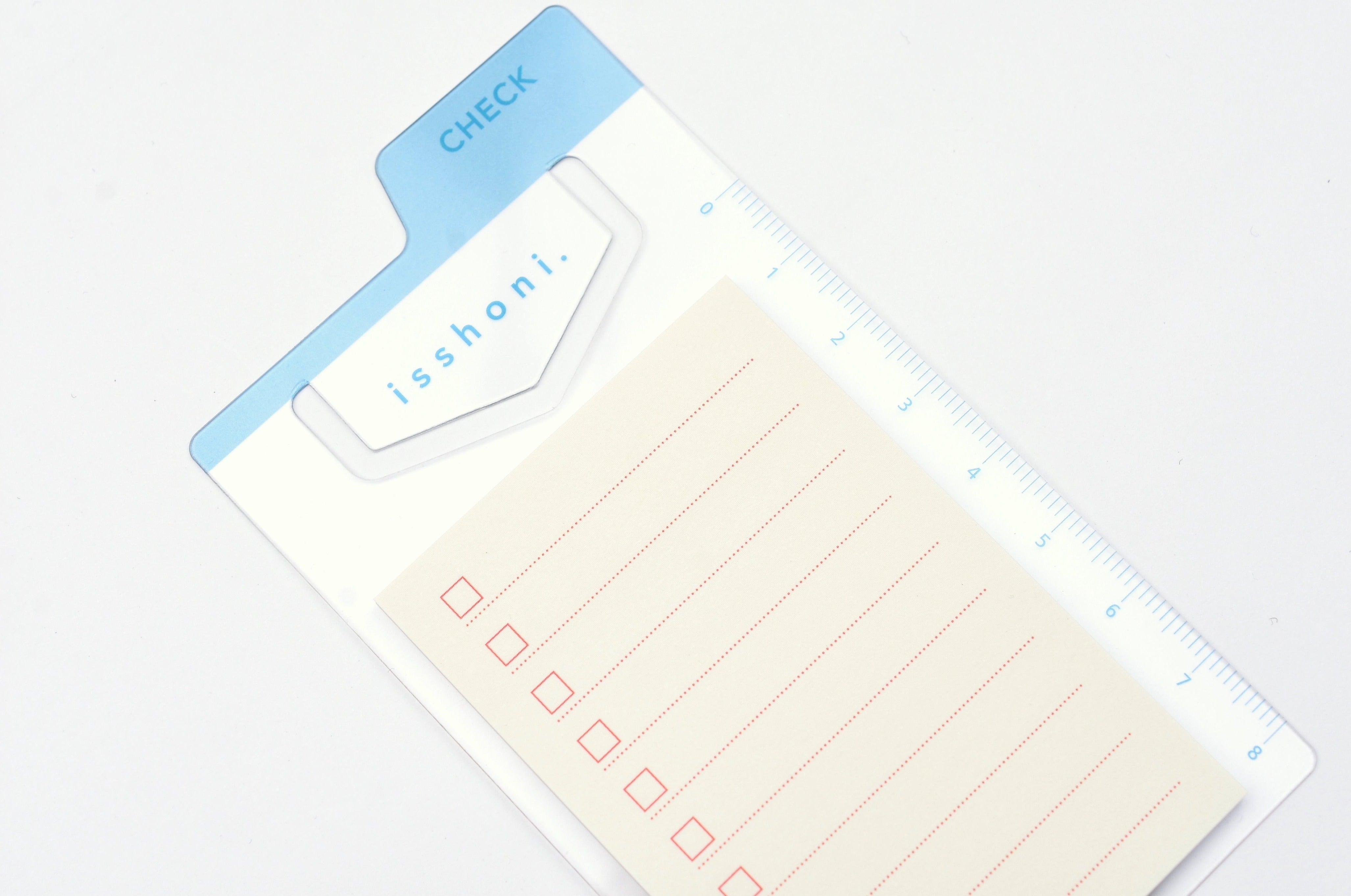 The isshoni. series is created by DAIGO to assist professionals to improve their daily efficiency, enlighten their mood at work, or to make less mistakes. Isshoni means "do it together" in Japanese, and DAIGO aims to bring work-life balance to every office worker under this concept. The Bookmark Sticky Note is a useful tool that can clip on to your planner pages, and comes with three different styles of sticky notes for multiple purposes. The cream colored paper will write smoothly for all kinds of pens. The side of the bookmark can also be used as a ruler.