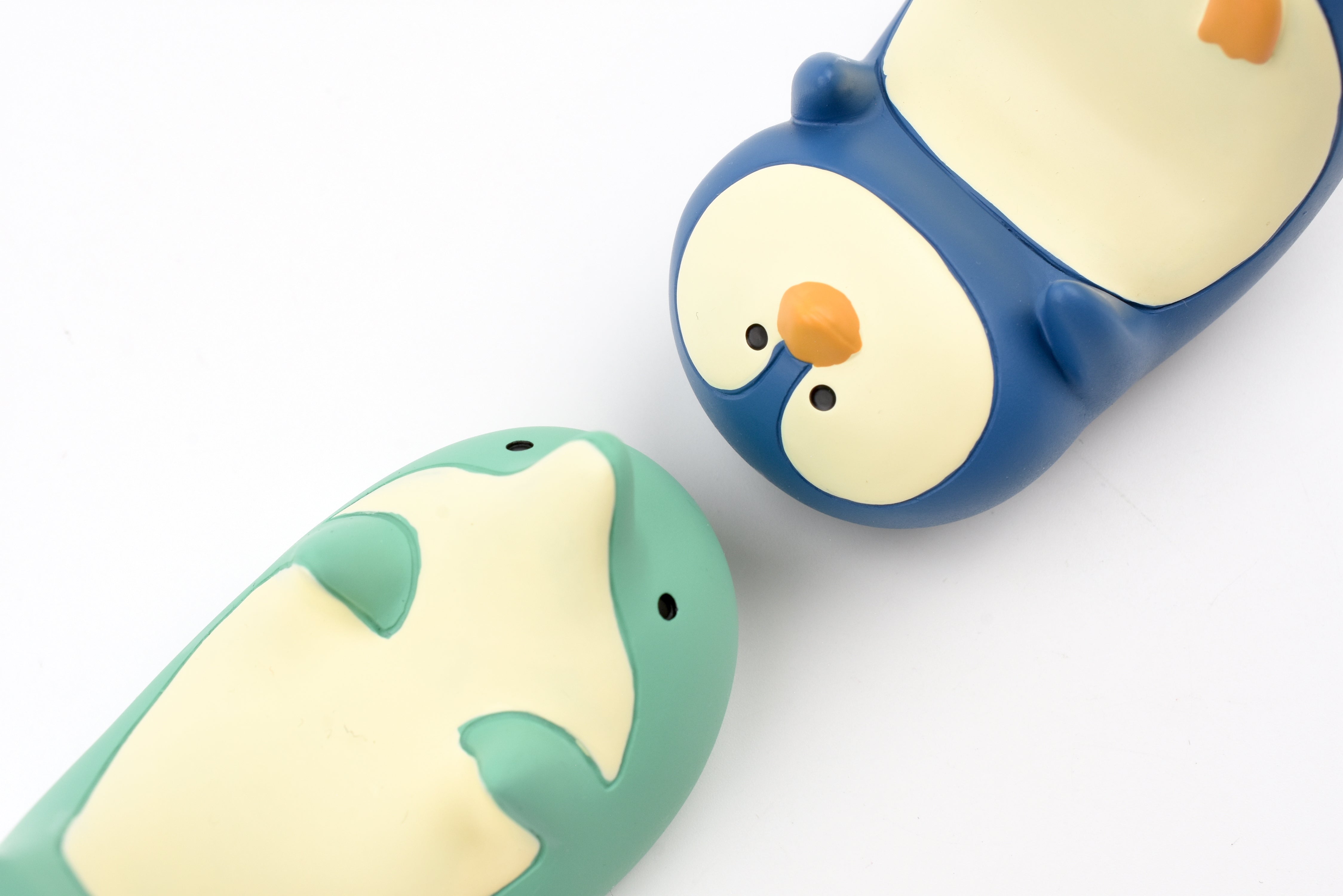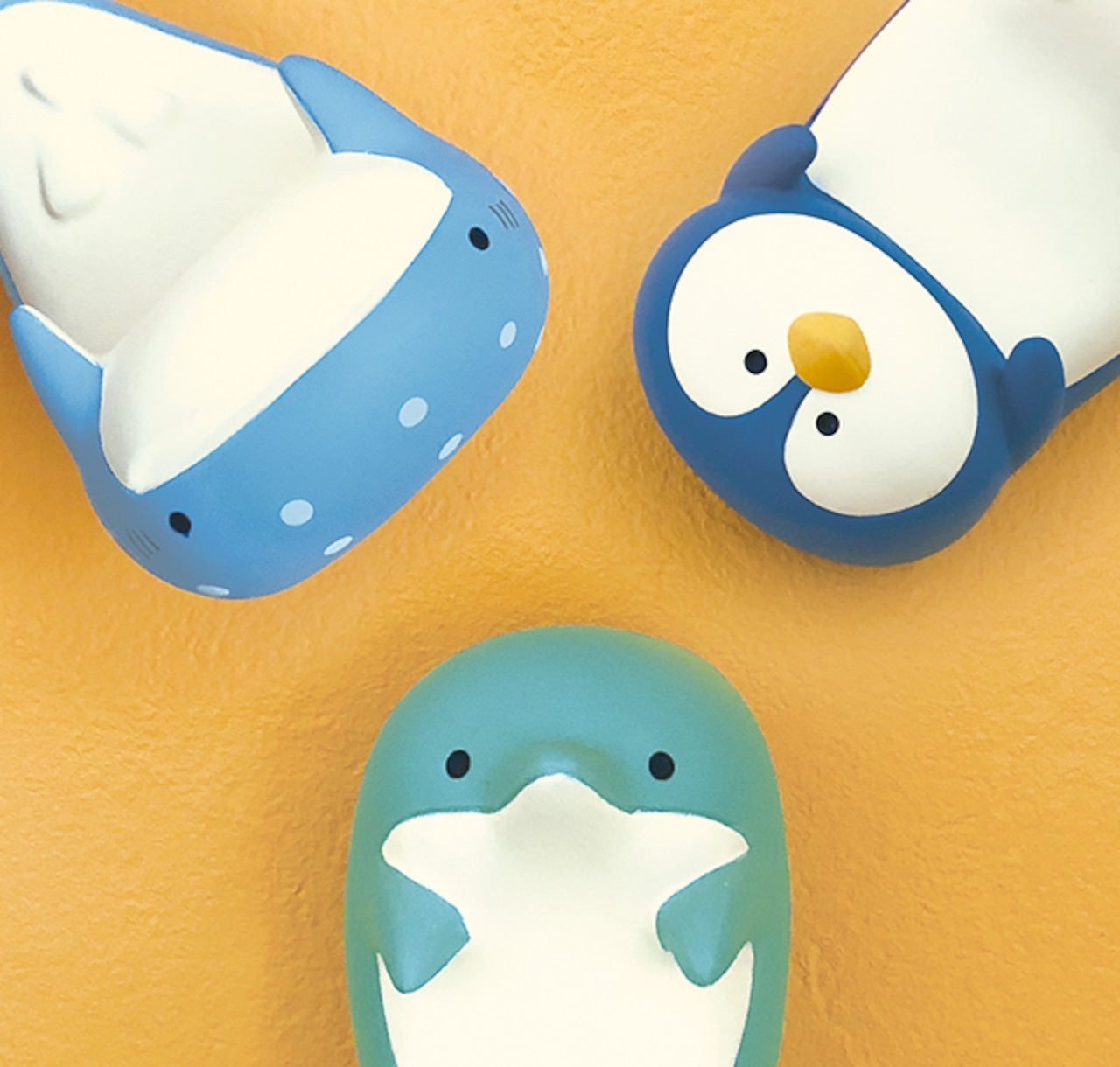 These adorable smartphone stands from Decole’s Harapeko Animal series feature a cute dolphin, penguin, and whale shark lying upside down like hungry little creatures waiting to be fed. With their flippers raised, they gently cradle your device at a comfortable angle, perfect for watching videos, making video calls, or displaying photos. Compact, functional, and full of personality, they bring a playful and lighthearted charm to any desk or bedside table.