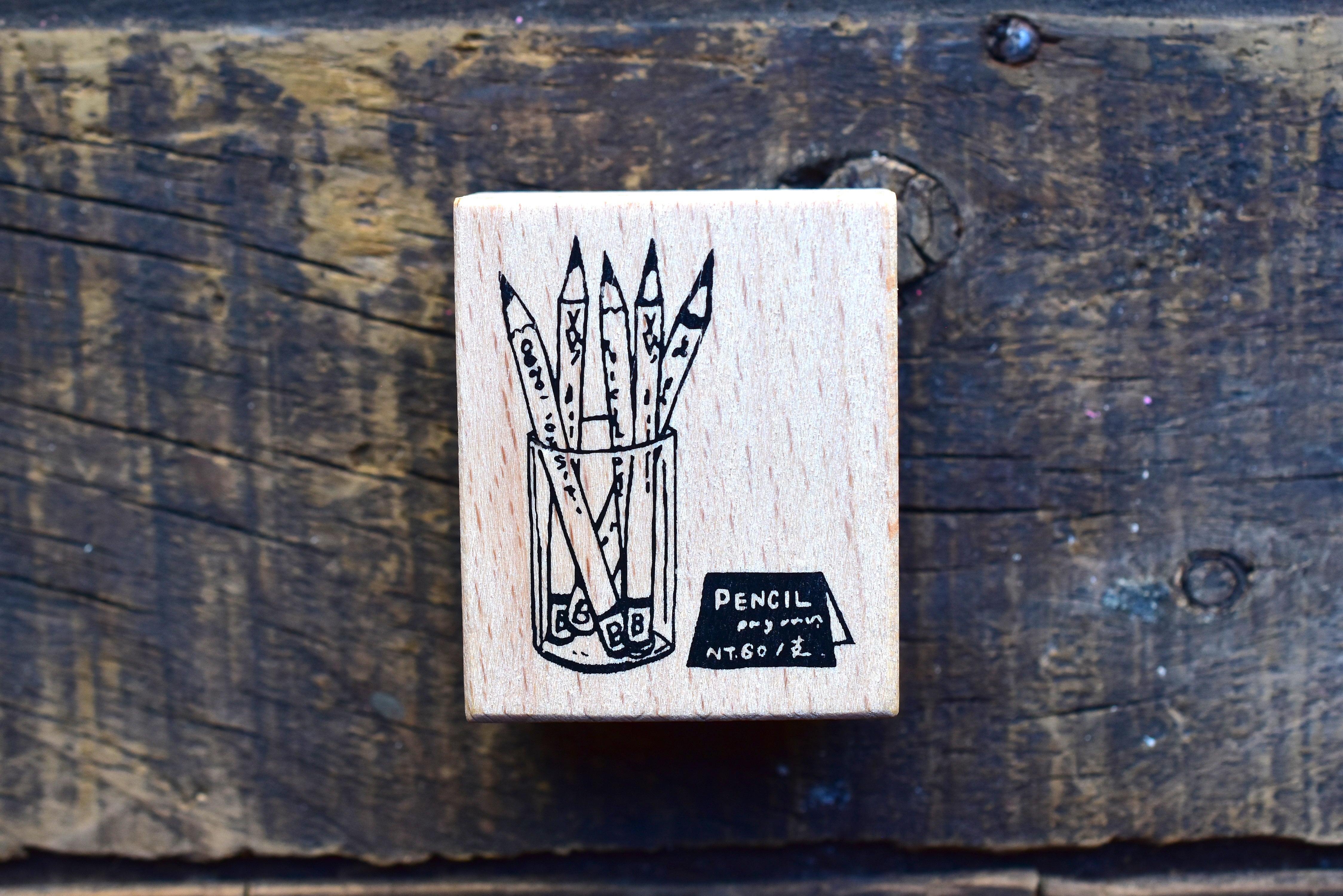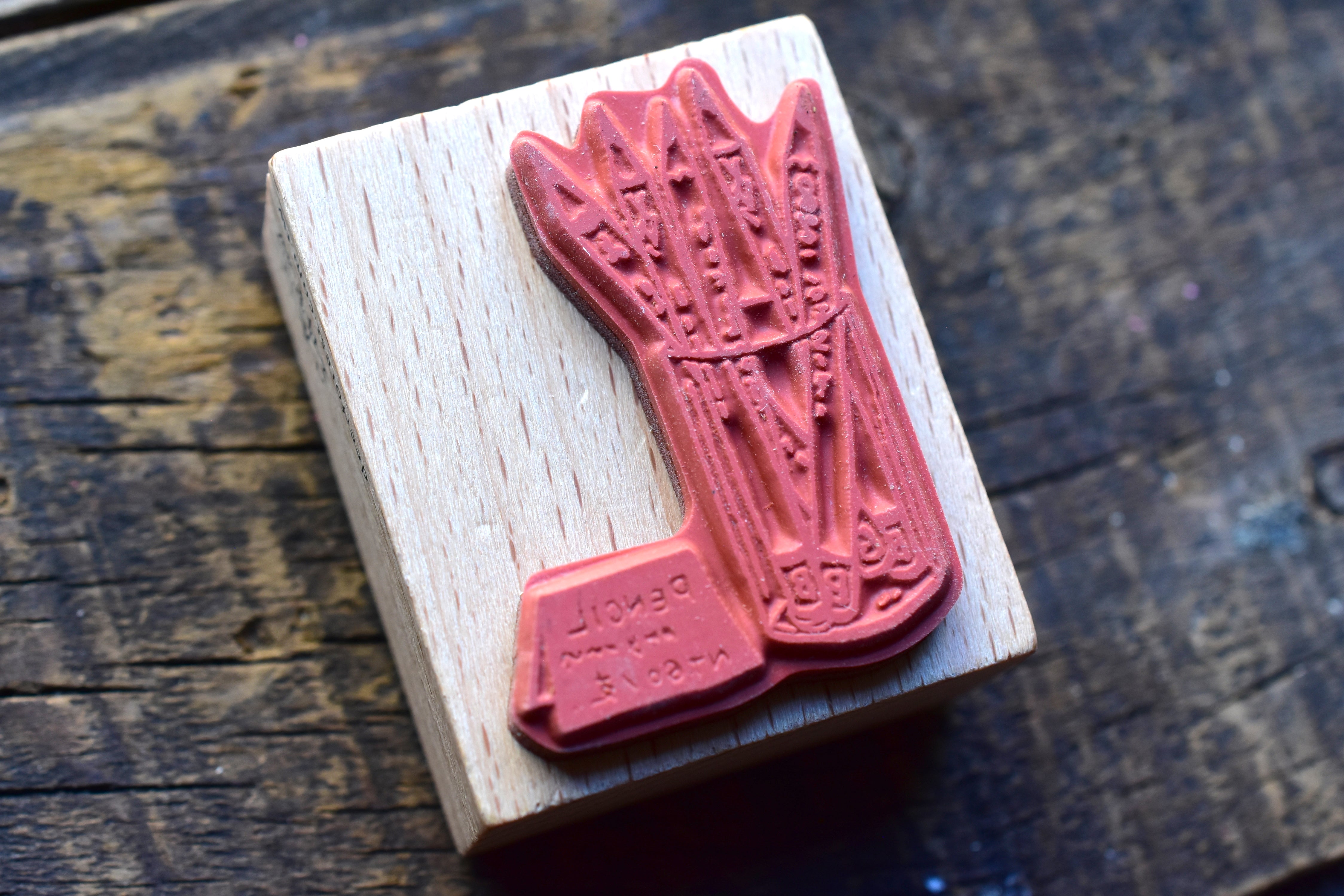 - Materials: wooden stamp handle, rubber stamp surface