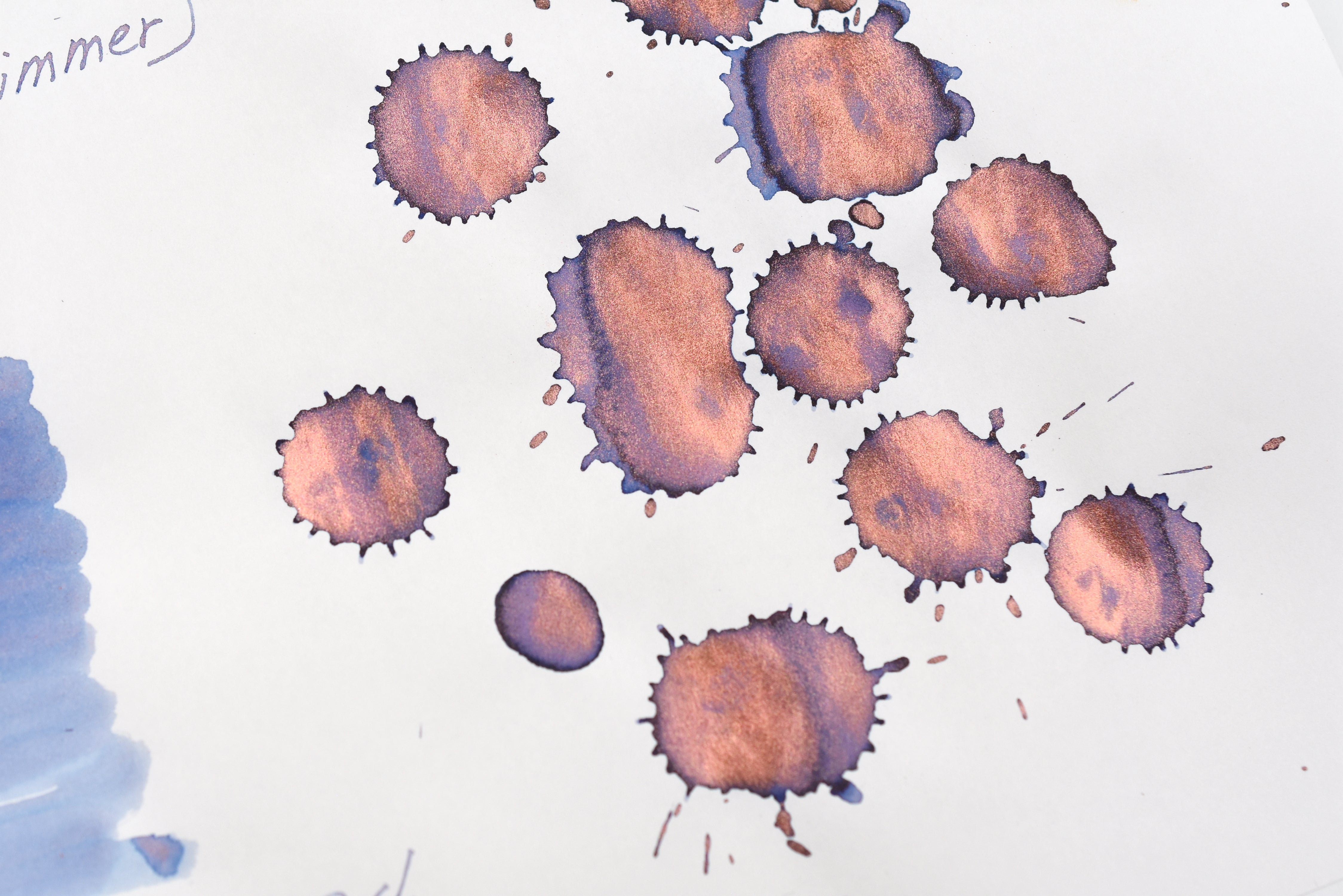 Lily B. I was really looking forward to the shimmer of this ink, but even with an M sized nib the shimmer is inconsistent and rarely shows up. The color itself without the shimmer is so light I can barely see it. The ink is also really watery, which I’ve learned recently, I do not care for. This ink might work better with a dip pen.