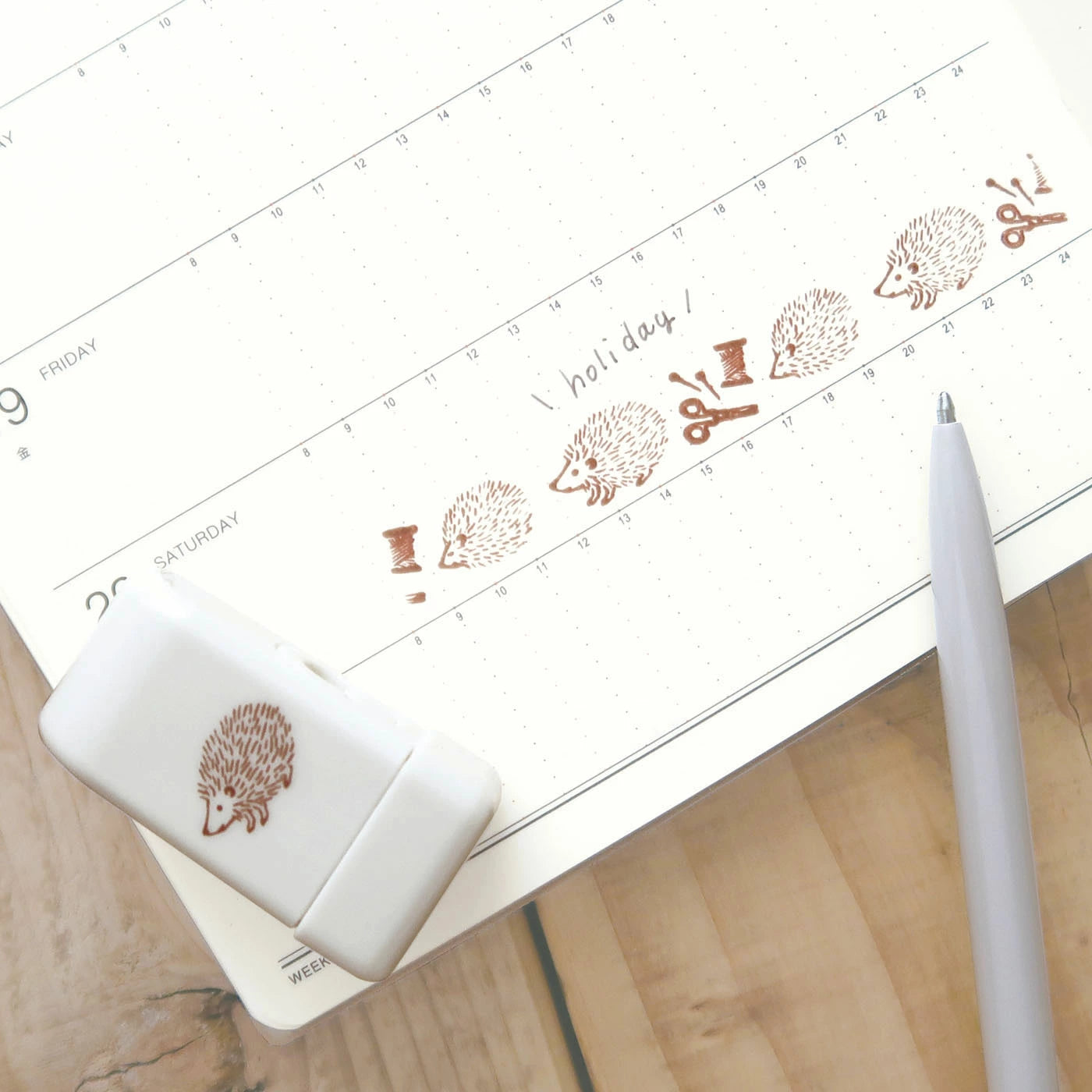 The EL COMMUN Deco Loop Stamps are a self-inking roller stamp. Add a cute touch to your planner or notebook by simply rolling the stamp across the page. The oil-based ink won’t bleed, even if you write or color over it with a marker. Compact and easy to carry, it fits nicely in a pencil case or pouch. Its design makes it easy to add a pop of color to the border of even the simplest pages and cards.