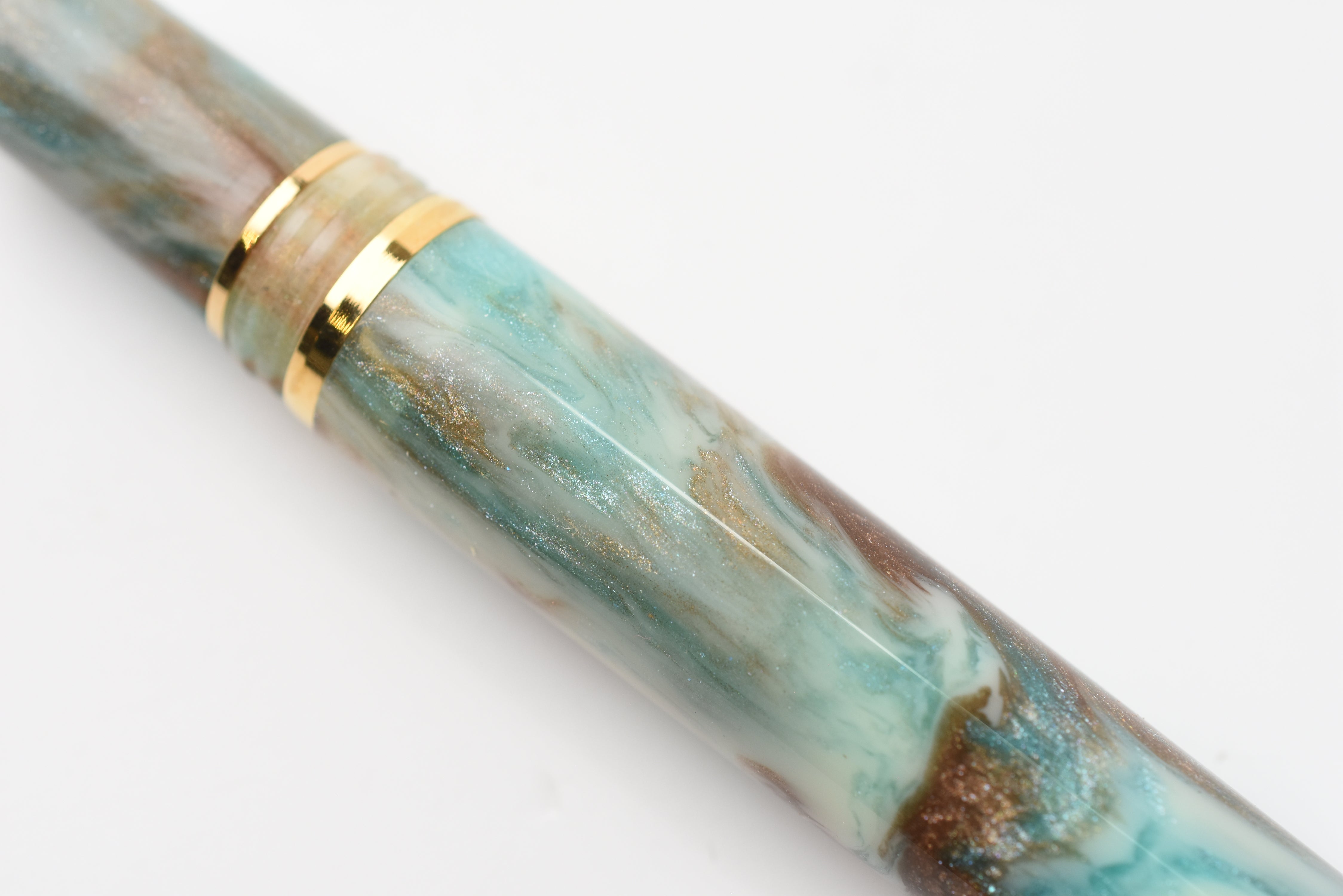 This limited-run pen features hand-blended DiamondCast material made in North Carolina, USA. Infused with real diamond dust, it creates brilliant depth, shimmer, and luminosity in every piece. Each blend is custom-poured, so no two pens are ever exactly alike.