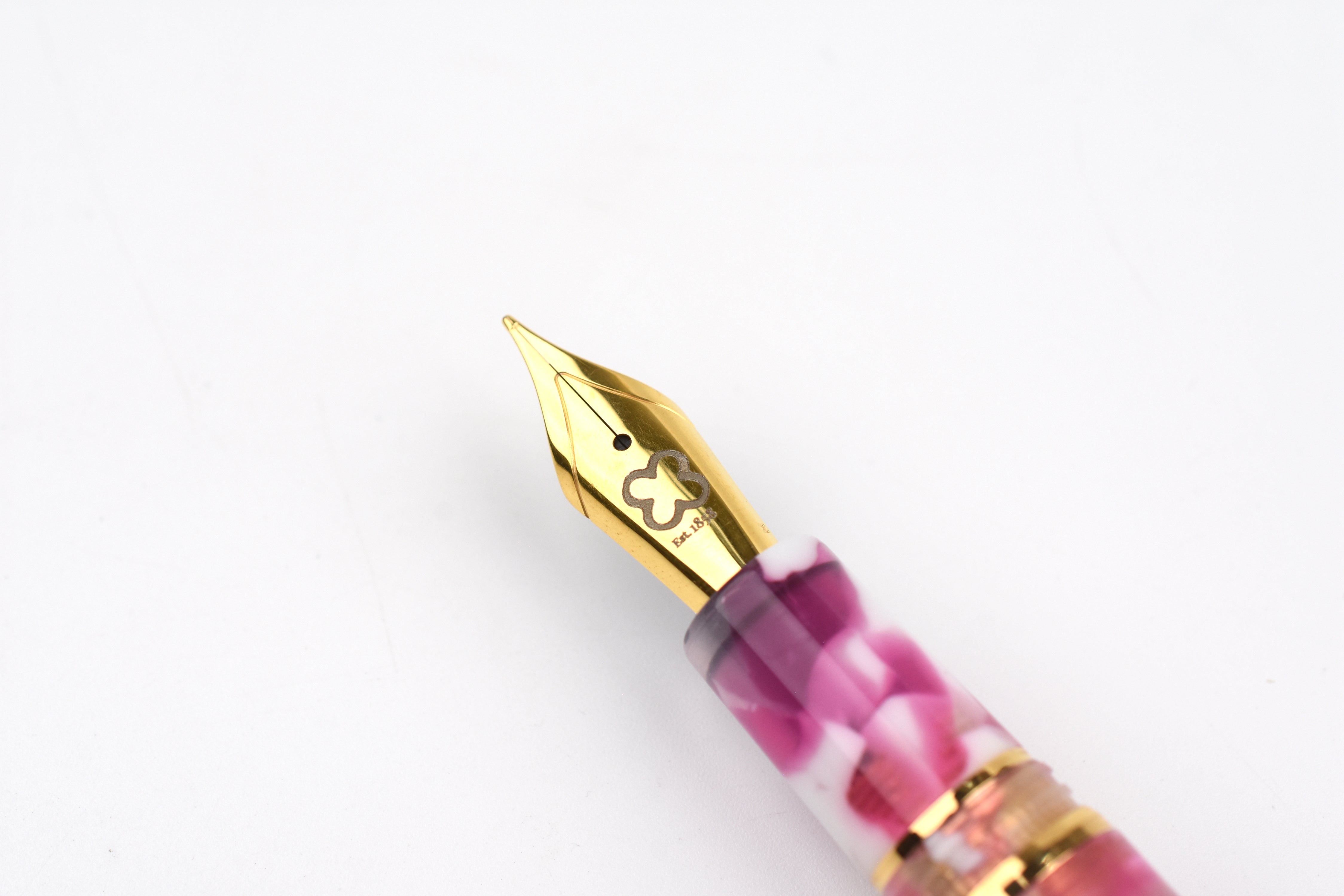 The Esterbrook Bestie Collection celebrates friendship, fun, and a shared love of pinks and purples through two joyful fountain pens: Bubble Gum Pink and Sugar Plum Purple. Bubble Gum Pink blends deep pinks, fuchsia, and soft whites for a lively yet balanced look, while Sugar Plum Purple features a dark, grape-toned purple accented with delicate white flecks for depth and whimsy.