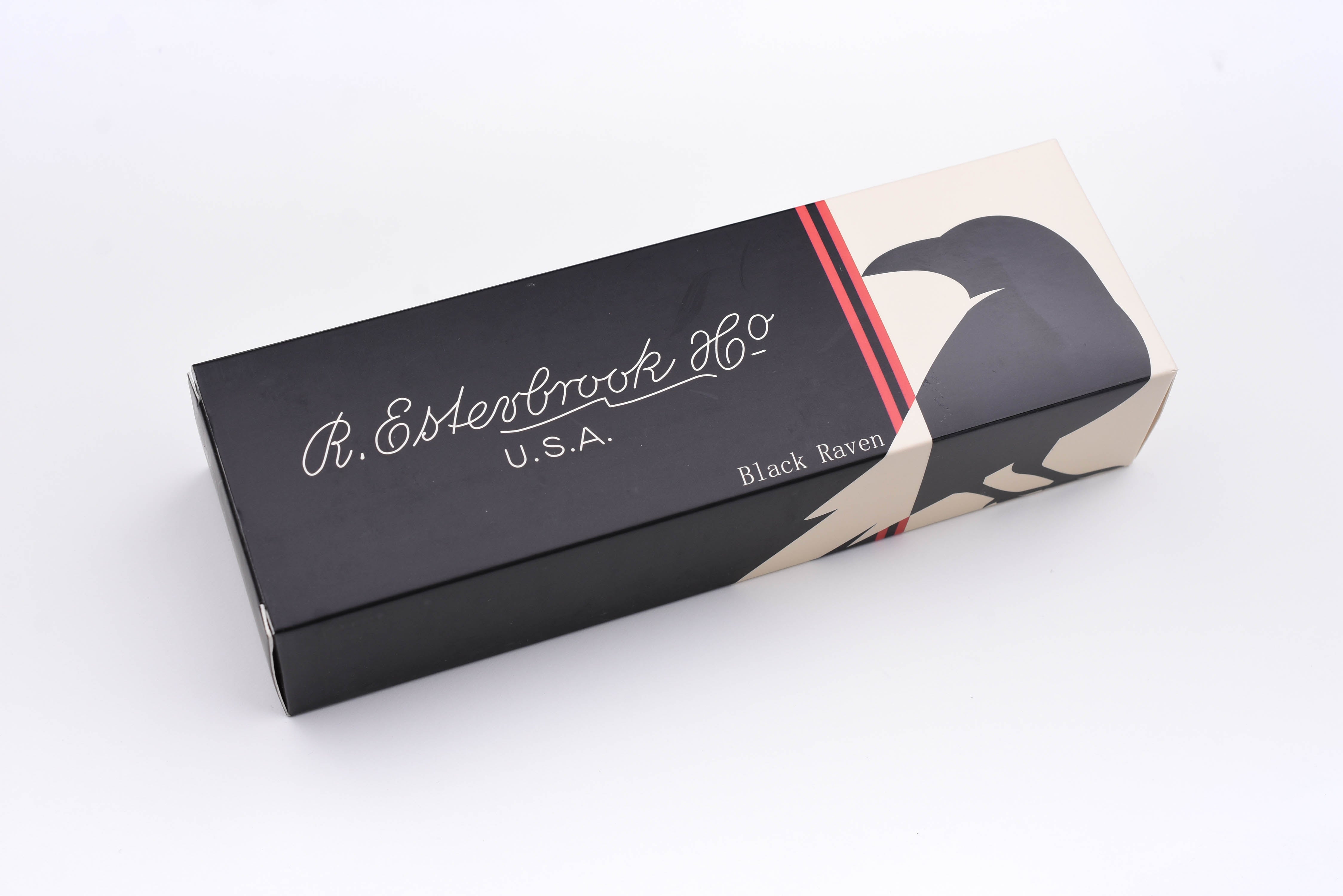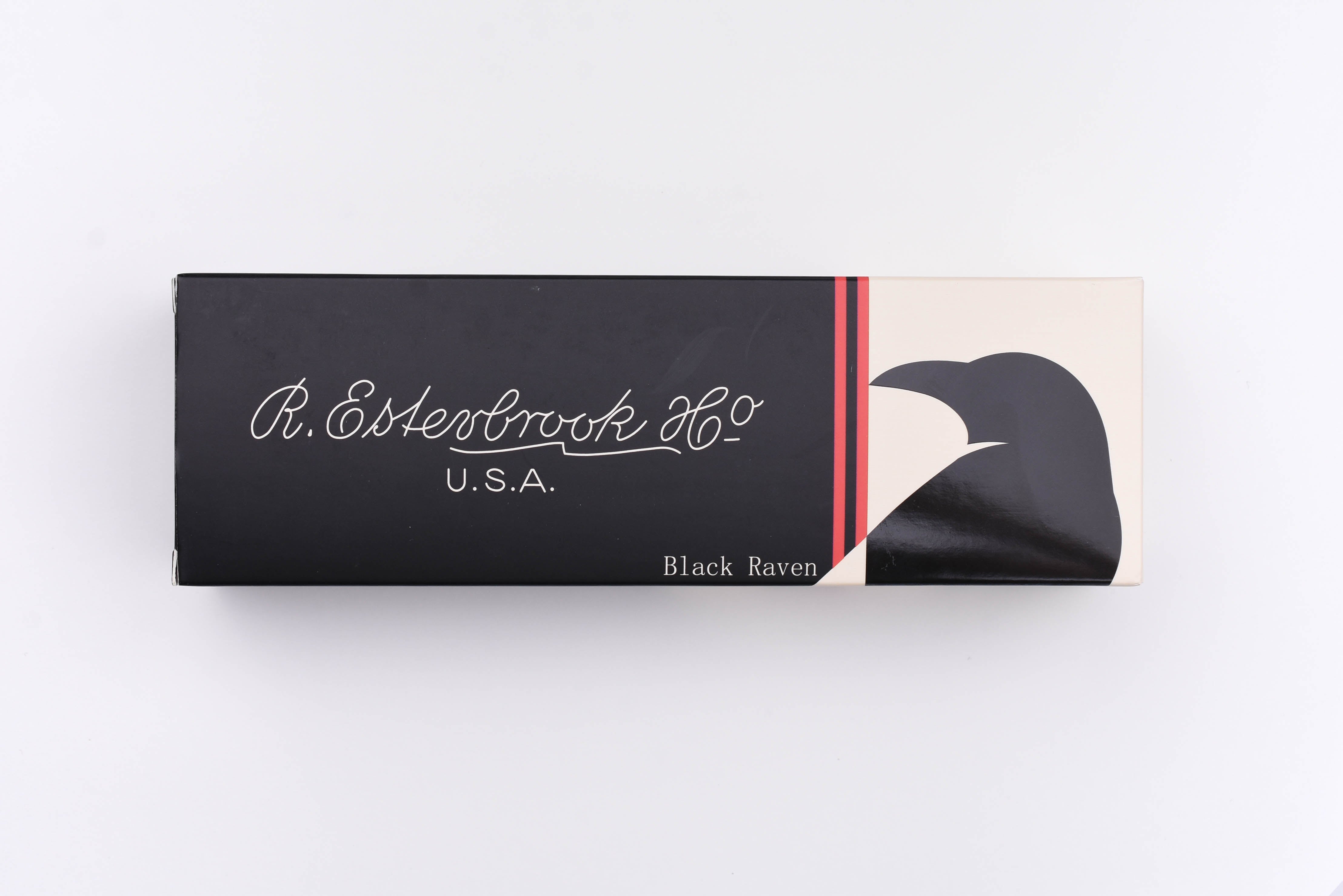 The Estie Raven is an opaque, matte black pen with black trim. This pen was inspired by ravens, which have long held an almost mystical fascination in the human psyche. From Edgar Allen Poe to Norse mythology, depictions of ravens have long interested both humans and Esterbrook's storytelling. Because of this history, Esterbrook was inspired to create a pen that has all of the subtle, mysterious charm of the intelligent and curious corvid. In their words this pen is "as stunning as it is simple, as intriguing as it is classic."