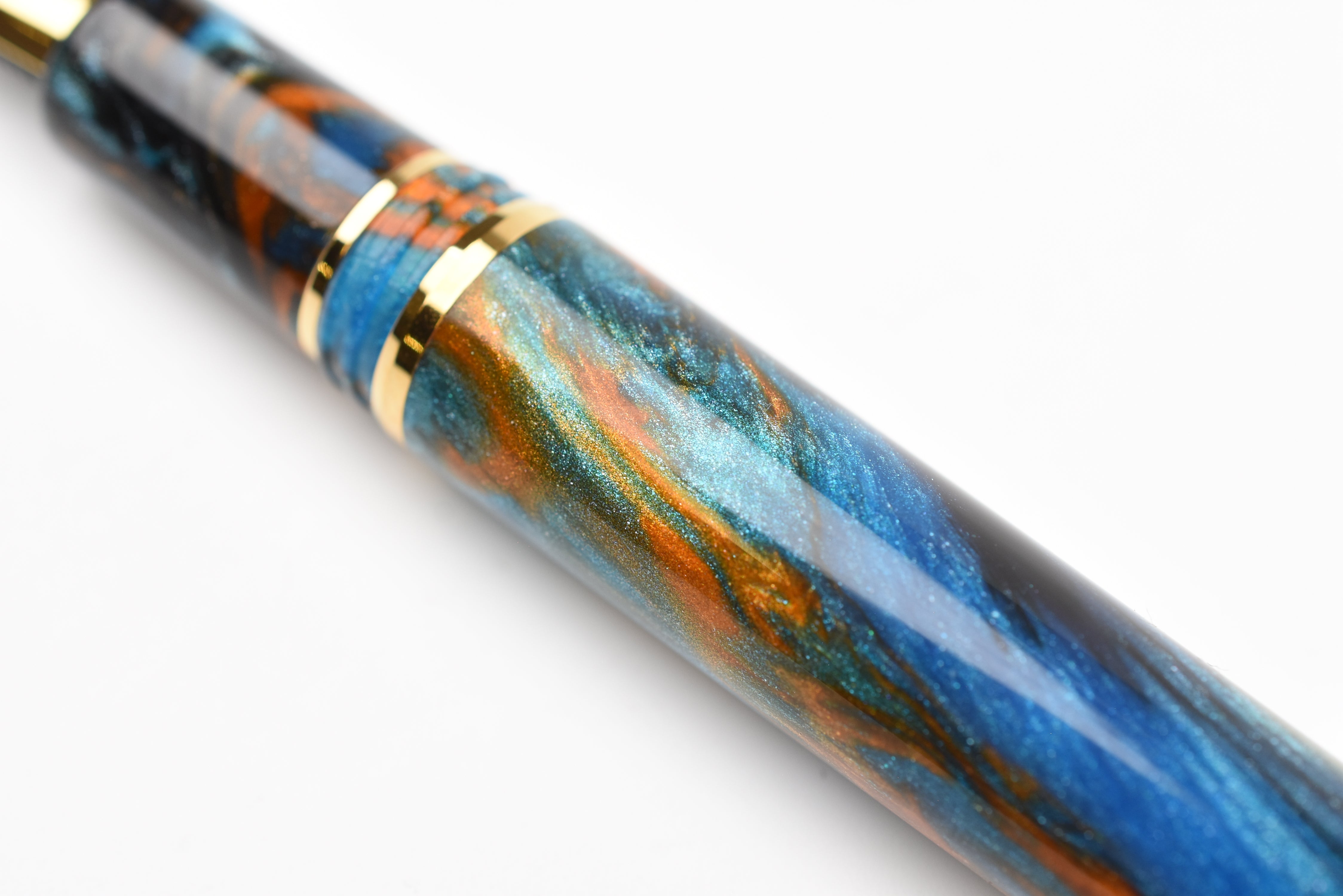 This limited-run pen features hand-blended DiamondCast material made in North Carolina, USA. Infused with real diamond dust, it creates brilliant depth, shimmer, and luminosity in every piece. Each blend is custom-poured, so no two pens are ever exactly alike.