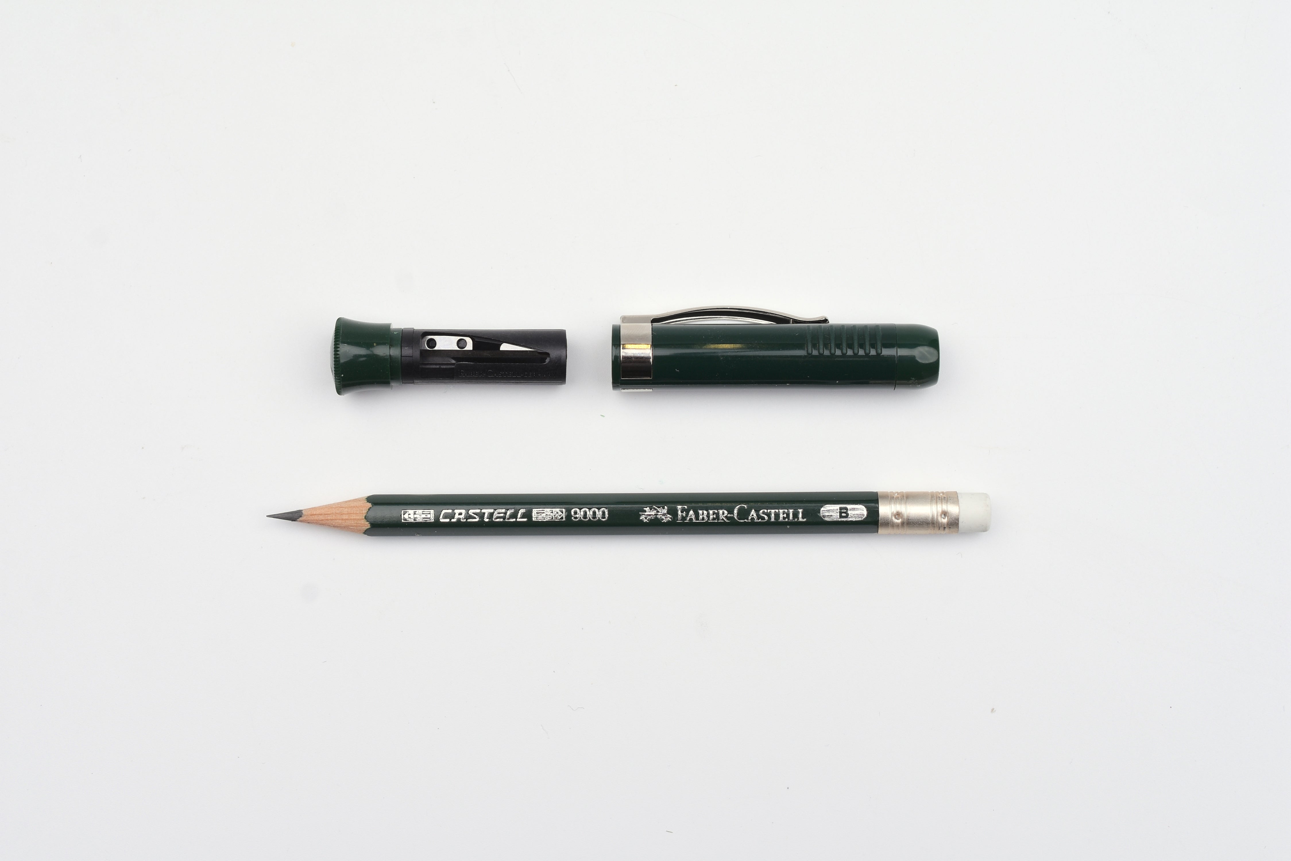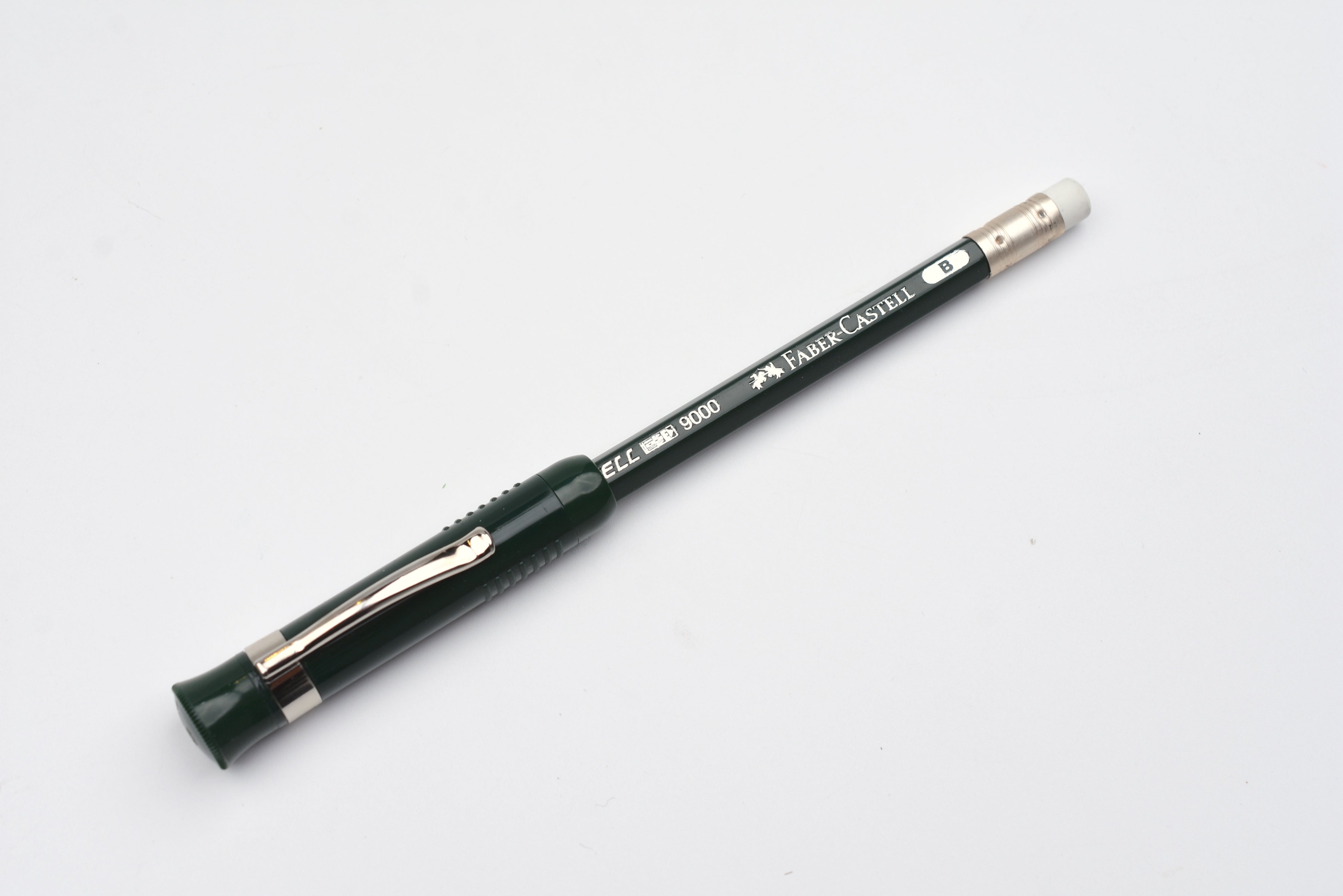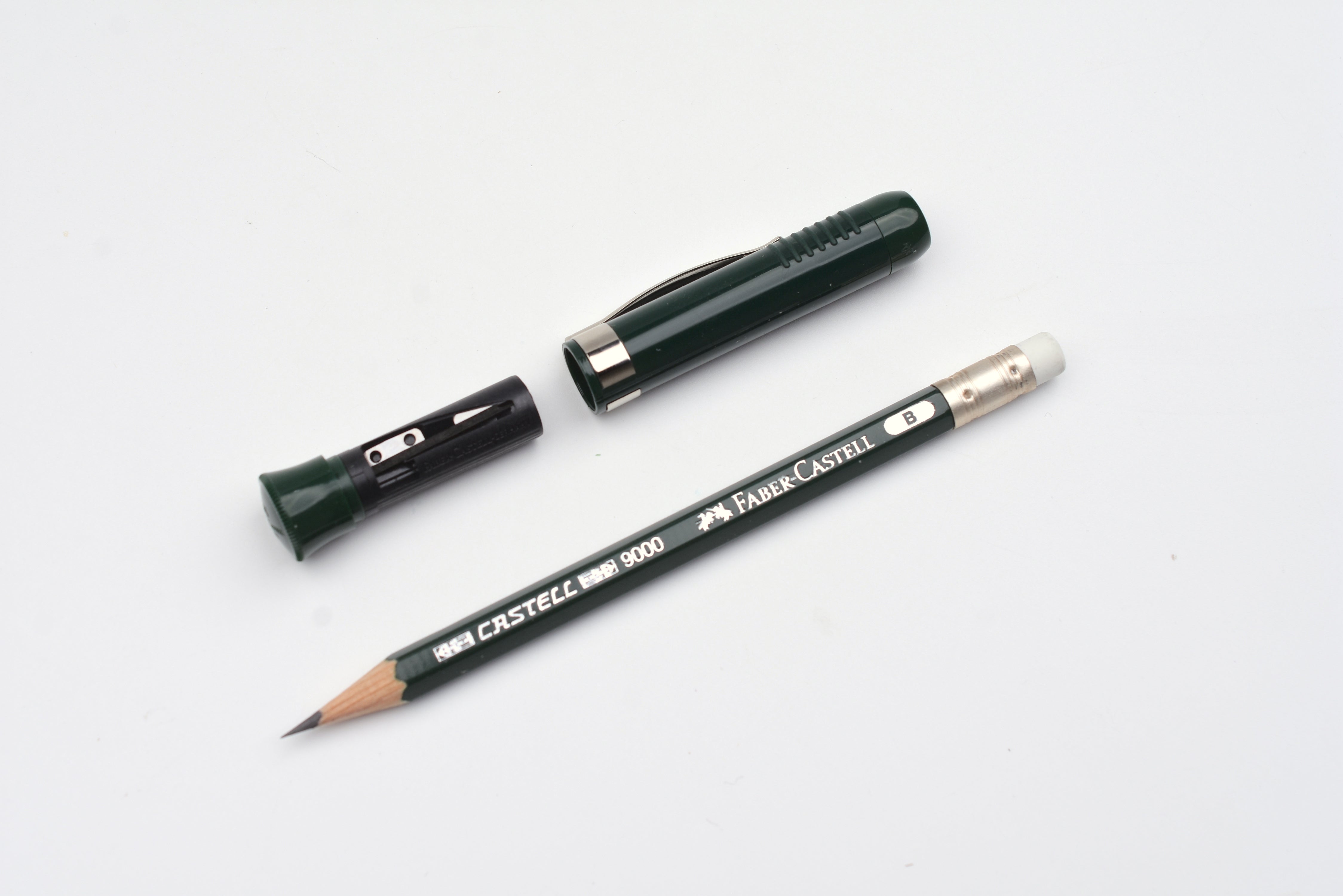 Faber-Castell - Castell 9000 Perfect Pencil. Created to be the perfect pencil, the Castell 9000 contains everything you need to use and maintain your traditional wooden pencil. It includes a cap that doubles as a pencil extender, sharpener, and clip. Use the cap as a pencil extender when the pencil length becomes short, or as a protective cap when the pencil is not in use. The pencil itself features break-resistant lead due to bonding the entire graphite to the wooden core, also called "SV bonding". The graphite pencil is B hardness and includes a PVC-free eraser.