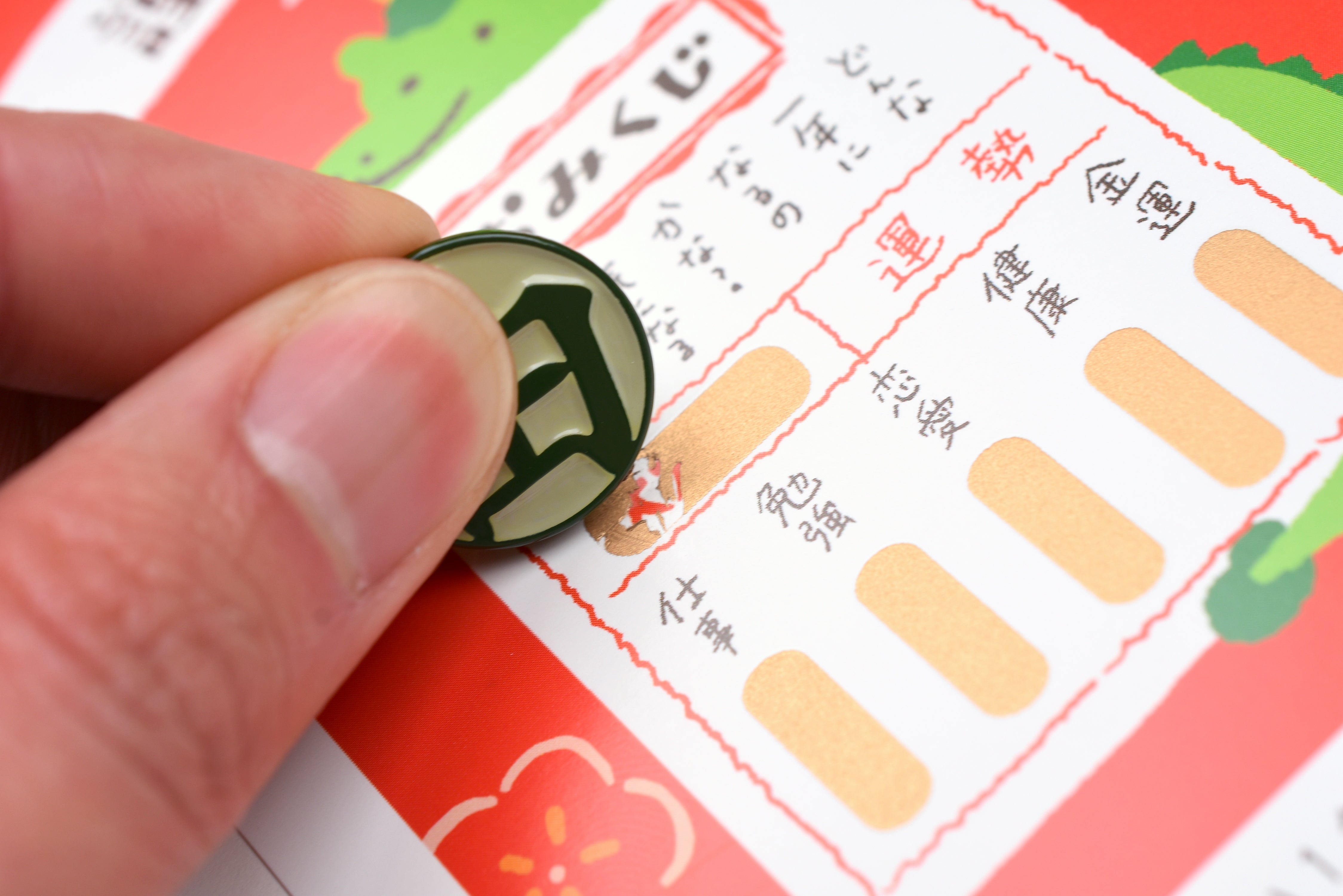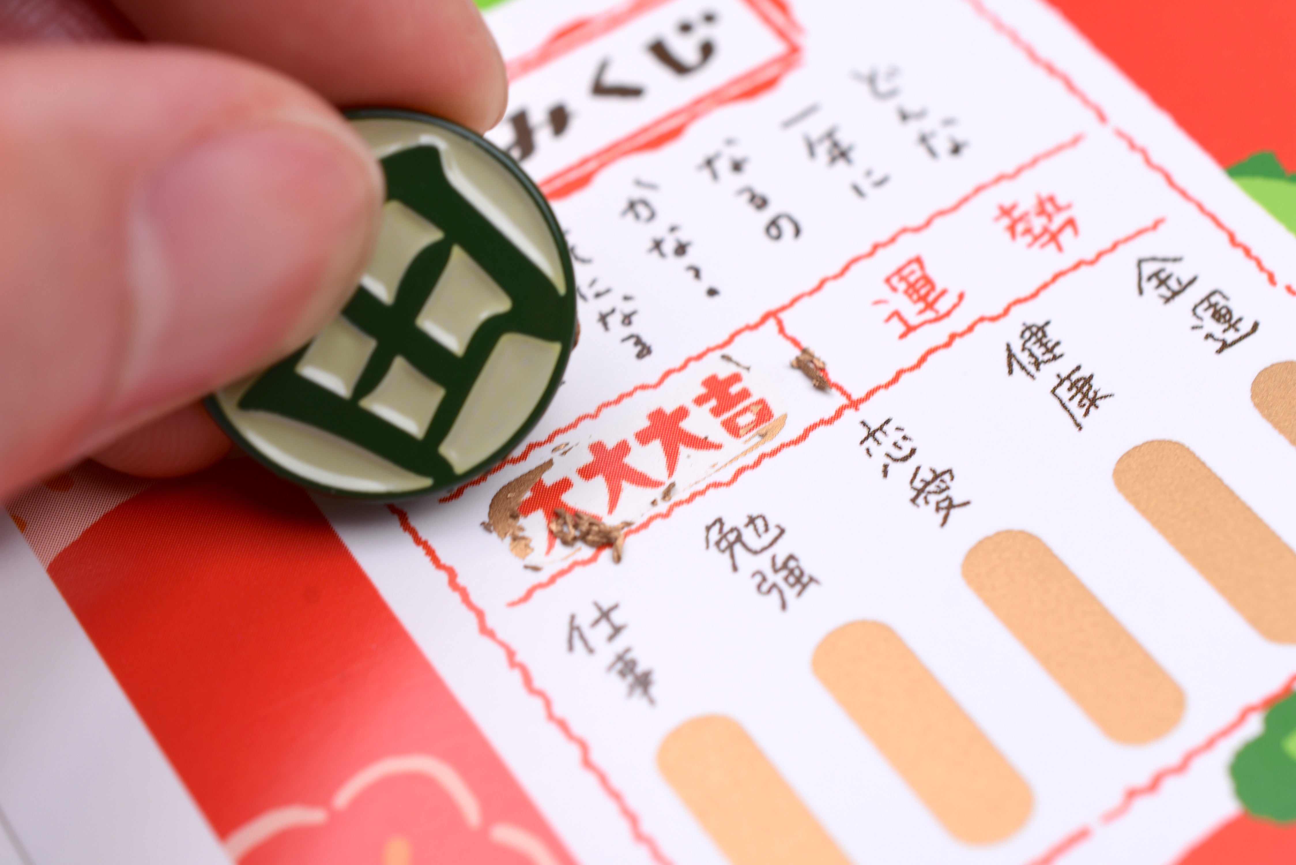 Glad to see the return of these fortune-telling scratch postcards from Furukawa Paper! In celebration of the upcoming new year, it's a common Eastern tradition to visit temples and seek prediction of upcoming year through fortune telling. 2024 is year of the Dragon, and each Furukawa Good Fortune Scratch Postcard features scratch off spots for you to tell your 2024 fortune and participate in this yearly tradition.