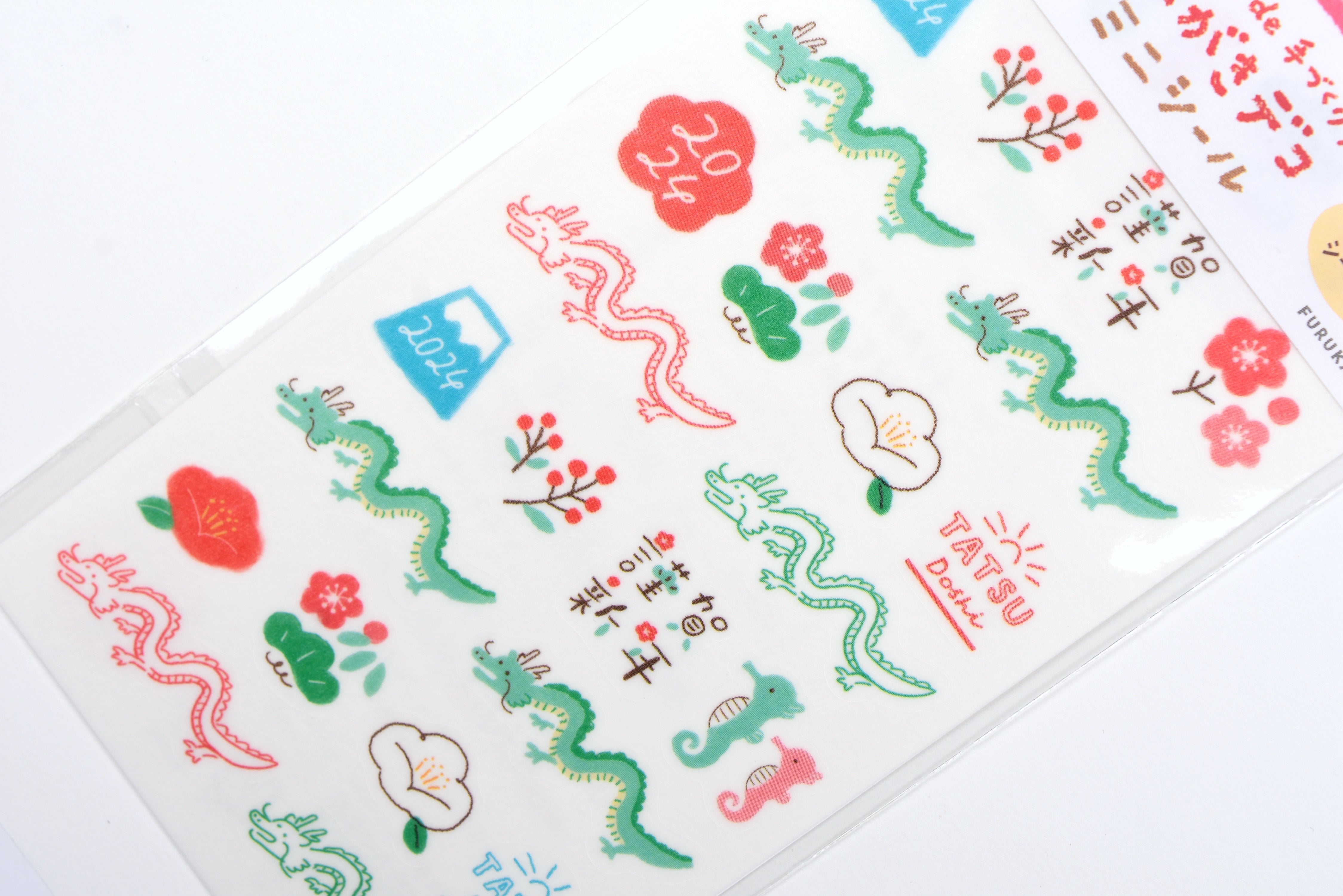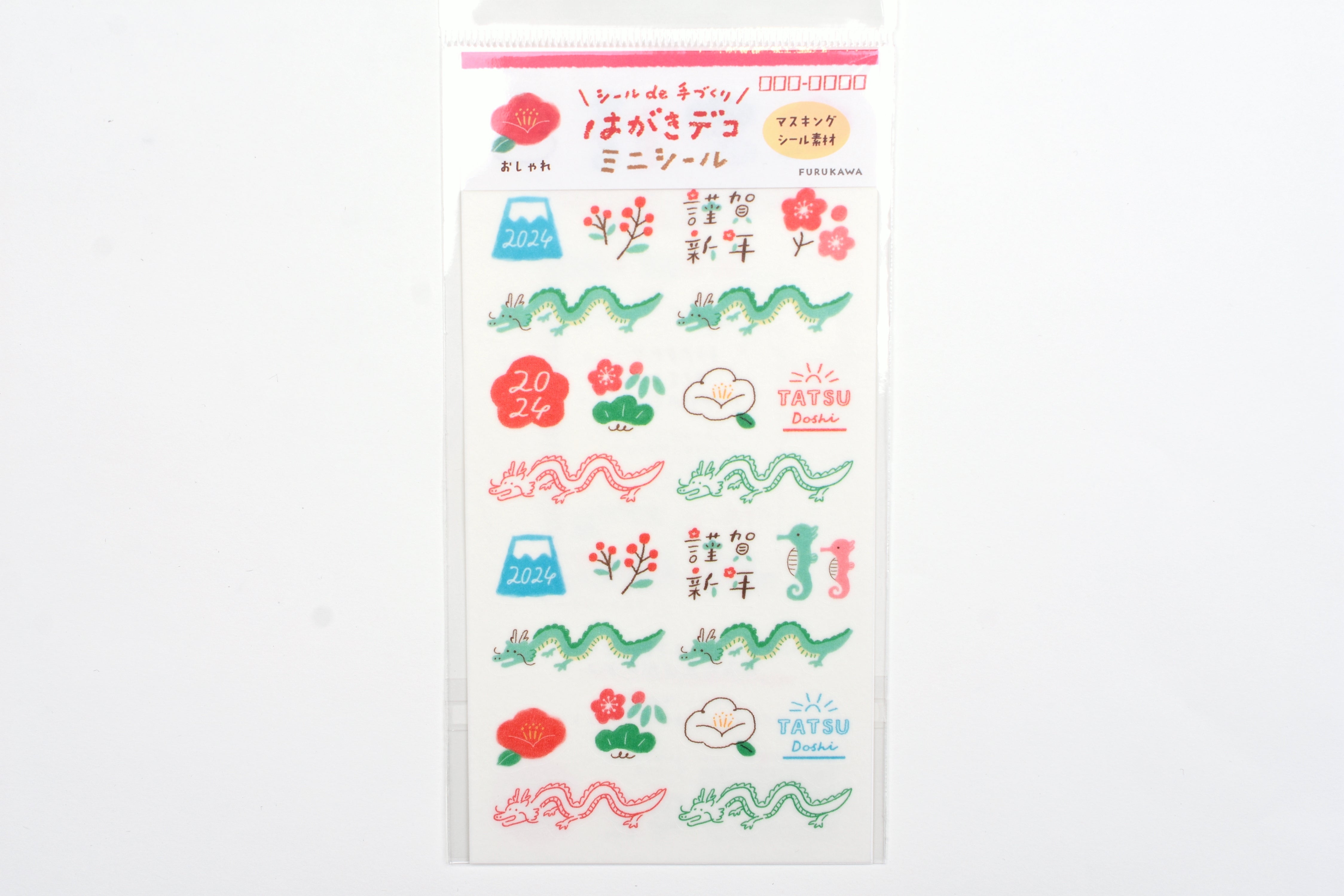 These postcard deco stickers are designed for you to decorate the new year cards for the upcoming Dragon's Year. They come as washi-paper textured stickers, and can be placed around your Nengajo, which means the New Year Cards people send out in Japan!