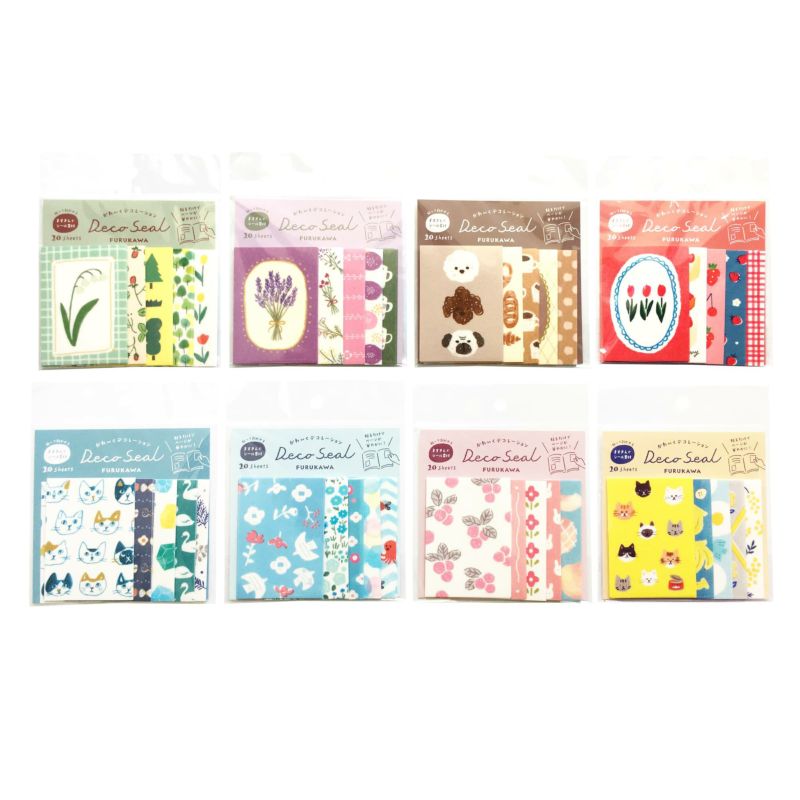 These incredibly adorable stickers come with 20 deco sheets in 4 different designs. They are made from masking tape material and have a similar feeling to washi tape. They are perfect for decorating your notebook without adding any bulk, or adding a cute touch to a greeting card or letter!