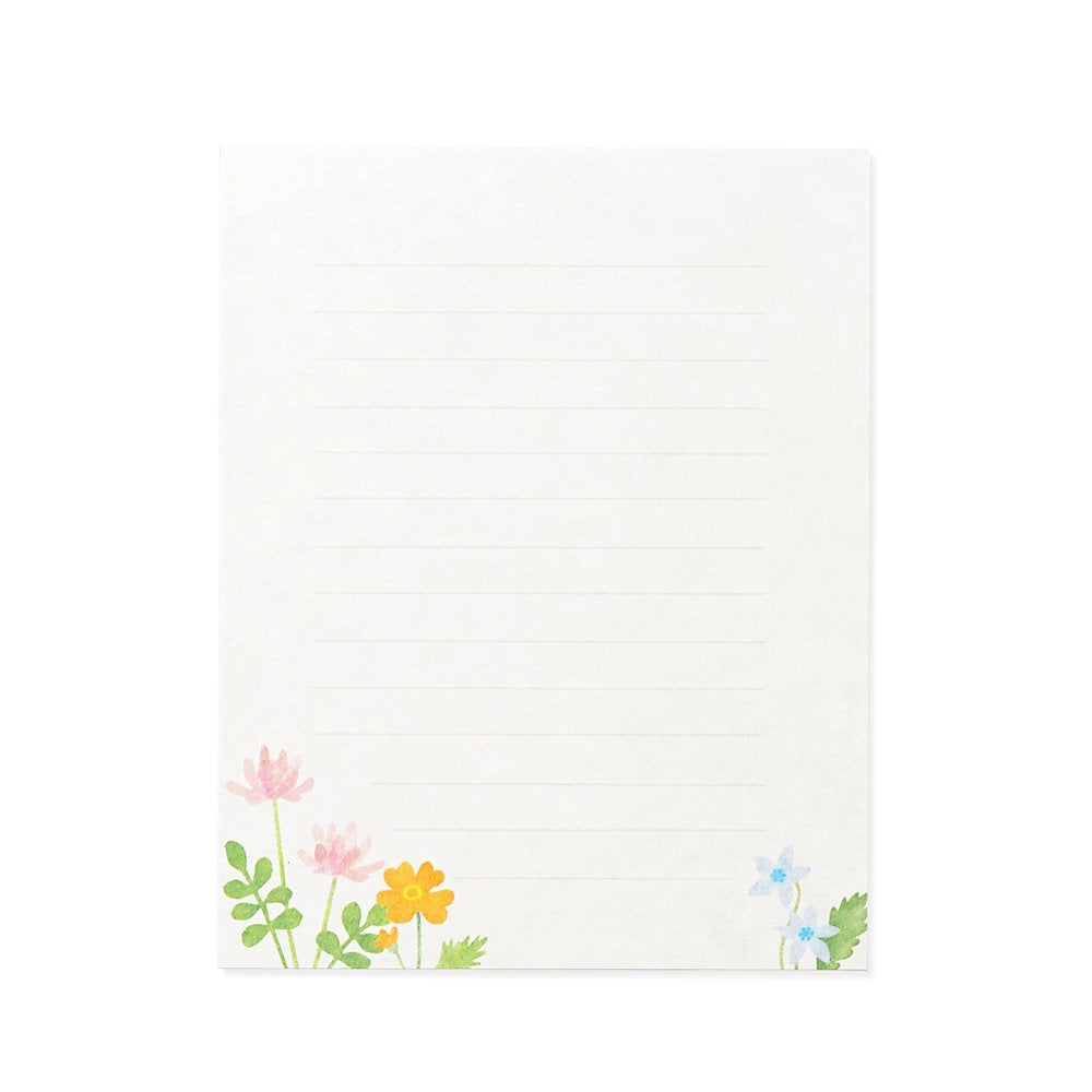 G.C. Press Letter Pad - Fleur. This letter pad features colorful wildflowers that are sure to brighten up anyone's day. The lined letter paper make it easy to write beautifully, and each pad includes four different flower designs.