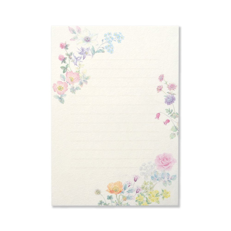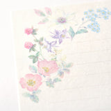 These flowers have a gentle watercolor feel and are printed on slightly transparent washi paper, enhancing the delicate nature of this letter pad. Additionally, these flowers are not specific to any season (and in fact, are flower species that grow year round) so you can use this letter pad regardless of the season.