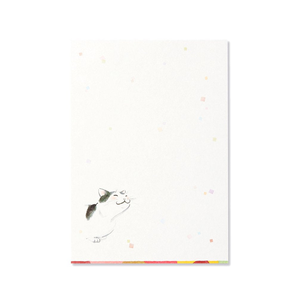 These cats are portrayed in a sumi-e or "traditional Japanese ink painting" style, with small pops of color on the ears, nose and cheeks. This unlined letter paper allows you to write or draw as much as you please. and includes four different cat designs.