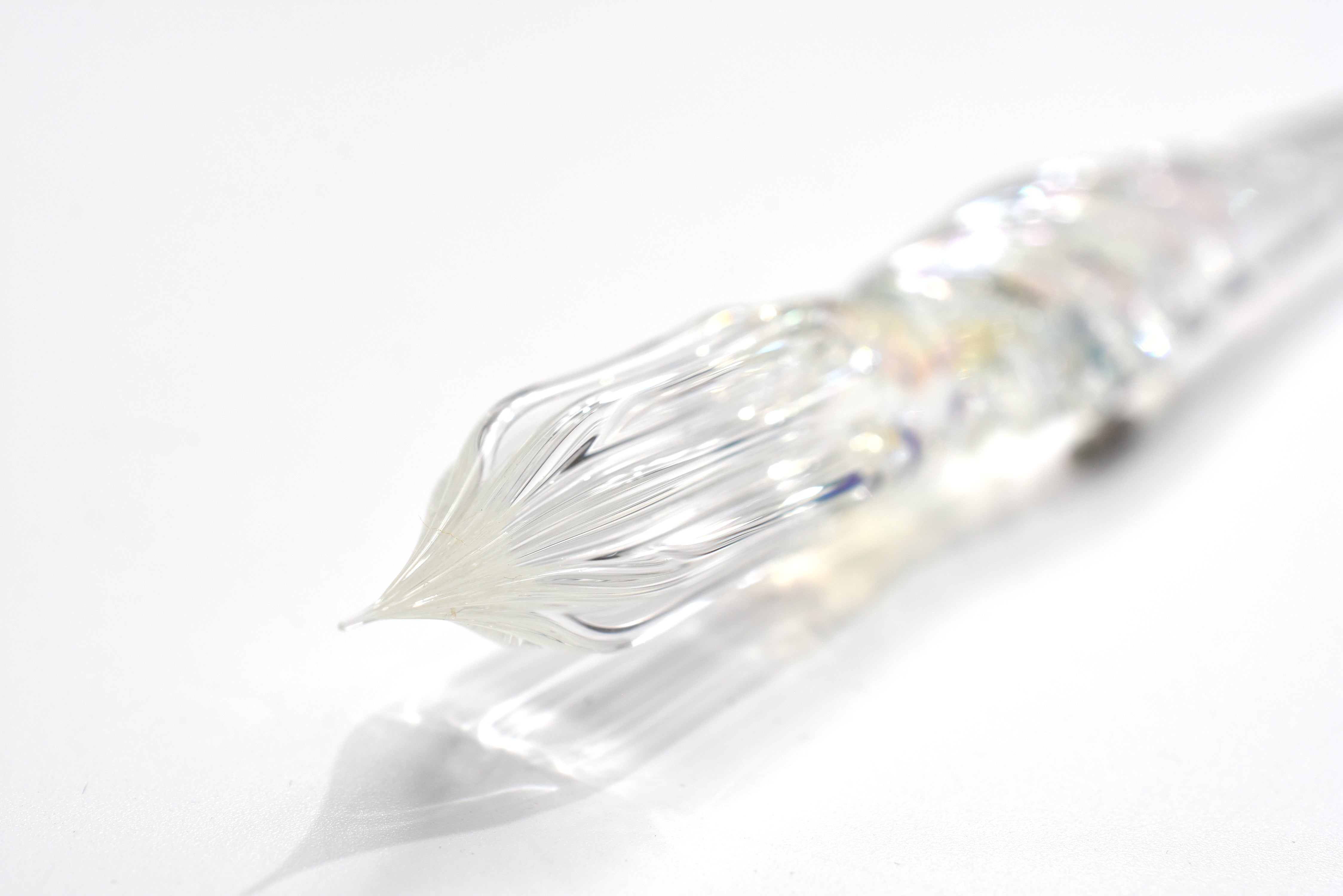 aun is the Japanese word for "om," the Sanskrit meditation mantra. The founder of aun is Akihiro Eda and the studio is located in Kurashiki. aun's glass pens are all handmade and designed by aun's team of three artisans. The nibs are ground to 7 sizes, ranging from EF to C, which requires finishing each nib with 8 gradations of sandpaper, taking about 1 hour to grind each nib. Finally, each nib is inspected under a microscope to ensure the capillaries along each nib are even for smooth ink flow to the paper.