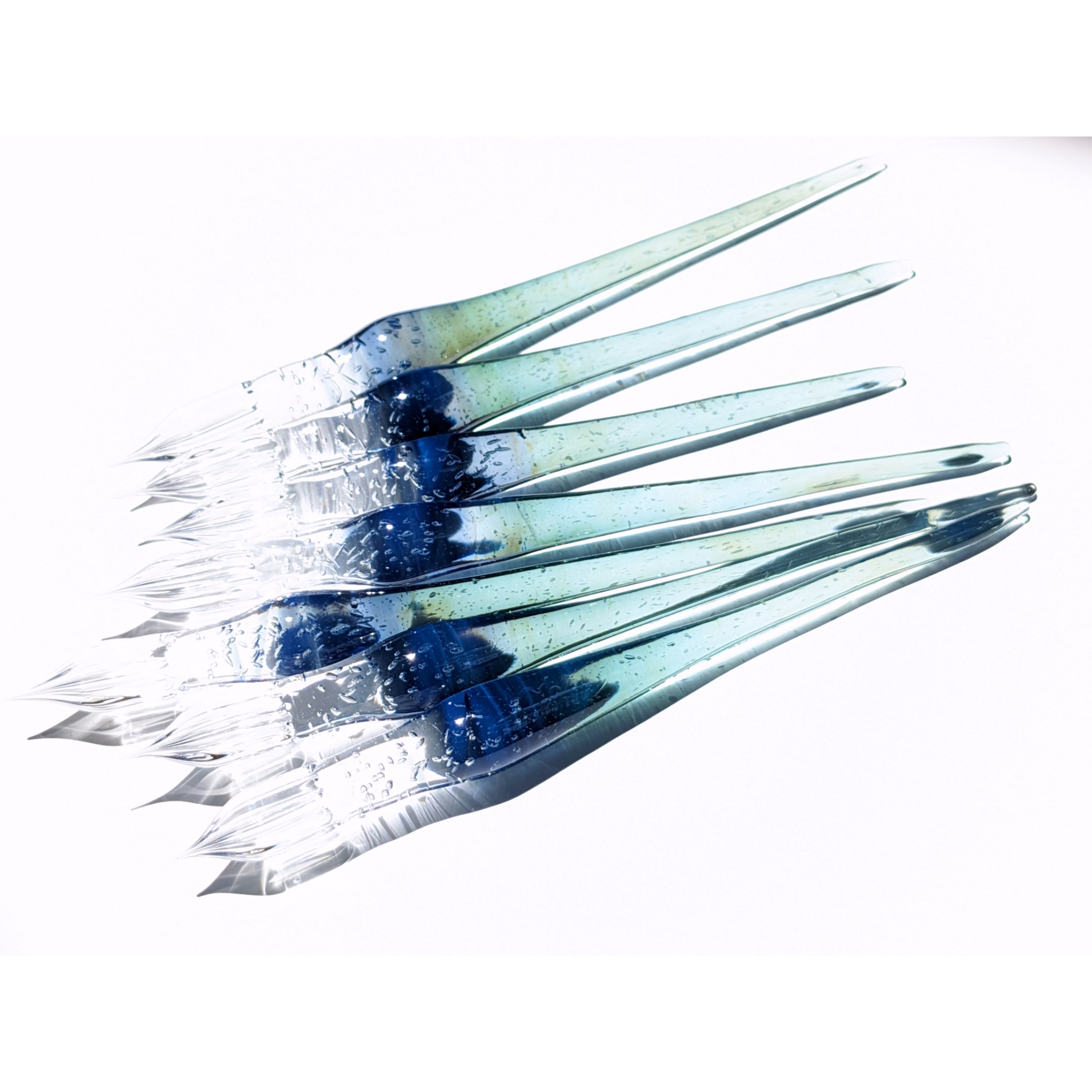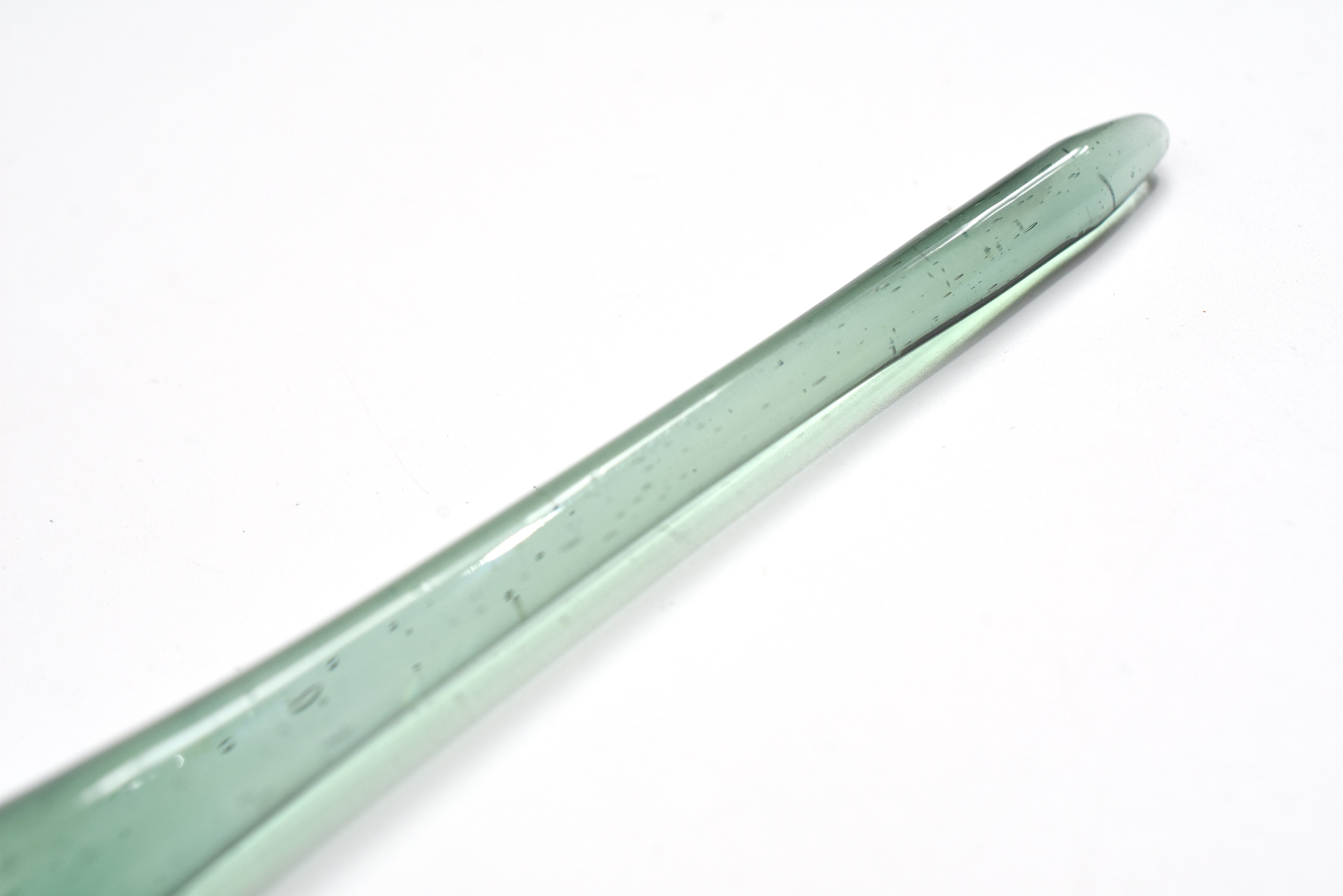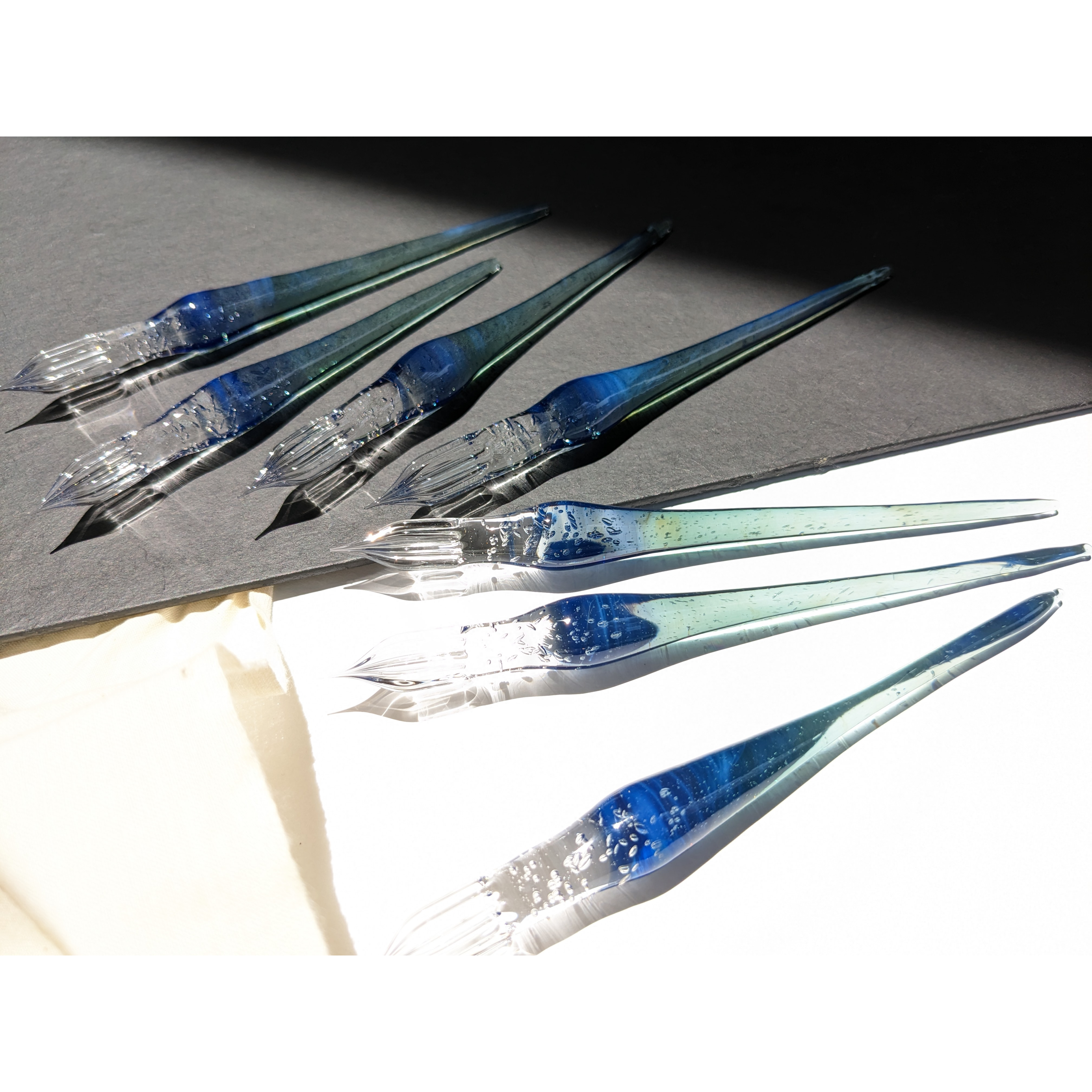 aun is the Japanese word for "om," the Sanskrit meditation mantra. The founder of aun is Akihiro Eda and the studio is located in Kurashiki. aun's glass pens are all handmade and designed by aun's team of three artisans. The nibs are ground to 7 sizes, ranging from EF to C, which requires finishing each nib with 8 gradations of sandpaper, taking about 1 hour to grind each nib. Finally, each nib is inspected under a microscope to ensure the capillaries along each nib are even for smooth ink flow to the paper.