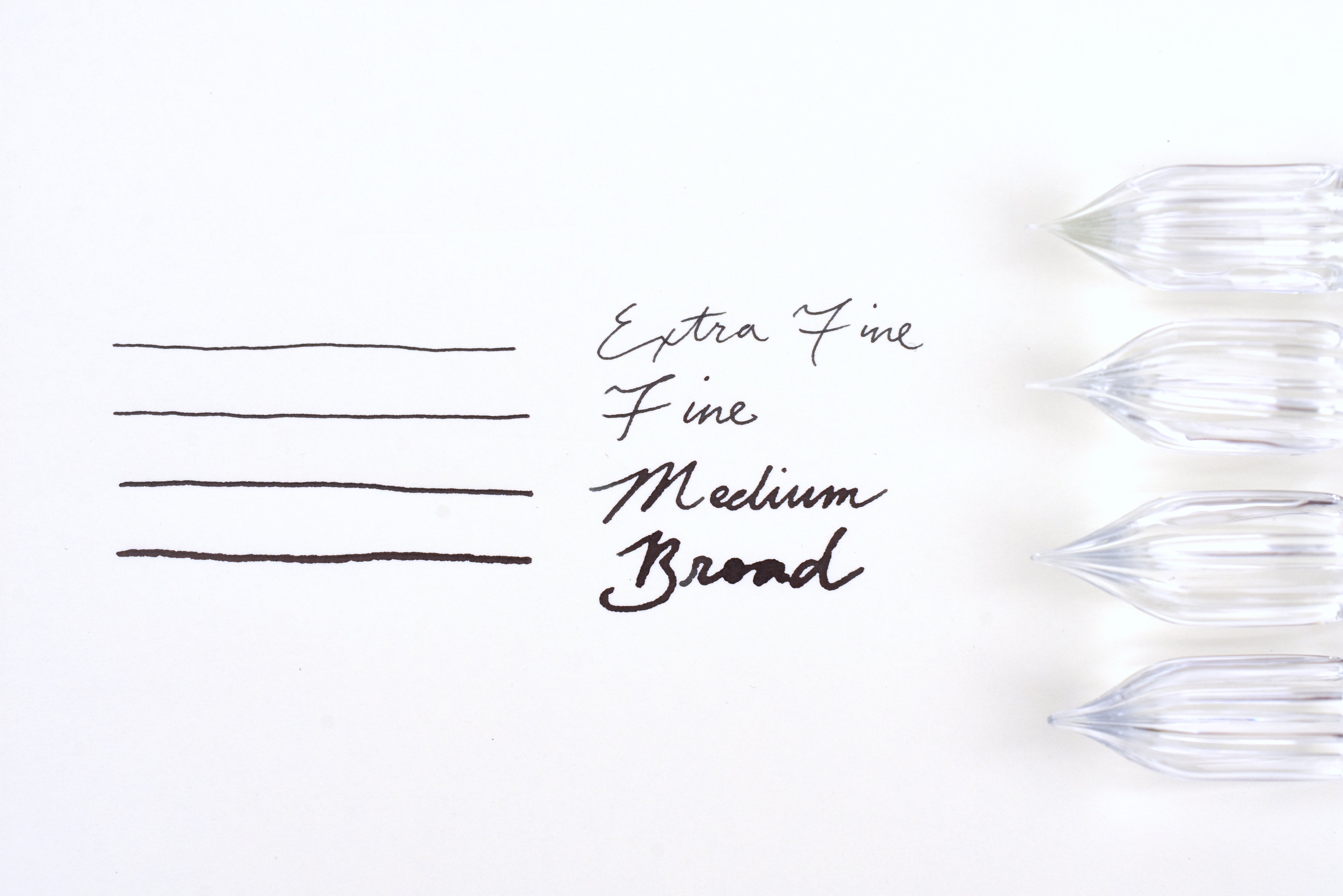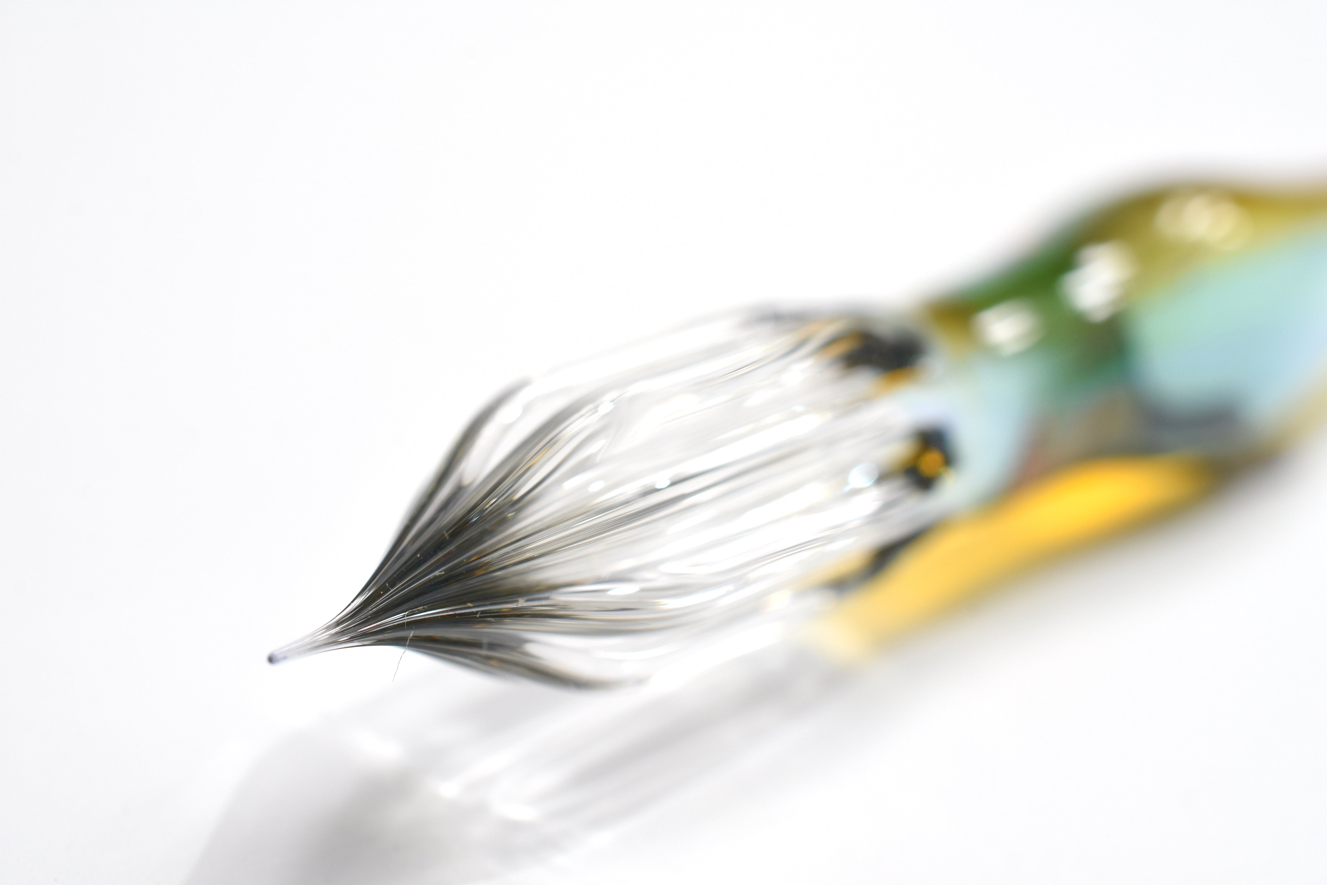 aun is the Japanese word for "om," the Sanskrit meditation mantra. The founder of aun is Akihiro Eda and the studio is located in Kurashiki. aun's glass pens are all handmade and designed by aun's team of three artisans. The nibs are ground to 7 sizes, ranging from EF to C, which requires finishing each nib with 8 gradations of sandpaper, taking about 1 hour to grind each nib. Finally, each nib is inspected under a microscope to ensure the capillaries along each nib are even for smooth ink flow to the paper.