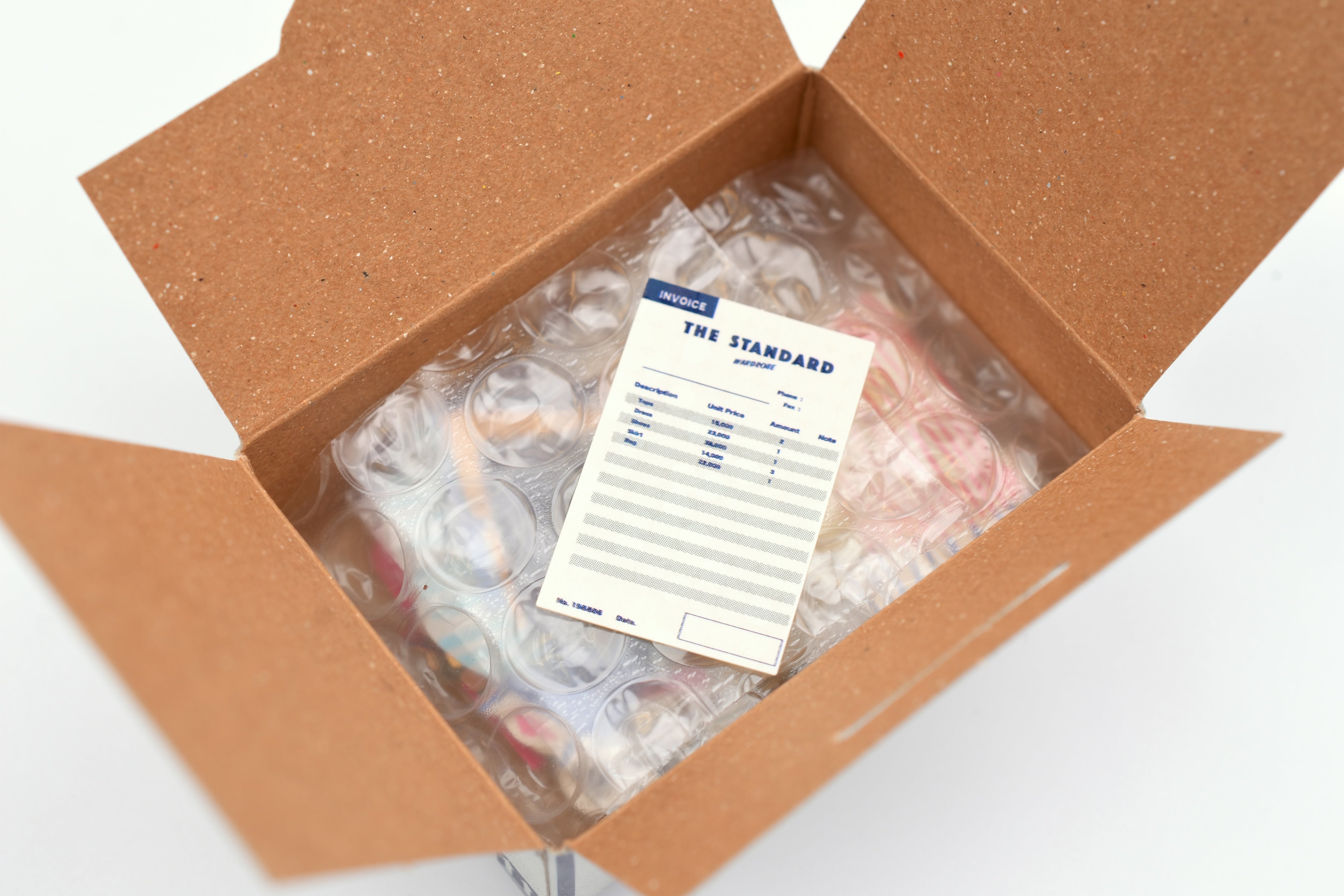 The popular shipping-boxed Greeting Life Flake Stickers are back with four new designs, including Vegetable, Meat, Fashion, and Japanese Culture! The stickers come in a miniature shipping carton, and even completed with a tiny invoice inside! Each box includes 40 unique stickers with fun holographic finish.