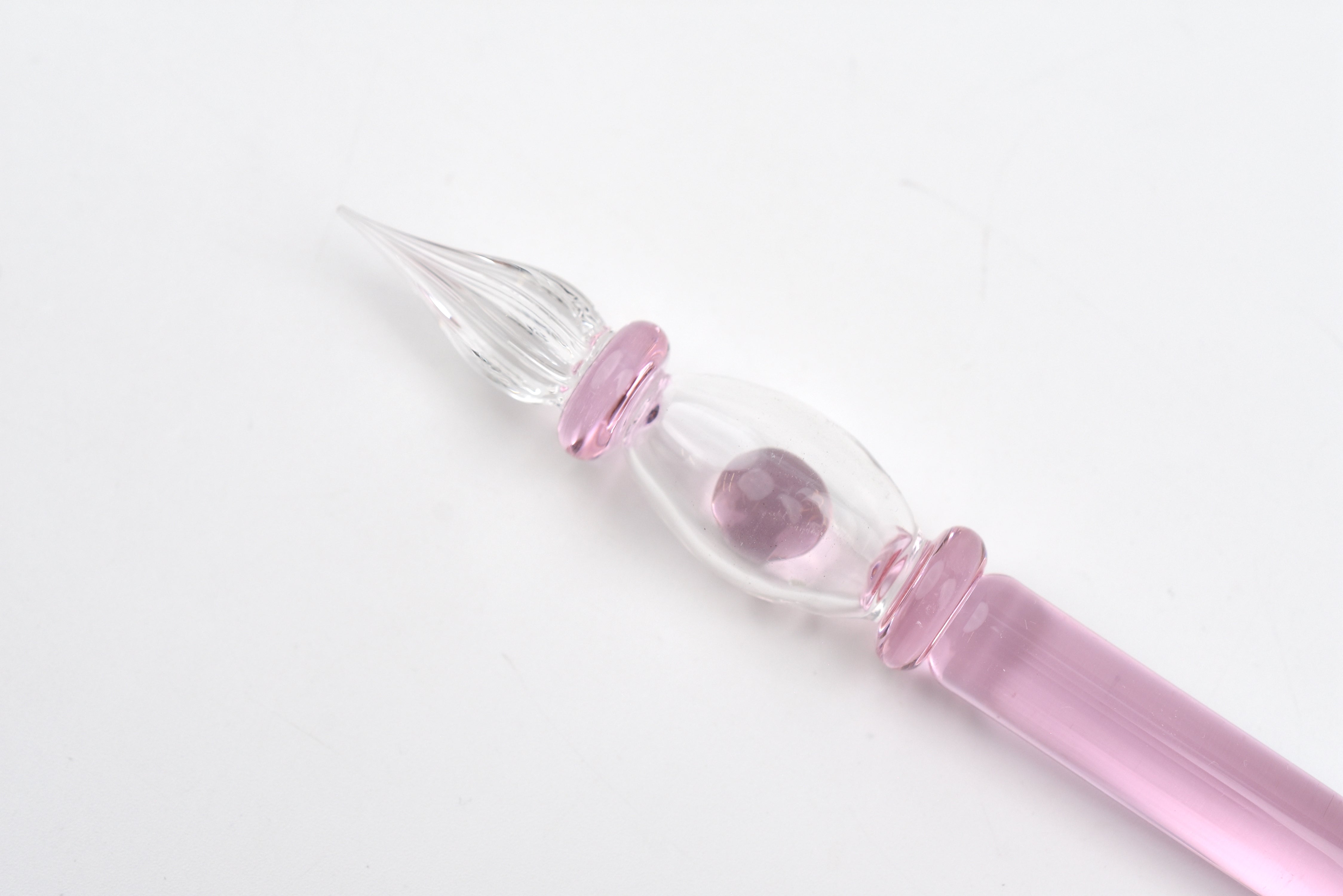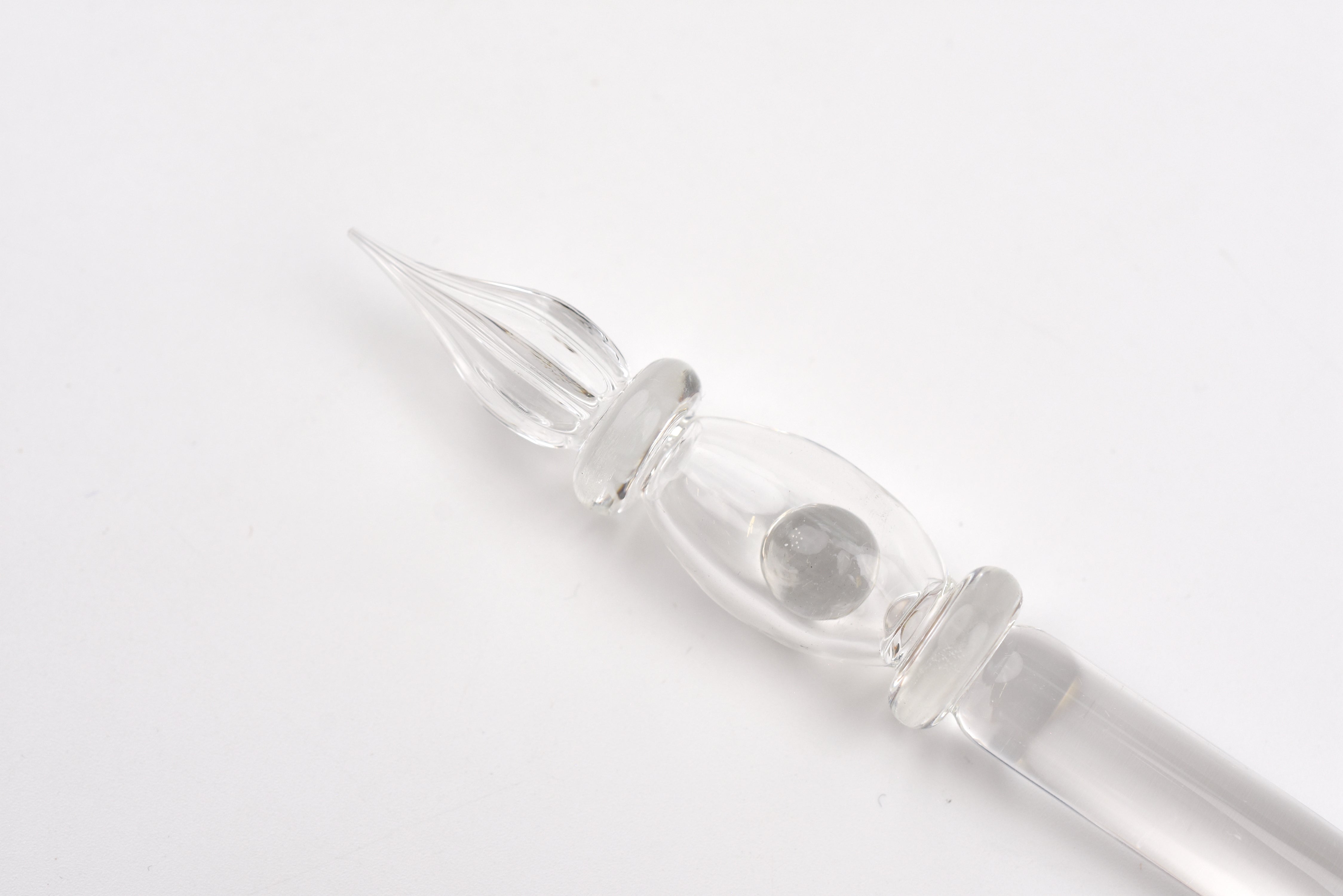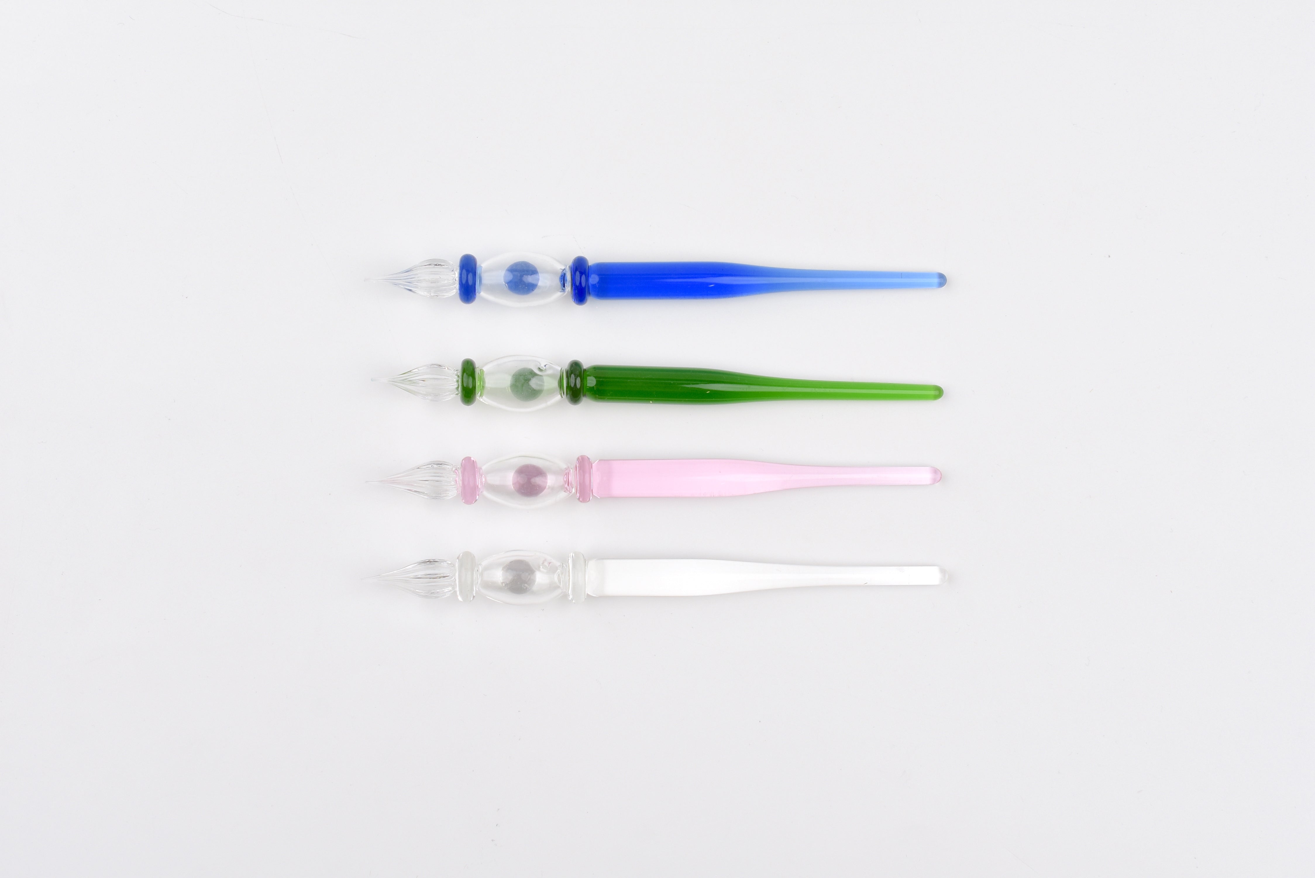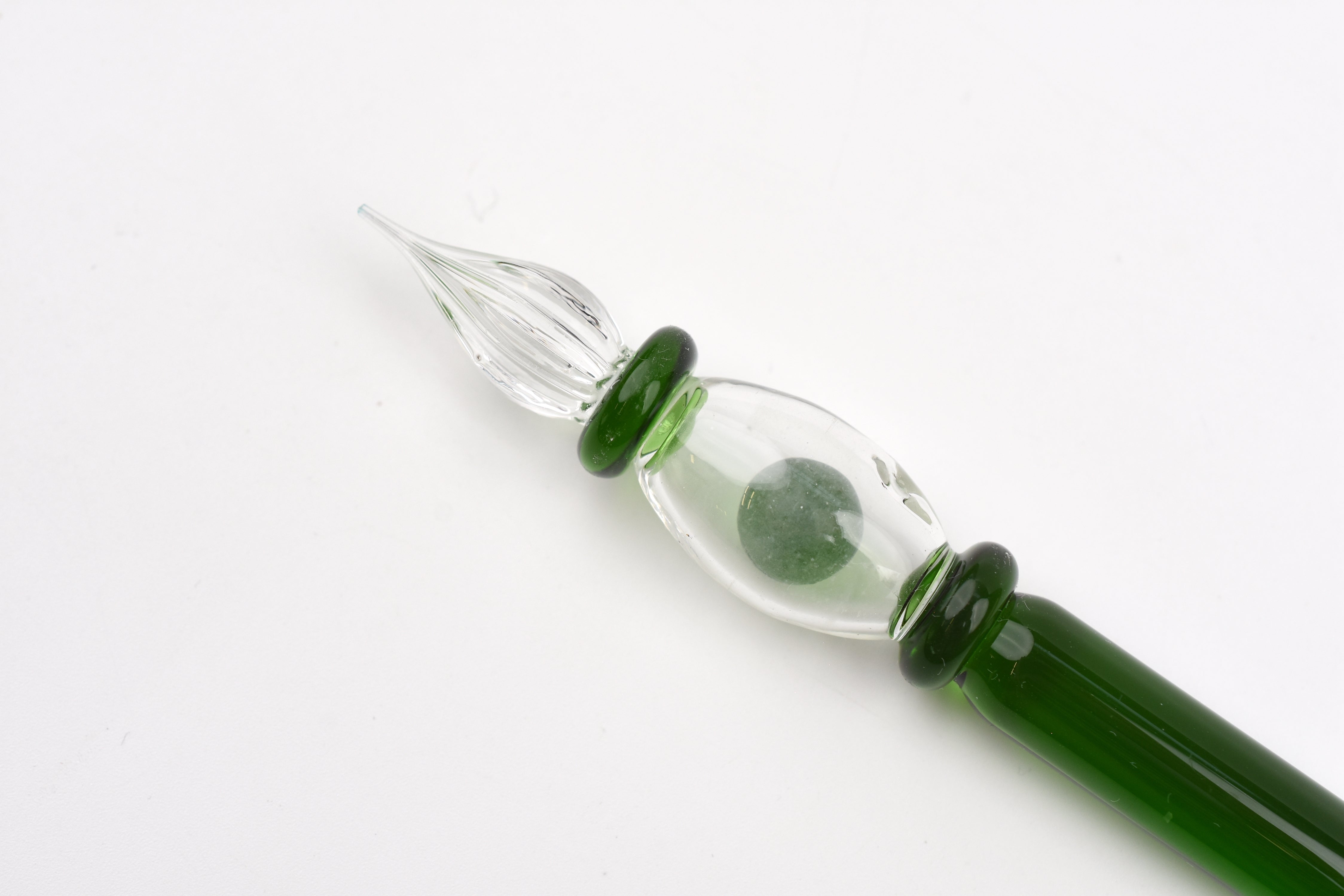 - Please Note: Each glass pen has a small hole in the body due to the manufacturing process of the hollow barrel and internal glass ball. This is an unavoidable part of the process and not considered a defect.