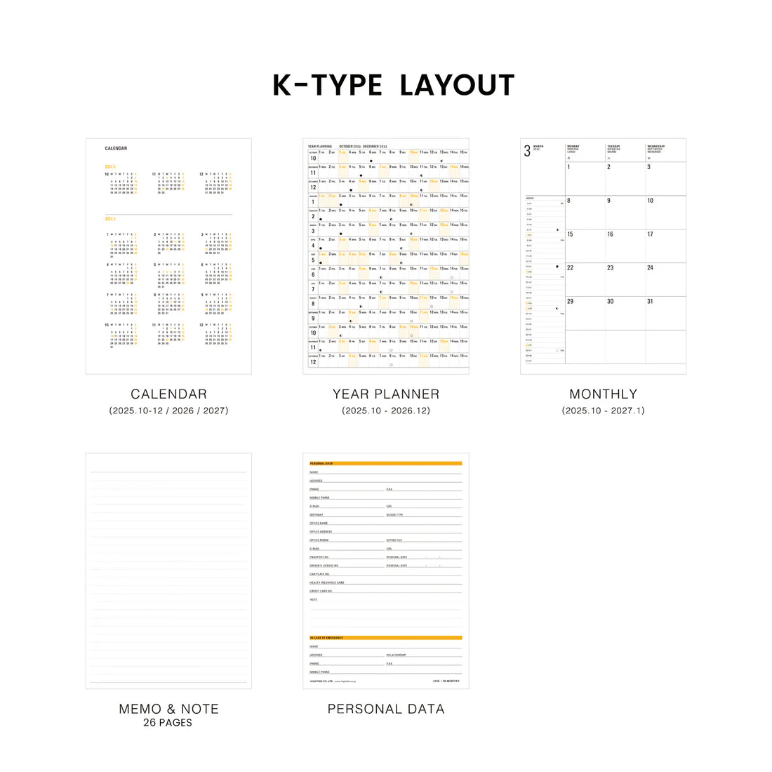- Comes with a yearly overview, annual schedule, monthly pages, lined pages, personal data, and a major city subway map