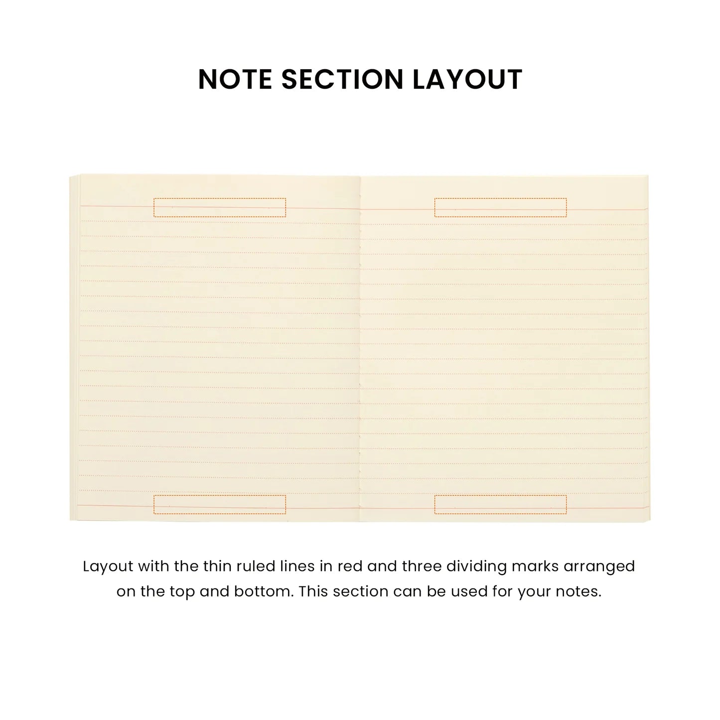- Includes Yearly Calendar, Monthly Calendars, Lined Note Pages, and Personal Data Section