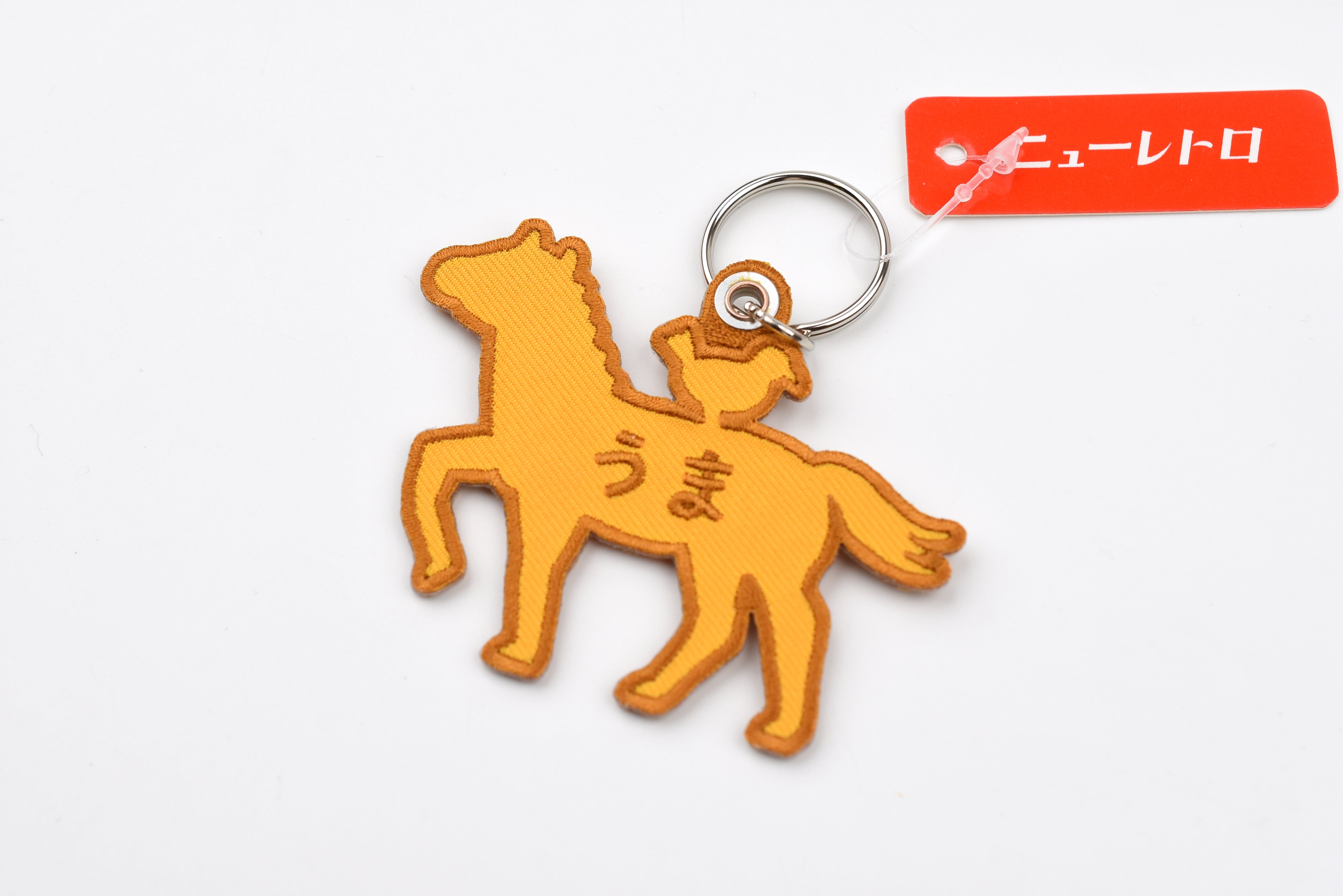 This embroidered keychain features the Chinese zodiac sign for 2026, the horse, with a small bird perched on top. The back is stitched with the hiragana character “uma” (horse). Its larger size makes it easy to spot in your bag or among your keys, making it a cute accessory for everyday use.