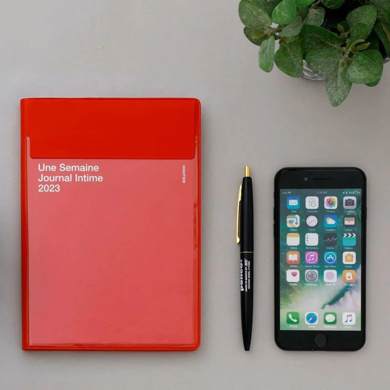 The Hightide Diary Iris features a sturdy vinyl cover with an additional pocket to keep personal items. The planner comes with a yearly overview, monthly pages, and weekly pages.