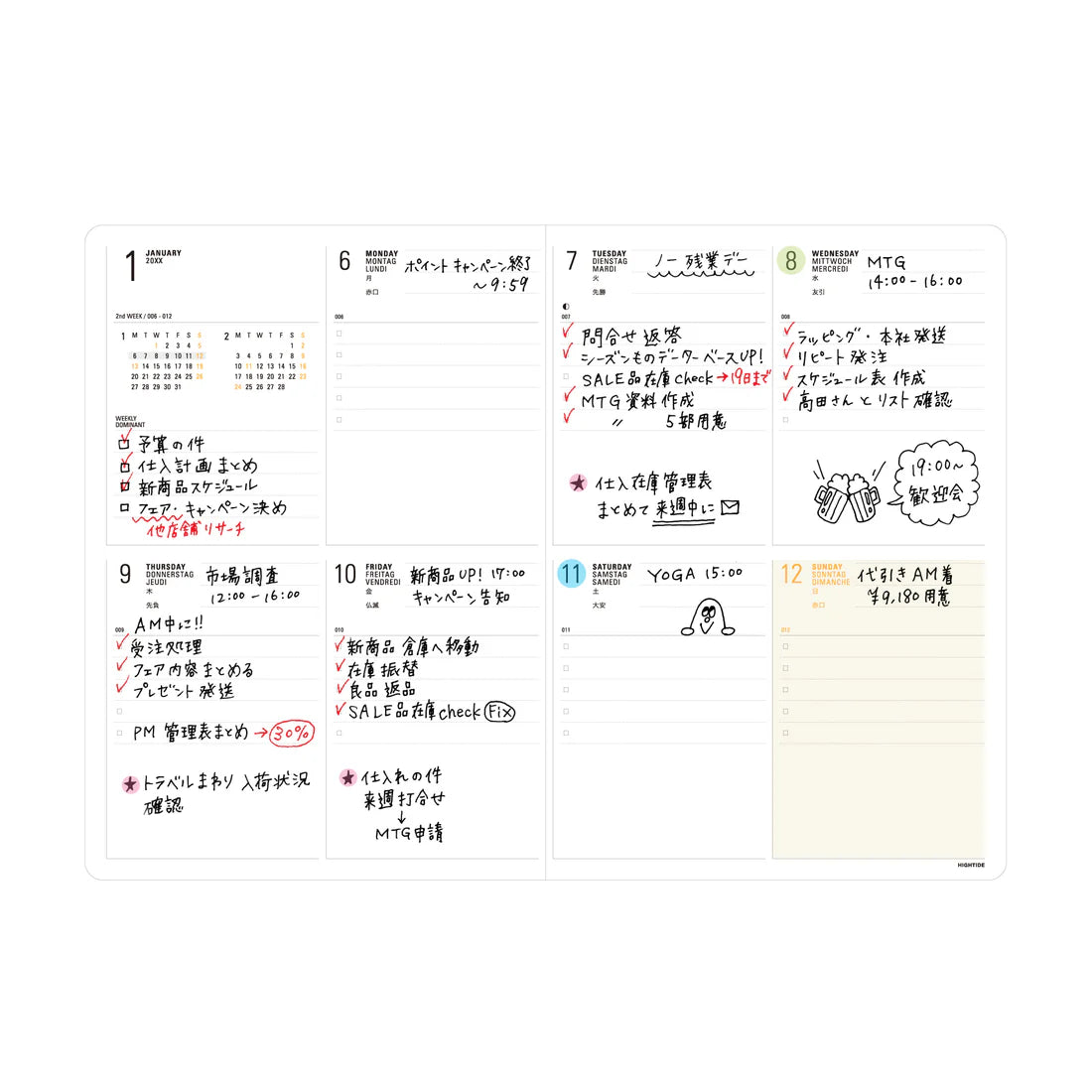 - Comes with a Yearly Overview Calendar, Annual Schedule, Monthly Schedule, Weekly Schedule, Extra Lined Pages, Personal Data, and a Japanese Subway Map